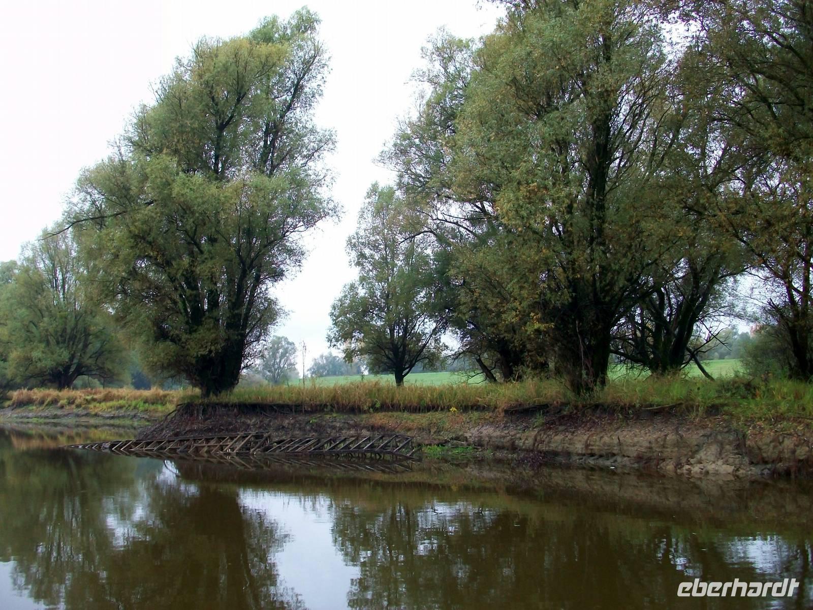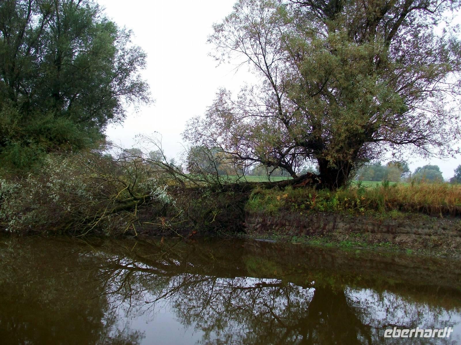 Am höher gelegenen Land sehen wir auch die Arbeit der Biber die hier mit ihren spitzen Zähnen so manchen Baum gefällt haben.