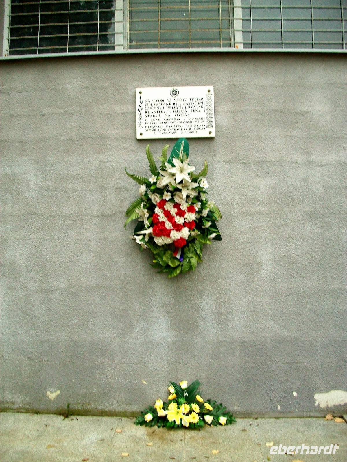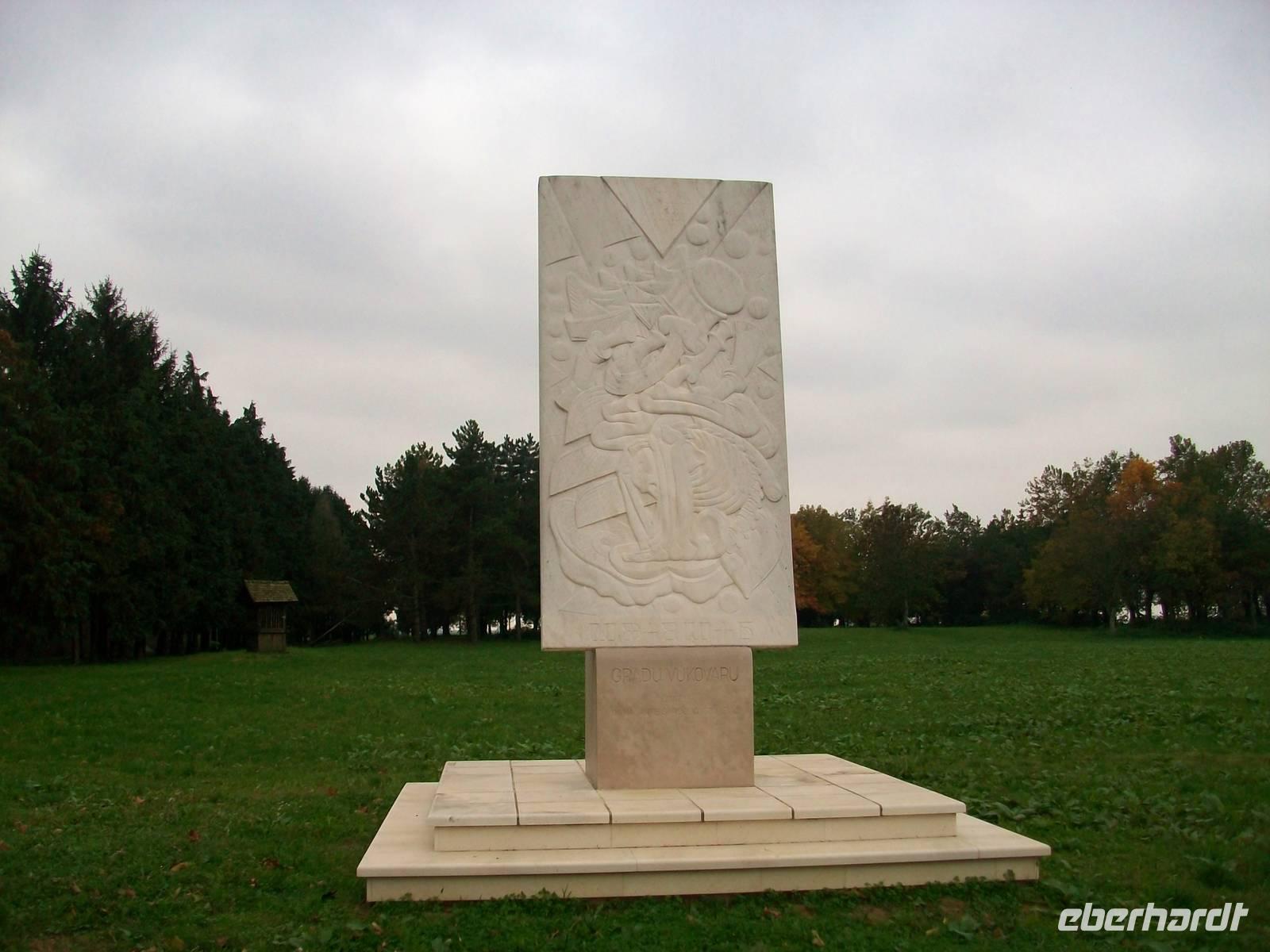 Dann fahren wir mit Dara noch zur Gedenkstätte Ovcara, auch hier wurden im Krieg 1991 furchtbare Taten an wehrlosen Zivilisten verübt; im dunklen Innenraum ist eine beeindruckende Installation eingerichtet mit den Bildern der Opfer die erscheinen, verblassen ganz verschwinden und wieder erscheinen.