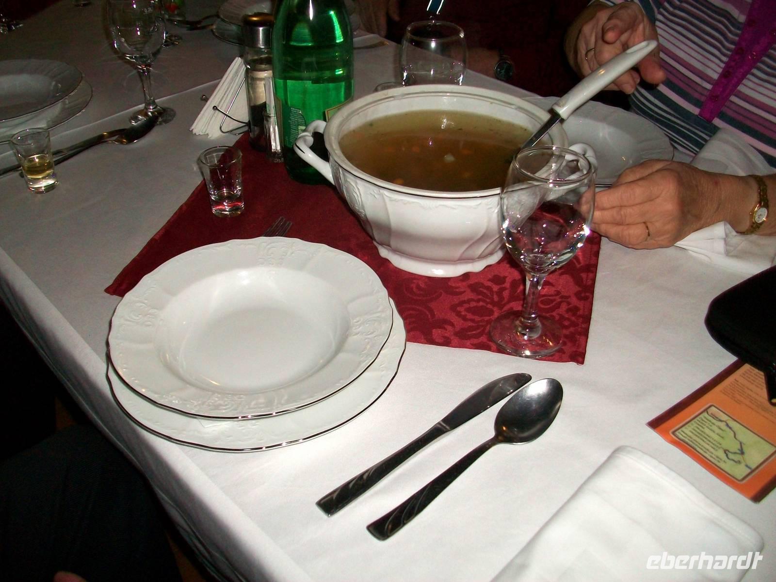 Im urig eingerichteten Restaurant ist für uns eingedeckt; auch heute Mittag dürfen wir von den Spezialitäten kosten die in der Region heimisch sind; neben einem frischen Salat gibt es eine leckere und gut gewürzte Gulaschsuppe und solcherart gestärkt, begeben wir uns danach auf Erkundungen in Ilok.