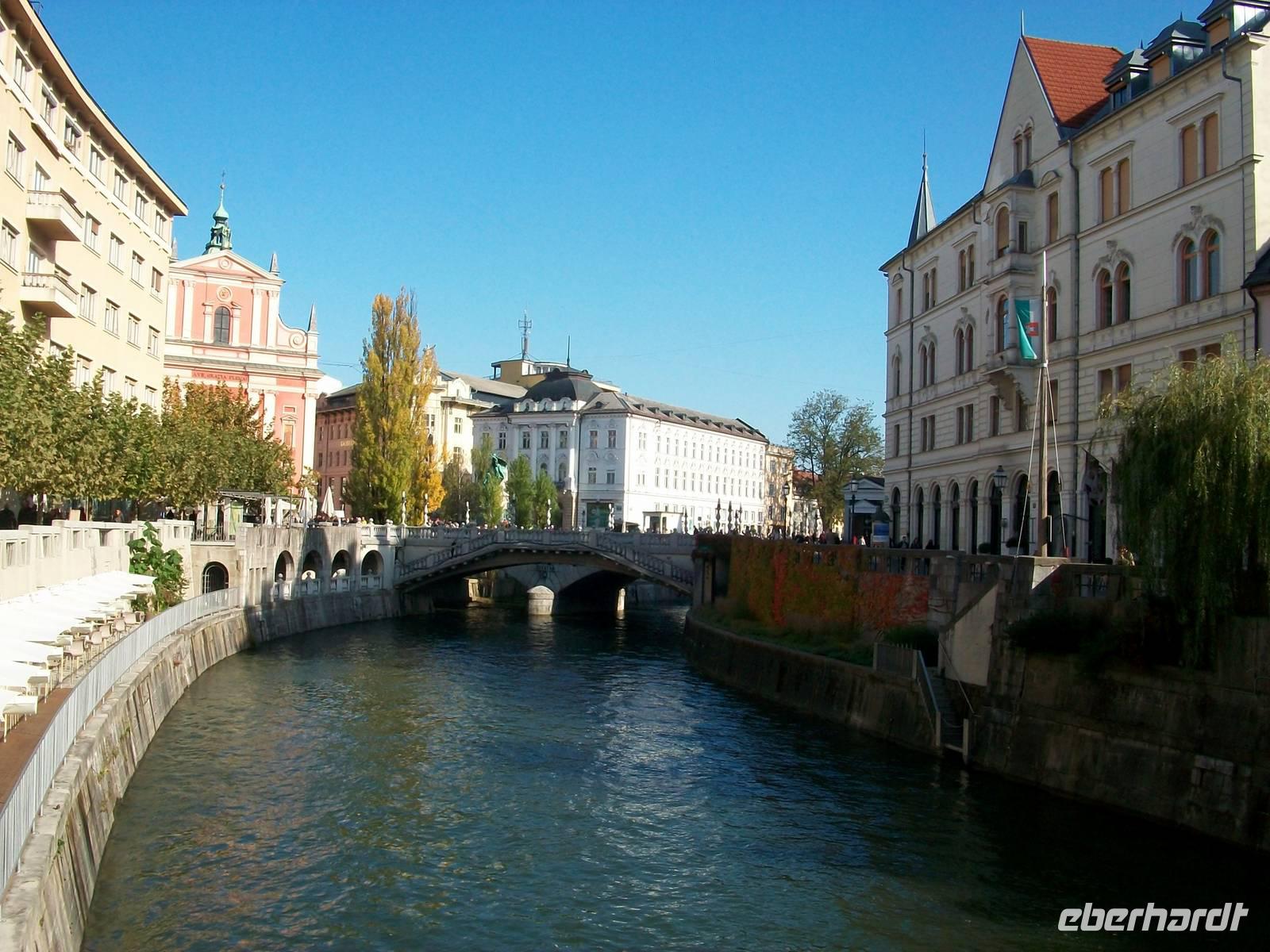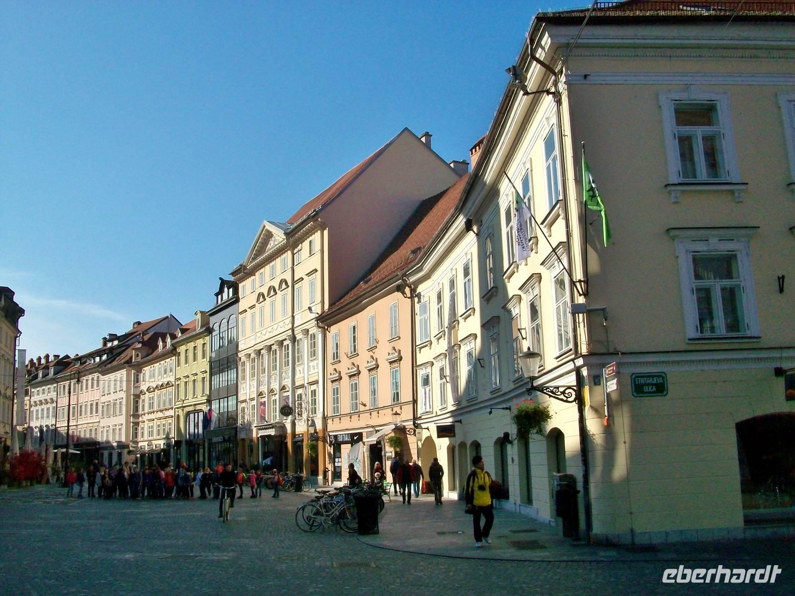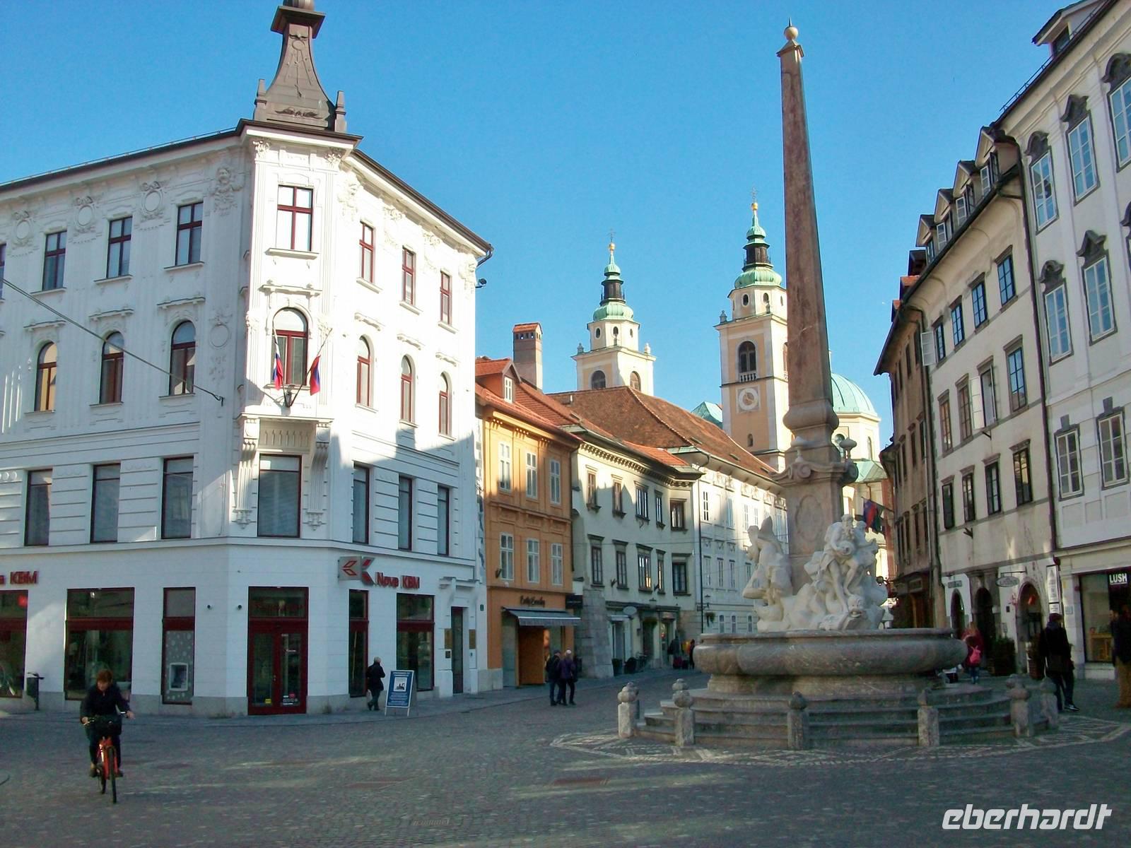 Nur wenige Schritte vom Kongressplatz und wir sind im Zentrum der Altstadt angelangt. Hier erstrahlt alles im berühmten Laibacher Barock; die Gebäude sind in den letzten Jahren aufwendig restauriert worden und Gäste aus aller Welt bestaunen diese Kostbarkeiten. Besonders eindrucksvoll sind die drei Brücken die schon einen venezianischen Eindruck machen.