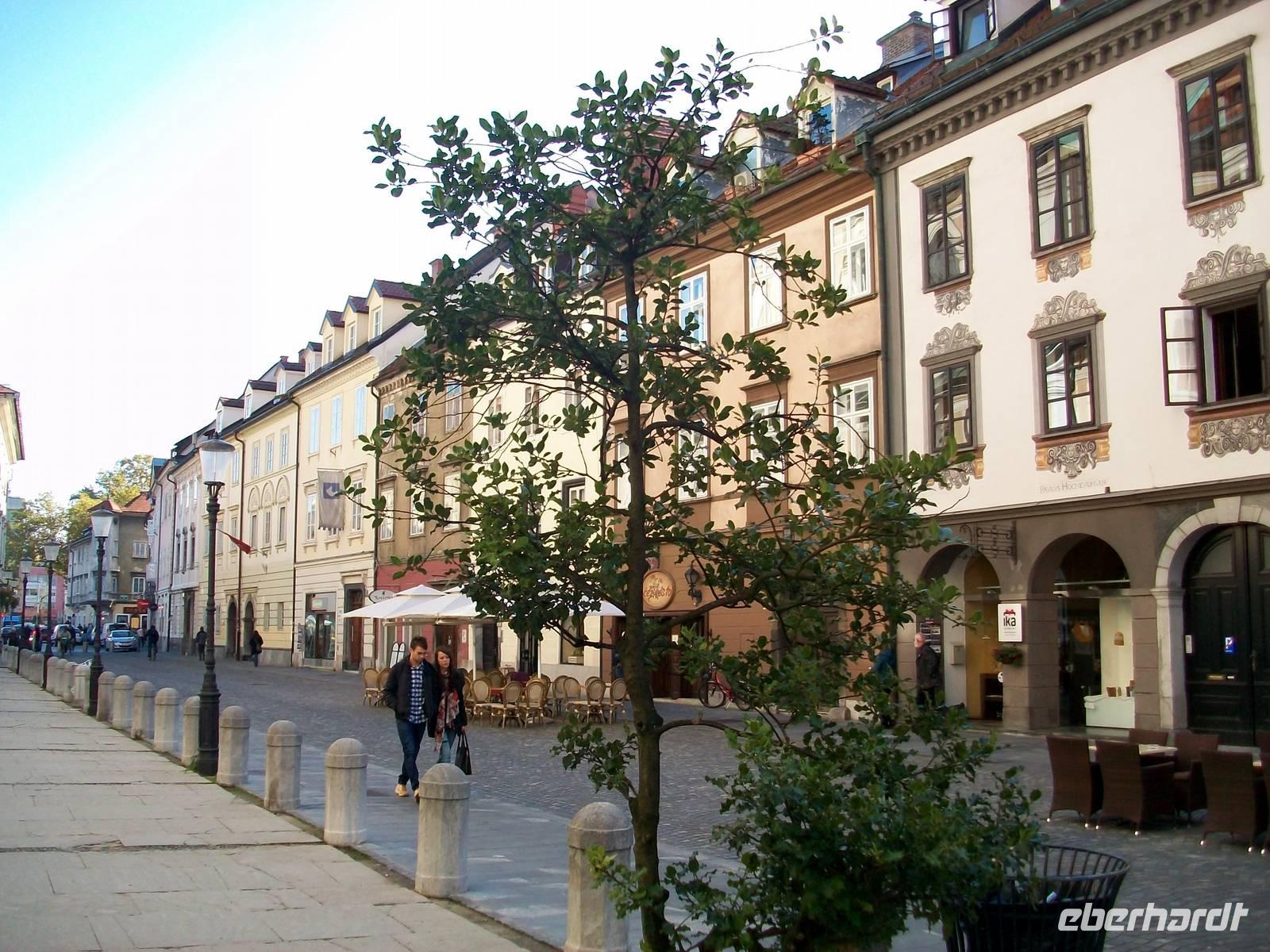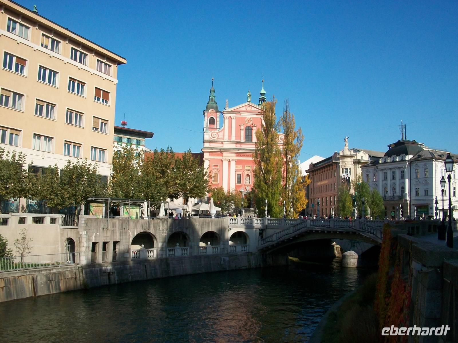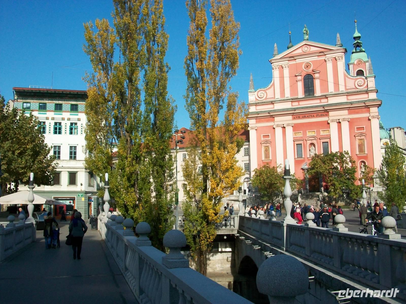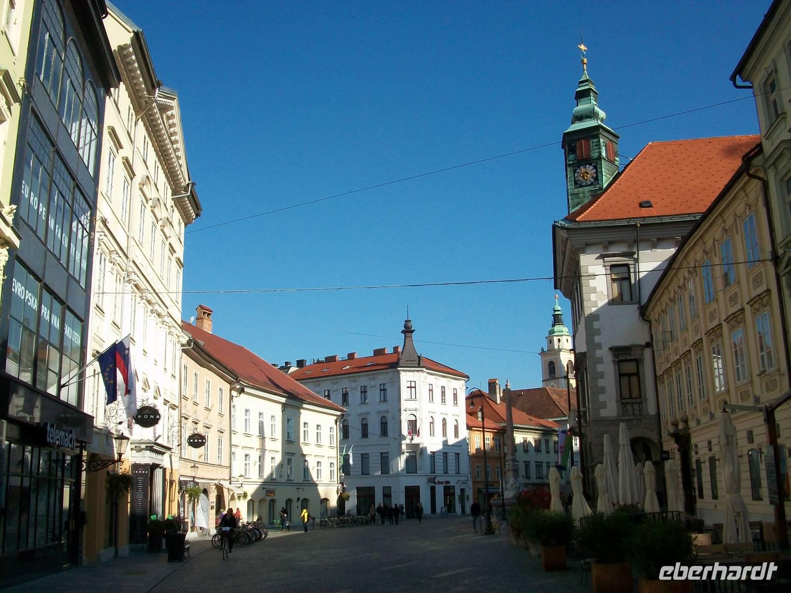 Nur wenige Schritte vom Kongressplatz und wir sind im Zentrum der Altstadt angelangt. Hier erstrahlt alles im berühmten Laibacher Barock; die Gebäude sind in den letzten Jahren aufwendig restauriert worden und Gäste aus aller Welt bestaunen diese Kostbarkeiten. Besonders eindrucksvoll sind die drei Brücken die schon einen venezianischen Eindruck machen.