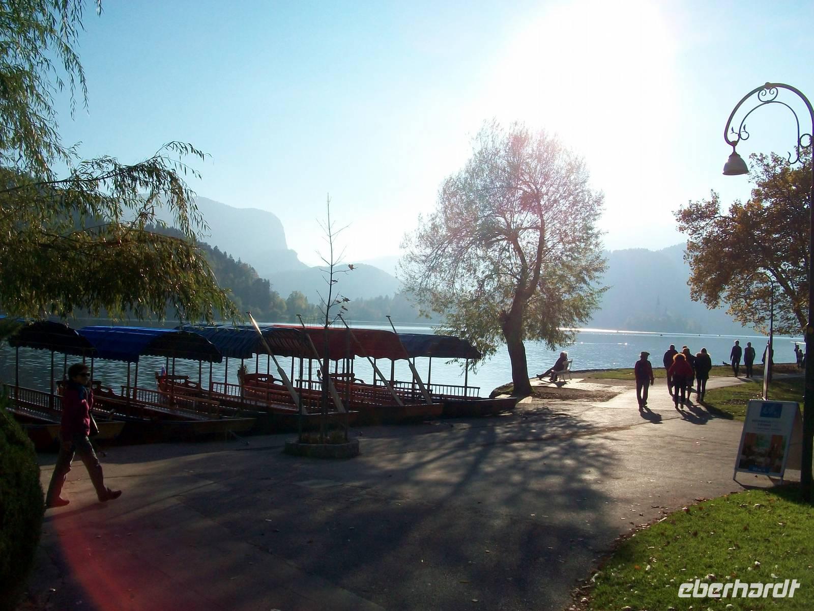 Kurze Zeit später langen wir an unserem Hotel in Bled an. Nach dem Check Inn geht es auf Entdeckung im Ort. Nur wenige Minuten und der See mit der romantischen Insel ist erreicht. Die Sonne hat noch einmal alle Kraft aufgewendet um ihre Strahlen in den leichten Dunst zu senden der über dem See liegt. Das gibt ein besonders sanftes Licht, nur der Hebst ist in der Lage solche Impressionen zu gestalten.
