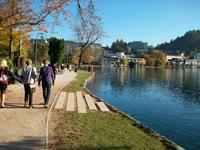 Nach diesem Genuss lohnt die Fahrt hinauf zur Burg; neben den sehenswerten Ausstellungen kann der Blick weit schweifen über die Dächer dieser Stadt und das Auge erblickt im Hintergrund die schneebedeckten Berge der Karawanken und der Julischen Alpen.