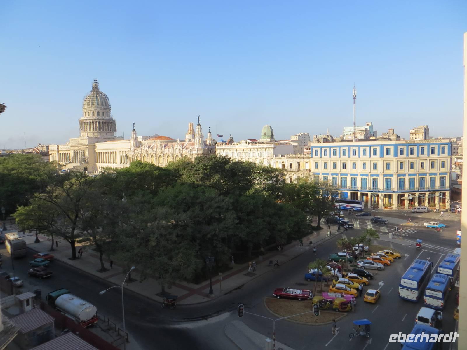 Bei strahlendem Sonnenschein starten wir in einen spannenden Tag. Gestärkt begeben sich die Reisegäste zusammen mit ihrem A-Team (Alien, Andres und Anh) auf einen Stadtrundgang durch die Altstadt Havannas. Um uns düsen bereits die berüchtigten Coco- und Bici-Taxis sowie die schönsten Oldtimer. Als erstes inspizieren wir den Plaza de Armas (Armeeplatz) mit dem alten Ceibo-Baum (Kapokbaum). Dieser spielt jedes Jahr am 16. November eine große Rolle. Man feiert den Gründungstag Havannas seit dem Jahre 1519. Die Bahía de la Habana war idealer geschützer Naturhafen und so gründeten die Spanier San Cristóbal de la Habana im Bereich der heutigen Plaza de Armas. Die Havaneros pilgern an diesem Tag traditionell um den Kapokbaum. Weiterhin befinden sich ein großer Antiquitätenmarkt, das älteste Hotel Santa Isabel, das Rathaus sowie die Statue von Carlos Manuel de Céspedes. Er gilt als Begründer der Nation und war ein Freiheitskämpfer gegen die spanische Kolonialmacht. Als Zuckerbaron ließ er seine Sklaven 1868 frei und forderte alle Kubaner sowie Sklaven auf, sich am Kampf am Unabhängigkeitskampf zu beteiligen. In Kuba kennt man ihn auch unter der Bezeichnung als Vater des Vaterlandes. Als der Sohn von Céspedes von spanischen Kolonialtruppen gefangen genommen wurde, entschied er sich gegen die Einstellung des Kampfes als Austausch seines Sohnes. Er äußerte die Worte" Alle Kubaner sind meine Söhne". Das Portrait von Céspedes finden wir auch auf dem Geldschein von 100 CUP sowie 100 CUC wieder.