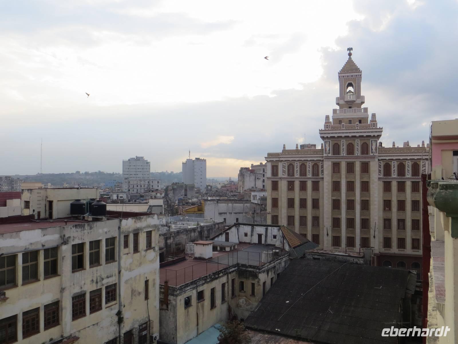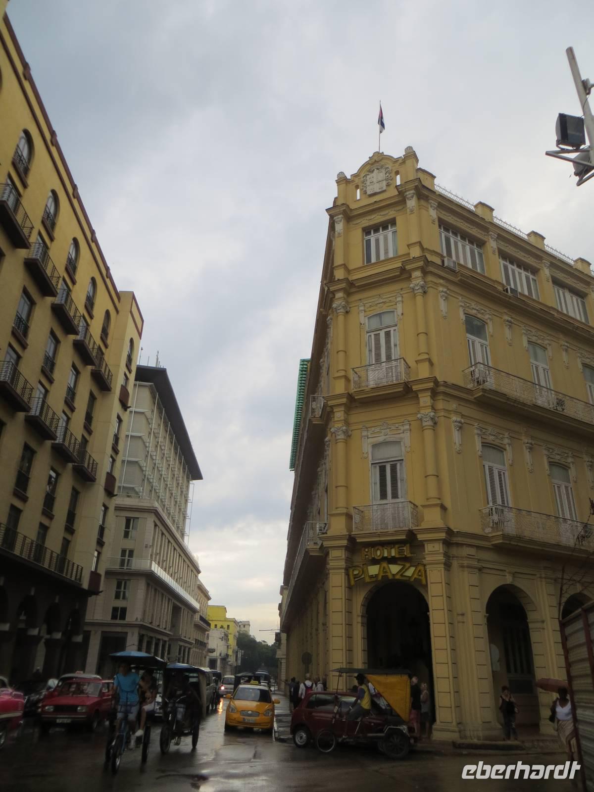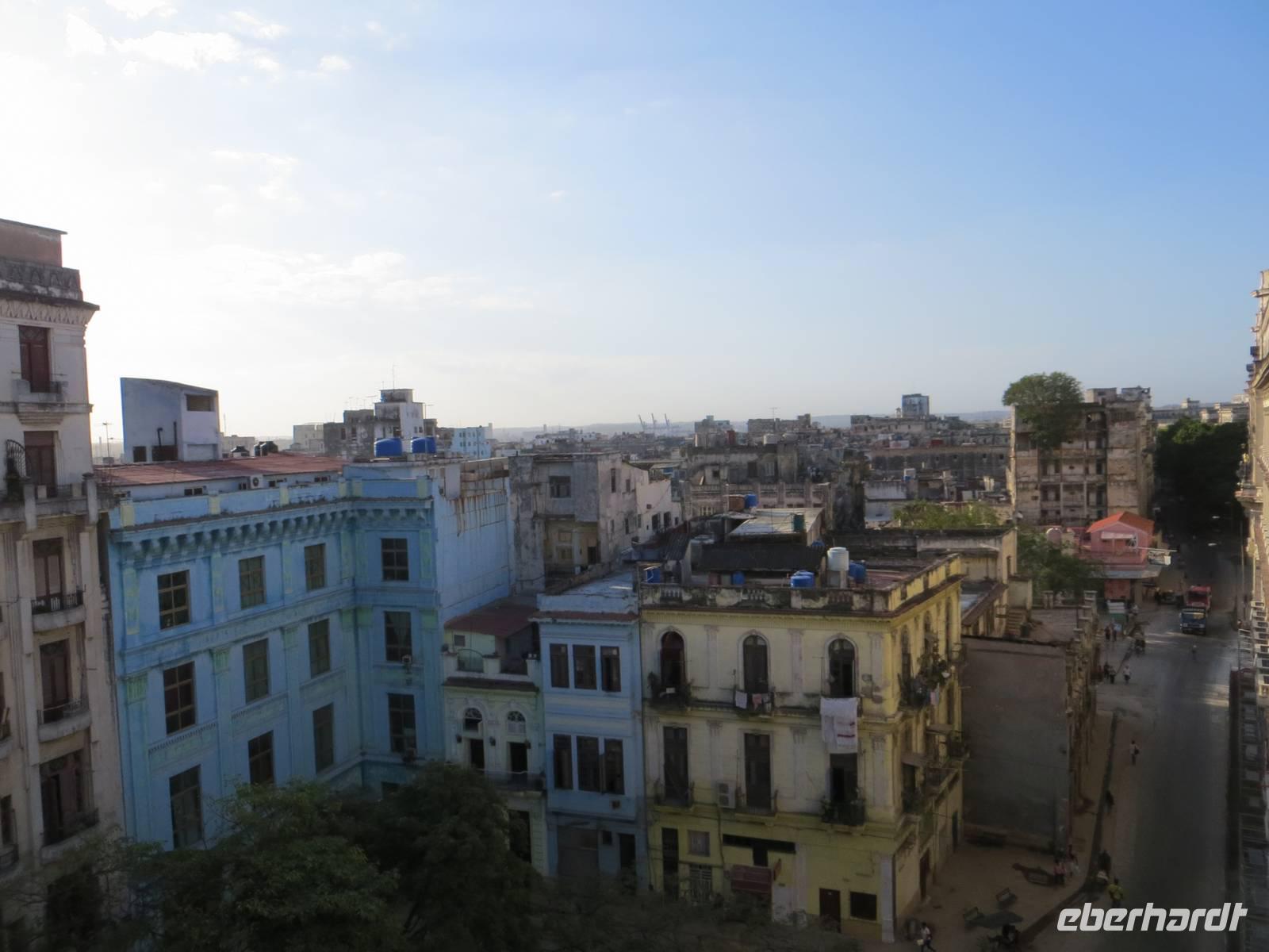 In Berlin-Tegel empfange ich alle vier strahlenden Gesichter unserer Reisegruppe . - Nein, wir haben niemanden vergessen, unsere Gruppe ist vollzählig. Das zählen geht bei, ja Sie lesen richtig, vier Personen auch recht zügig und nach den Check-In Formalitäten starten wir mit einem Snack im Restaurant Leissieffer. Dann heben wir pünktlich mit KLM ab in Richtung Karibik. Über Amsterdam erreichen wir nach angenehmen, aber dennoch aufgrund von technischen Komplikationen am Schipol-Flughafen langen 12 Stunden den Boden Havanna. Ein warm-feuchter Abend bei Sonnenuntergang heißt uns herzlich Willkommen. Mit Wasser und mentaler Motivation gewappnet bewegen wir uns durch den relativ übersichtlichen Flughafen zur Sicherheits- und Passkontrolle. Vor der Reise wurden wir gewarnt, wie lange diese Einzelprozedur dauern würden. Erstaunt wie zügig diese bei uns vorangehen, verlassen wir den José Martí -Flughafen mit einem Lächeln im Gesicht. Wir nehmen uns einen Augenblick um unsere monetären Angelegenheiten bei der Wechselstube zu klären und uns mit Kubanische Peso Convertible (CUC) auszustatten. Schnell werden die Koffer verstaut und wir fahren mit unserem Reiseleiter Alien sowie unserem Chauffeur Andres ca. 25 Kilometer nach La Habana Vieja (Alt-Havanna). Die Hauptstadt Kubas ist mit einer Fläche von 727 Quadratkilometern, vierzehn Kilometern langer Strandpromenade und 2 Millionen Einwohner auch die größte Stadt des Landes. Alien macht noch einige allgemeine Erklärungen zu Kuba. Als größte Insel der Karibik gehört sie neben der Insel der Jugend, Eilanden und weiteren 4.195 Inseln zum kubanischen Archipel. Auf einer Flüche von über 109.000 Quadratkilometern leben hier elf Millionen Einwohner. Während die größte Entferung rund 1.250 Kilometer von Ost in Punta Maisí bis West in Cabo San Antonio beträgt, misst die schmalste Stelle von Nord nach Süd gerade mal 31 Kilometer. Wir checken ein im Hotel Plaza am Parque Central, wie der Name schon verrät, inmitten des Zentrums. Bei einem leckeren Abendessen auf der Dachterrasse mit Salsamusik und Cristal-Bier (einer von vielen auf unserer Reise) stoßen wir auf die uns bevorstehende schöne Zeit in der Karibik an. Langsam machen sich der Langstreckenflug und die Zeitverschiebung von sieben Stunden spürbar. Also heißt es nun: Bunas Noches!