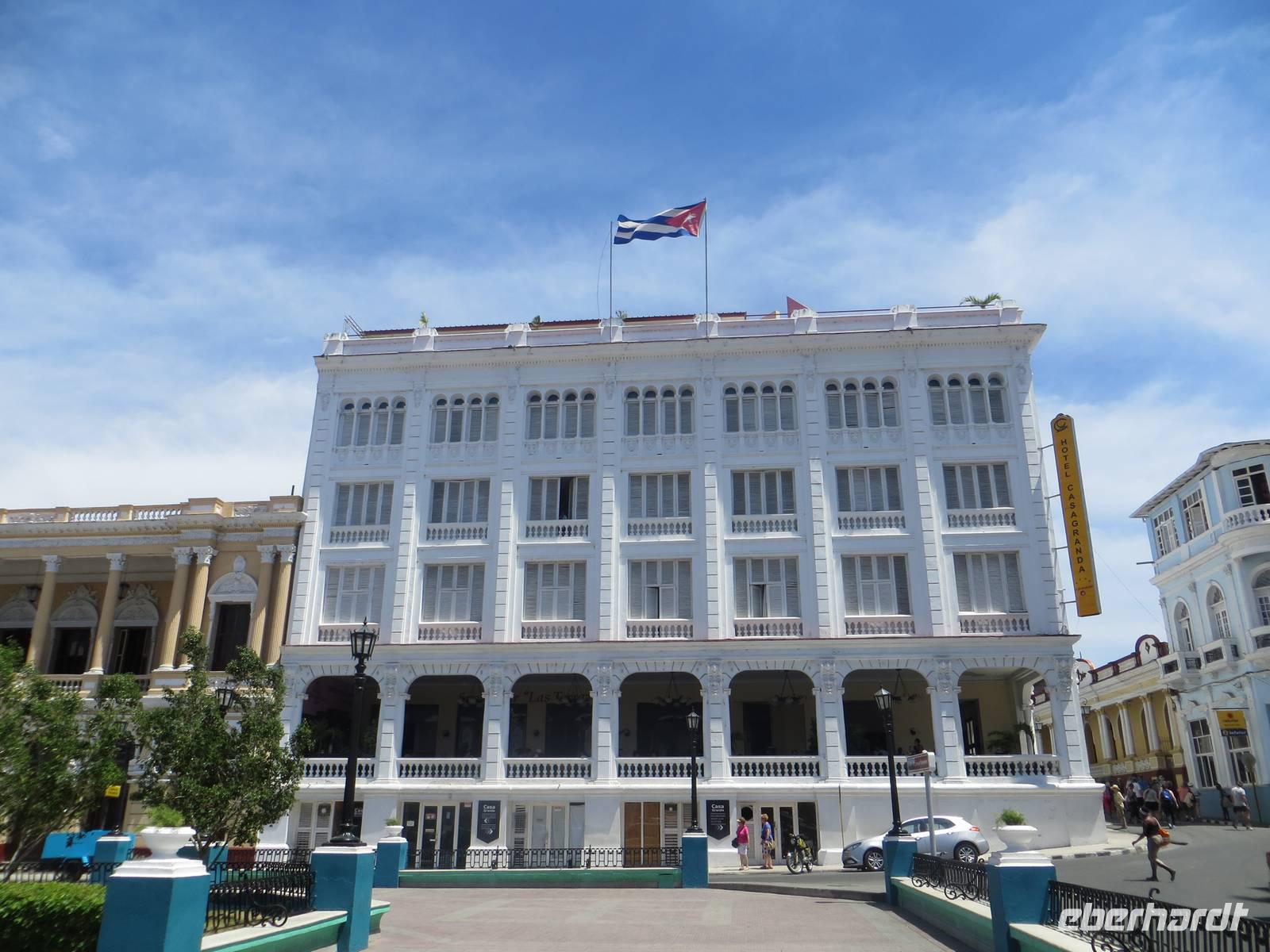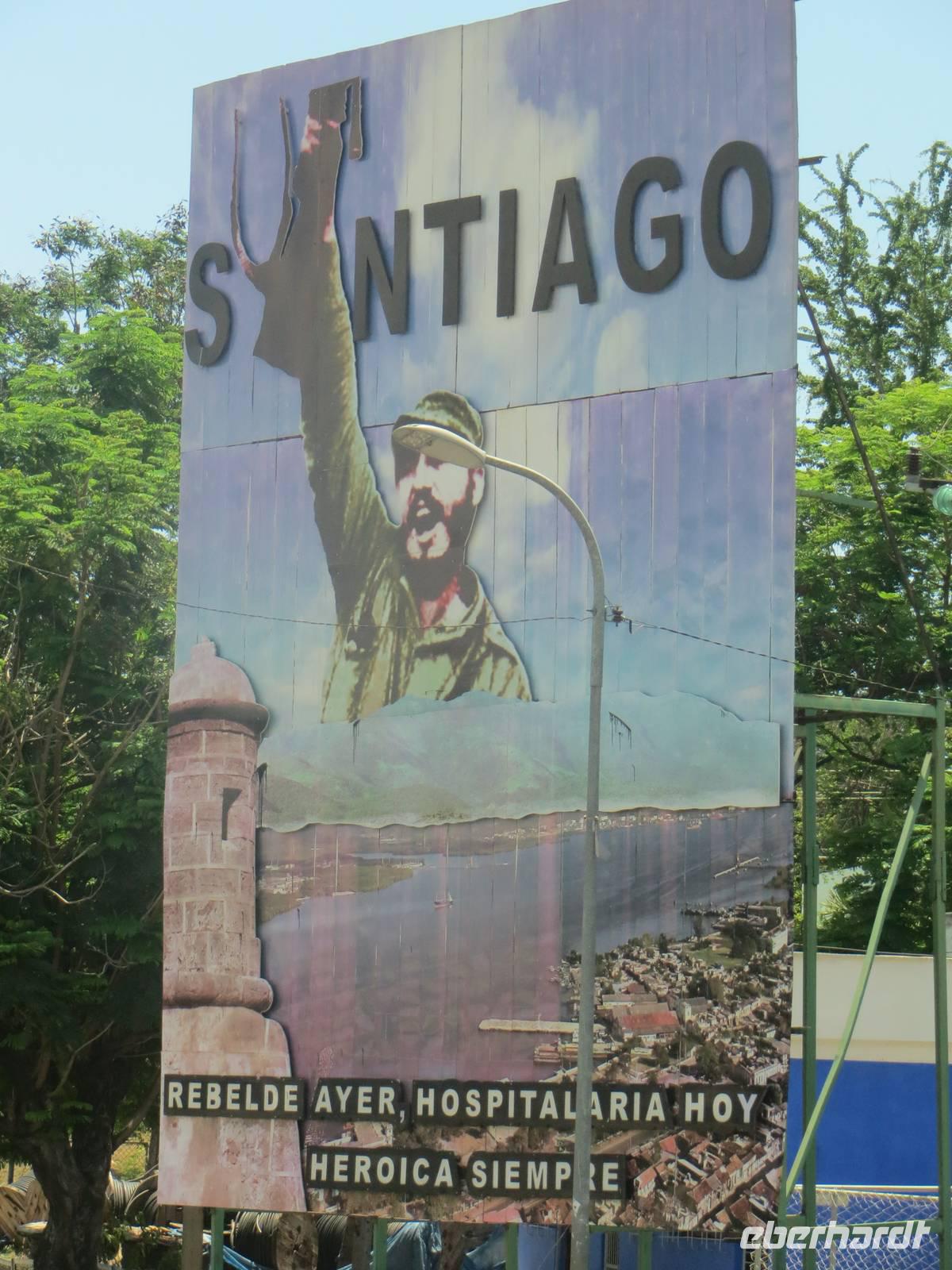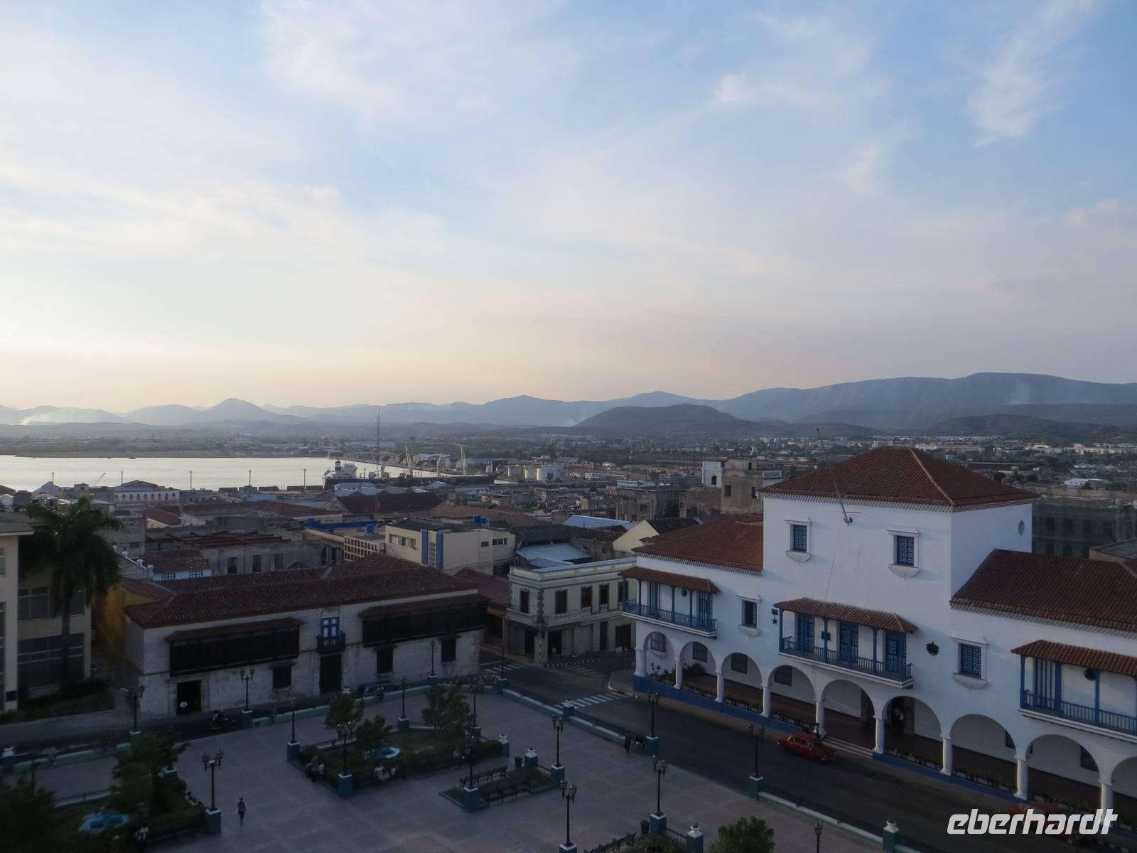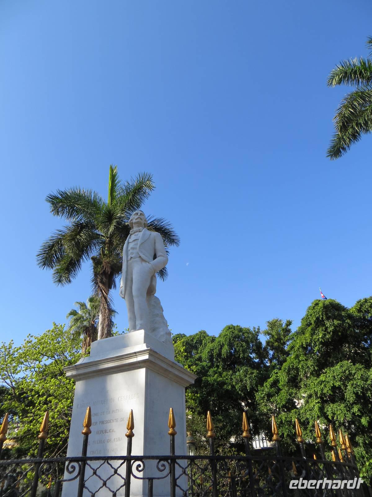 "Wiege der Revolution", so nennt sich Santiago de Cuba voller Stolz. In und um diese reinzvolle Stadt hatten nahezu alle Freiheitsbewegungen in Kuba ihren Ursprung. Direkt vor unserem Hotel befindet sich der eindrucksvolle Hauptplatz Parque Céspedes im Kolonialstil. Alien zeigt uns die gleichnamige Kathedrale, das älteste Haus des Landes und das gegenüberliegende weiß-blau angestrichene Rathaus, von hier aus hielt Fidel Castro seine erste Rede nach der Revolution. Am 01.01.1959 verkündete er den Sieg der Revolution und die Unabhängigkeit Kubas. Danaeben steht das Casa de Velazquez, in dem heute eine Ausstellung zum Leben zu Zeiten Kubas Entdeckung beherbergt ist. Früher war der Parque Céspedes ein reiner Exerzierplatz für das Militär. Danach galt er als Marktplatz und noch später wurde er Platz der Verfassung, bis er zum Ehrenmal des Freiheitskämpfers Céspedes wurde.