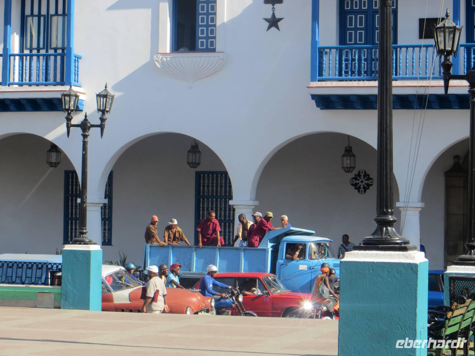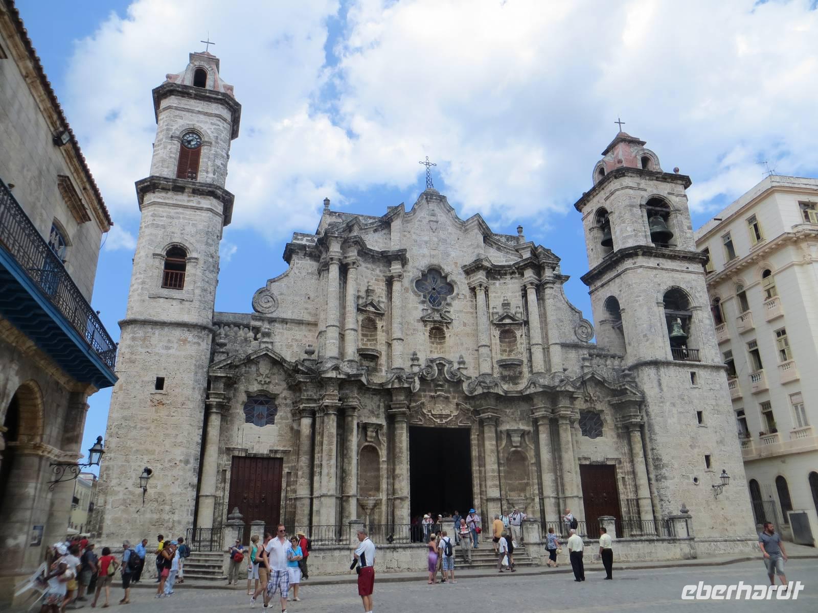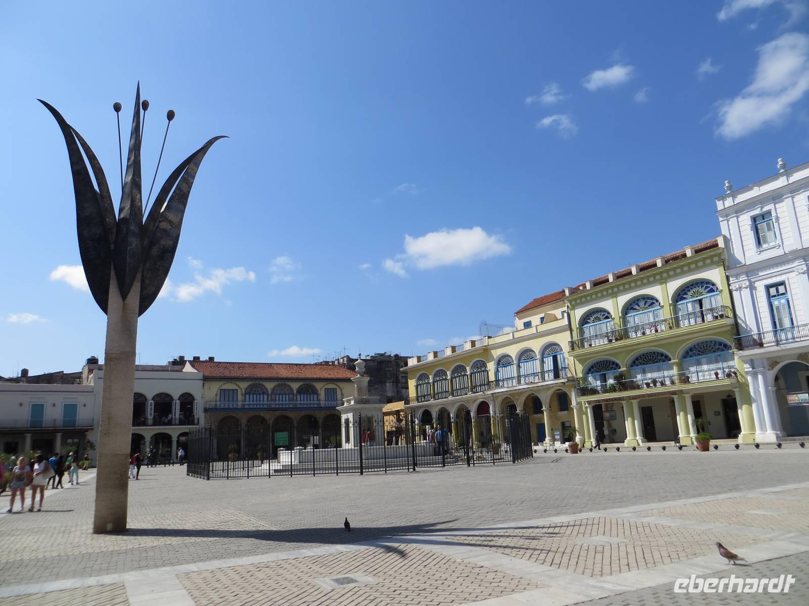 Am Plaza Vieja (Alter Platz) sitzen Afrokubanerinnen an den Straßen und nuckeln an riesigen Zigarren oder preisen lauthals ihre Wahrsagerkünste an. Hochherrschaftliche Häuser wurden saniert und zeigen sich in ihrer kompletten Kolonialpracht im schimmernden Sonnenlicht. Die UNESCO erkannte zuerst 1982 die Altstadt von Havanna in ihrer Gesamtheit als Weltkulturerbe an, doch verlieh nach einem Jahr auch speziell diesem Platz Plaza Vieja diesen Titel. Wir folgen den hallenden Musikklängen auf den Straßen in den Fußstapfen Hemingways und gelangen zur Bar La Bodeguita del Medio. Hier, in dieser kleinen, viel umschwärmten Bar quetschen sich zahleiche Touristen und Kubaner zwischen der Musikband und schwingen das Tanzbein während Sie wie der Schriftsteller einen Mojíto genießen. Gleich um die Ecke eröffnet sich der vierte und letzte Platz unserer Stadtbesichtitung, die Plaza de la Catredral. Er sei der wohl reizvollste Platz der Stadt mit arkadengeschmückten Kolonialbauten aus dem 18. Jahrhundert. Heute beherbergen diese zahlreiche Mussen, Kunstgewerbeläden und Restaurants. Hauptanziehungspunkt ist die Kathedrale von Havanna. Auffallend sind die zwei ungleichen Türme. Einer ist schmal und der andere breit. Es heißt, hier solle einst der Leichnam von Christoph Kolumbus gehütet worden sein bevor er nach Sevilla überführt wurde.