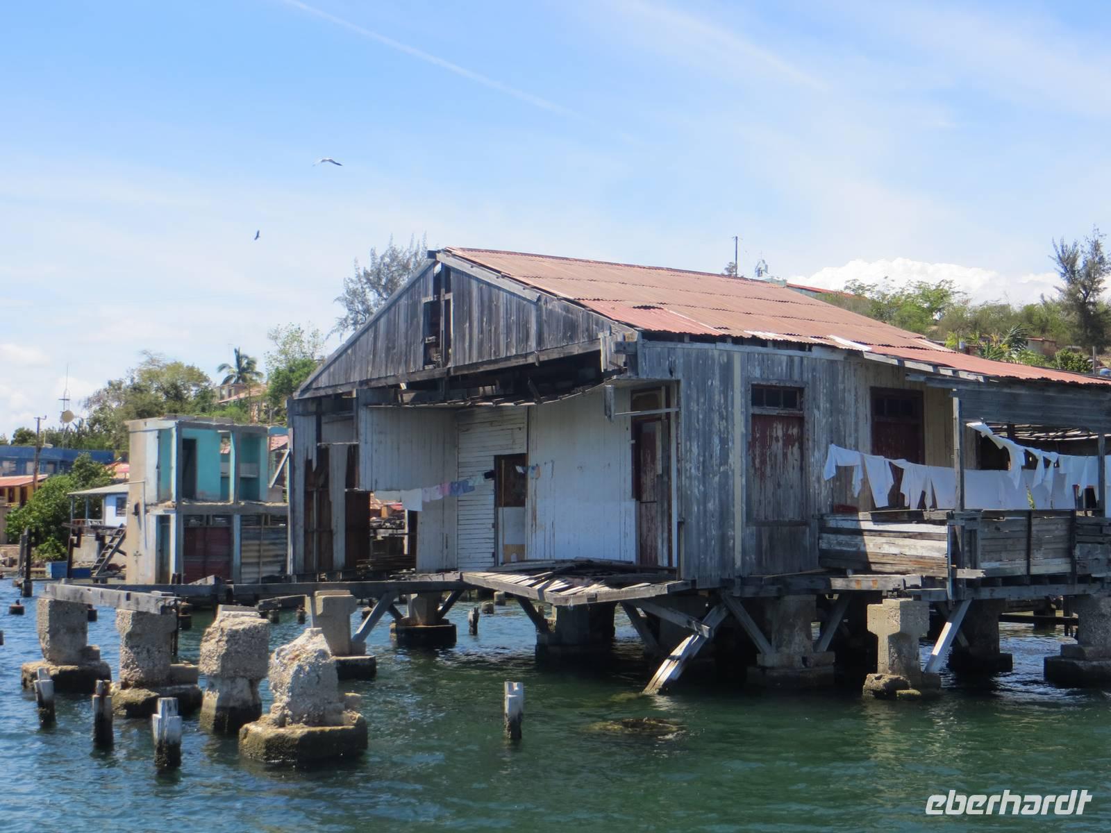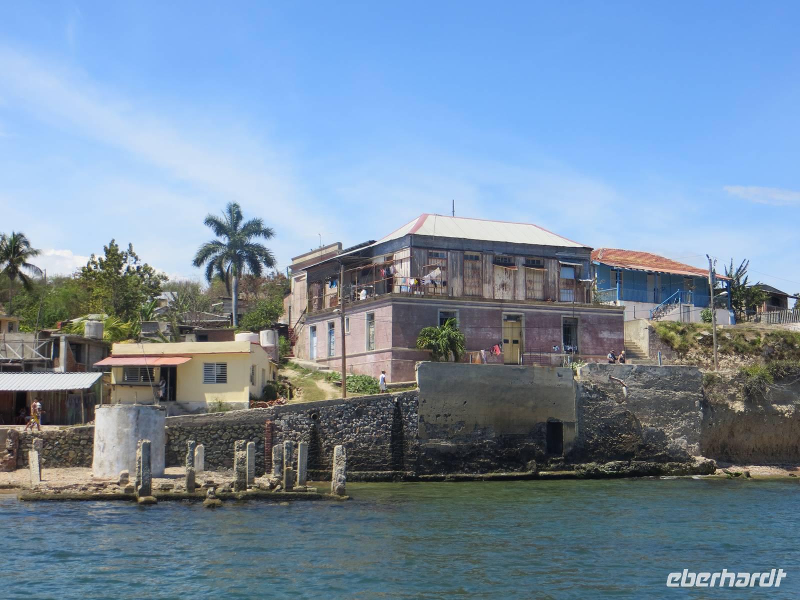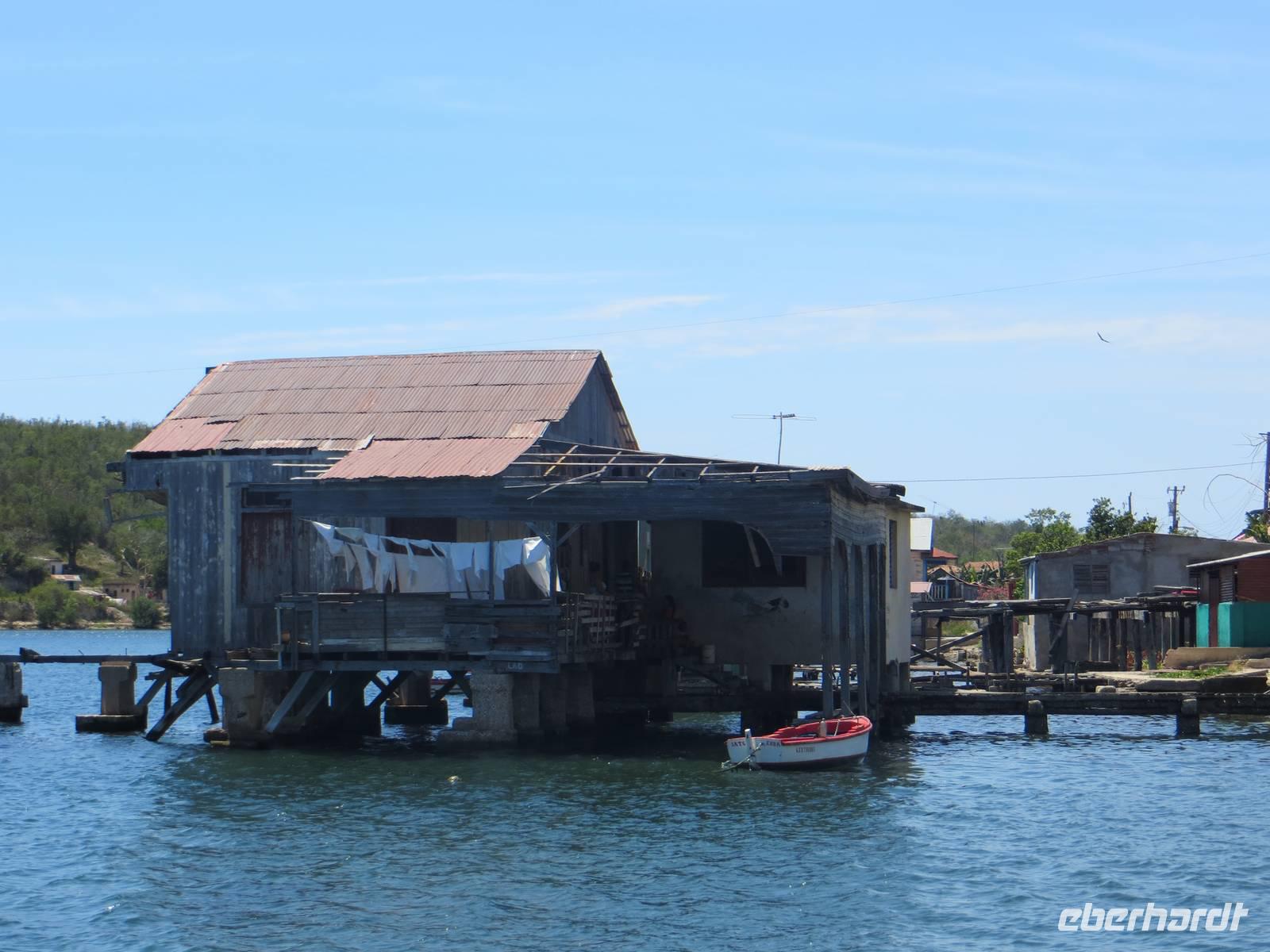 Der Lago Hanabanilla ist ein künstlich aufgestauter See und befindet sich in wunderschöner Natur der malerischen Sierra del Escambray. Dieser versorgt beide Provinzen Santa Clara und Cienfuegos mit Wasser. Ein kleines Kraftwerk erzeugt mit Wasser- und Solarengergie Strom für die Gegend. Zwar ist der Stausee ca. 24 Kilometer lang, doch an seiner breitesten Stelle nur einen Kilometer breit. Unterwegs zeigt uns Alfredo verschiedene Pflanzenarten, pflückt eine Mamay-Frucht für uns und führt uns den Lippenstiftbaum vor. Auf der Spitze ergötzen wir uns an dem grandiosen Ausblick über die Berglandschaft und den See, wie er sich fjordartig durch die grünen Berghänge schlängelt. Rückzu führt uns Alfredo zu seinen Freunden, ein paar Kleinabuern, die in einer einfachen Holzhütte am See wohnen. Abseits jeglicher Zivilisation wohnt hier ein Ehepaar mit ihren Hunden, Schweine und Hühner. Sie leben von dem, was sie anbauen (Mango, Taro (Malanga)) und vom Fischen (Bachforellen). Die Rationen, die sie vom Staat erhalten reichen kaum zum Leben. Dennoch werden wir mit so viel Herzlichkeit und Lebensfreude zum Kaffee eingeladen und verkosten rote Wasseräpfel und Cherimoyas (vom Geschmack her eine Mischung aus Ananas und Banane, aus der Anona-Familie).