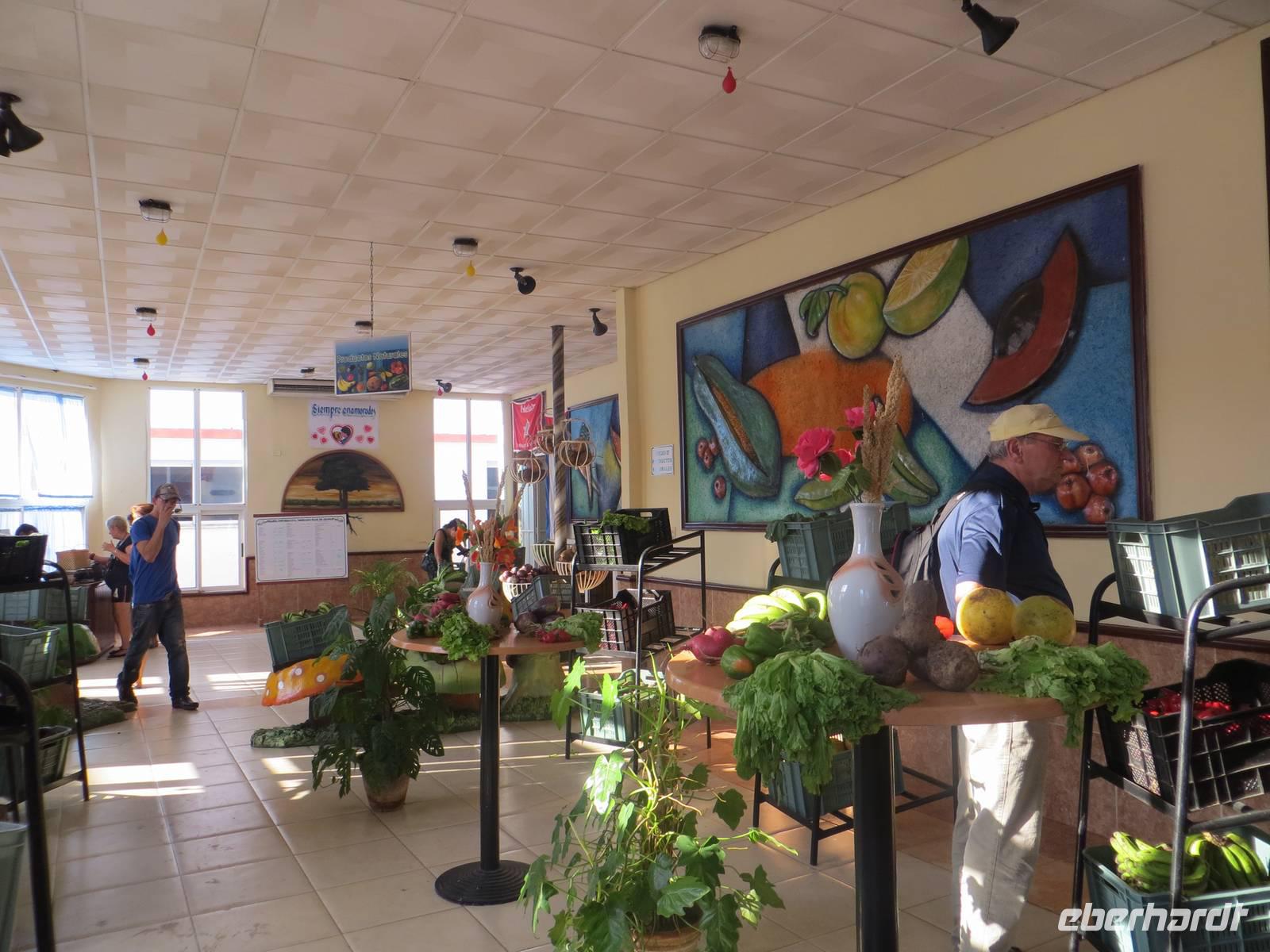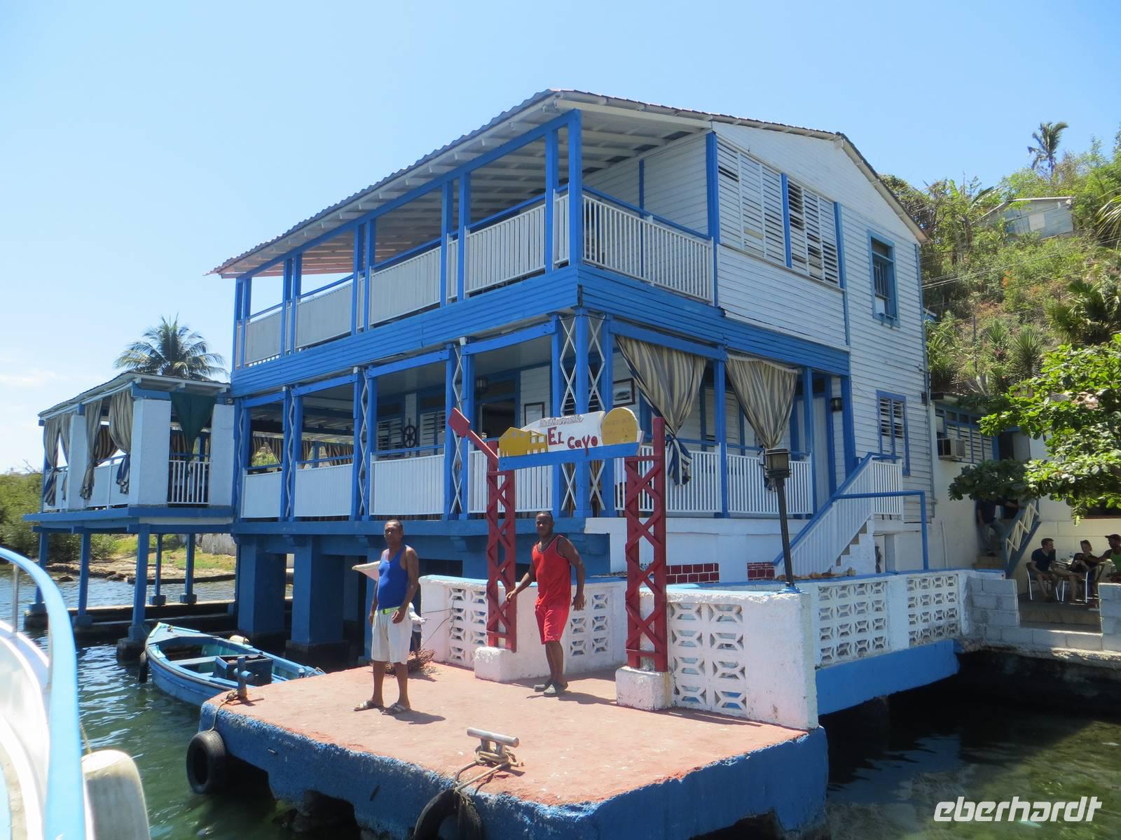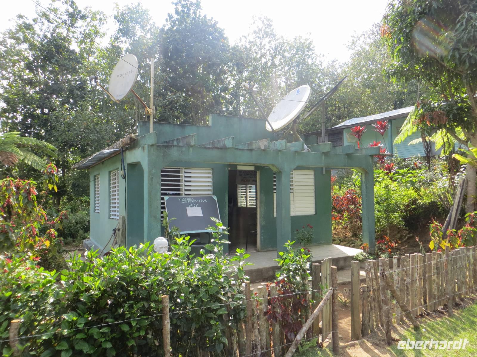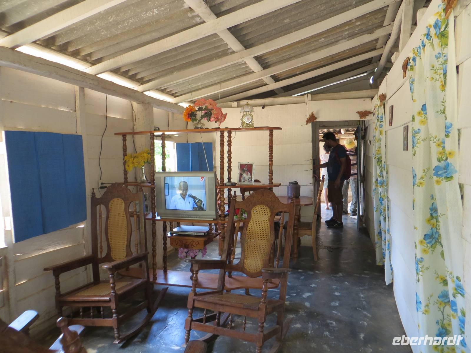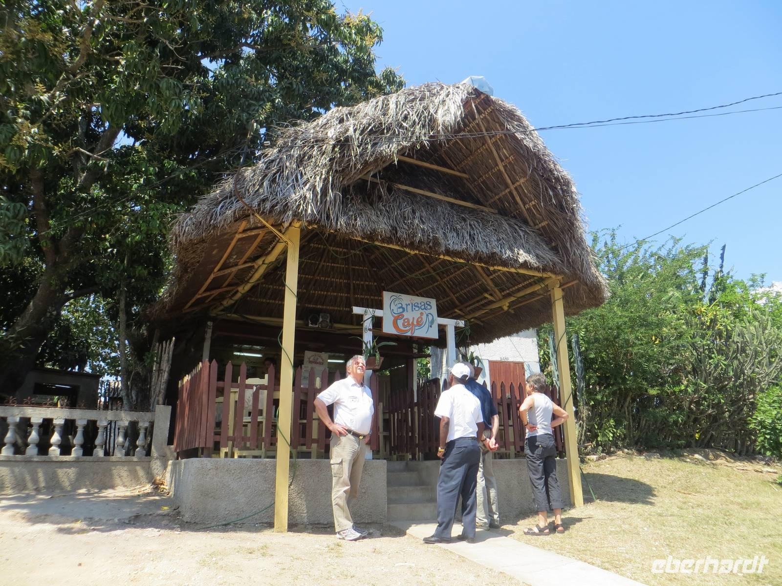 Eine weitere huckelige Fahrt auf den Straßen Kubas, wenn man diese so bezeichnen darf, denn sie ist wirklich im kargem Zustand mit vielen Schlaglöchern, Auswaschungen und Asphaltbeulen, führt uns durch die Contramaestra auf der anderen Seite der Sierra Maestra. Die letzten drei Kilometer sind eine wortwörtliche Schaukelei, bevor wir endlich in unserem tollen Naturhotel El Saltón ankommen. Herzlichst werden wir mit Limettensaft empfangen und genießen das Mittagessen auf dem offenen Restaurant inmitten der unberührten Natur. Mit vollem Magen mögen wir uns eigentlich lieber auf eine Hängematte schlafen legen, aber wir haben noch einen Spaziergang durch die Umgebung auf unserem Programm. Also begeben wir uns mit einem lokalen Wanderführer Don Carlos auf den nächsten Berg, um seine Freunde auf der dort stehenden Hütte zu besuchen. Die Haushälterin bittet uns herzlich in ihr Häuschen und führt uns ein wenig in ihr Leben ein: wie sie auf dem Feuer kocht, was für staatlich Unterstützung die Einheimischen bekommen und ganz wichtig: Wie man ein Batida-Getränk herstellt. Wir dürfen sogar kosten von der tollen Marmeladenfrucht mit Milch und Eis - mhhh.