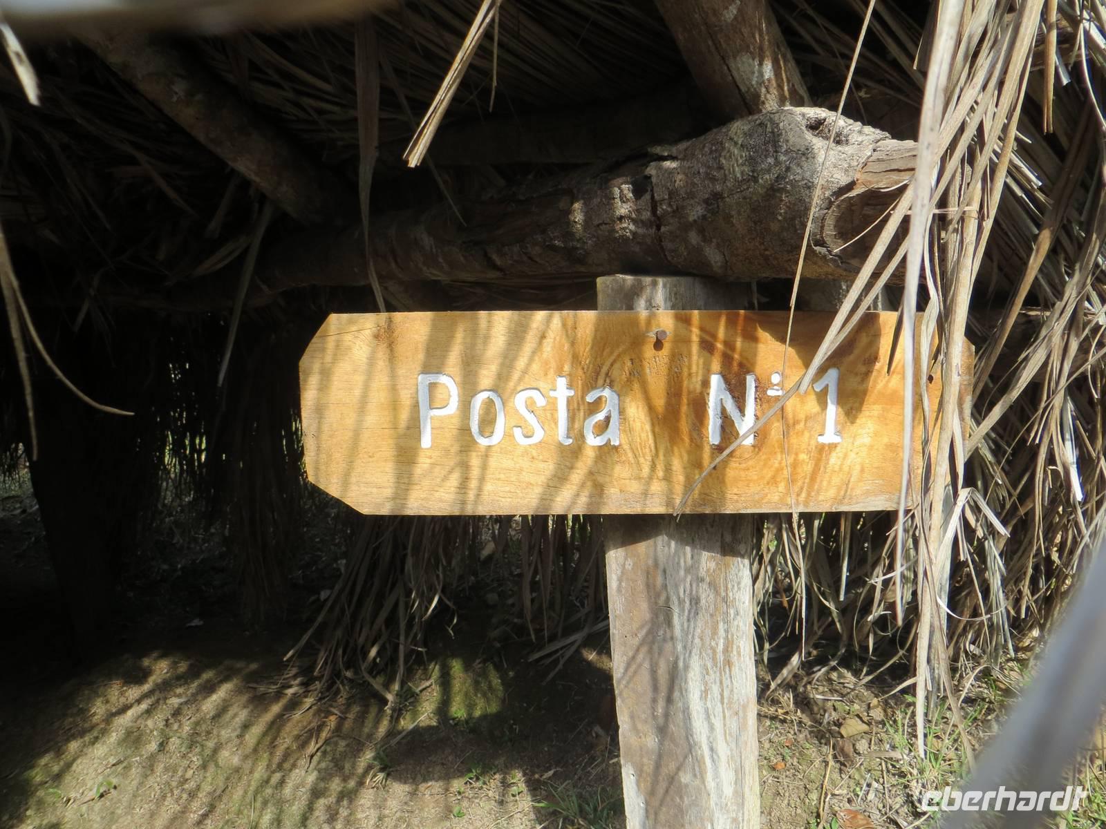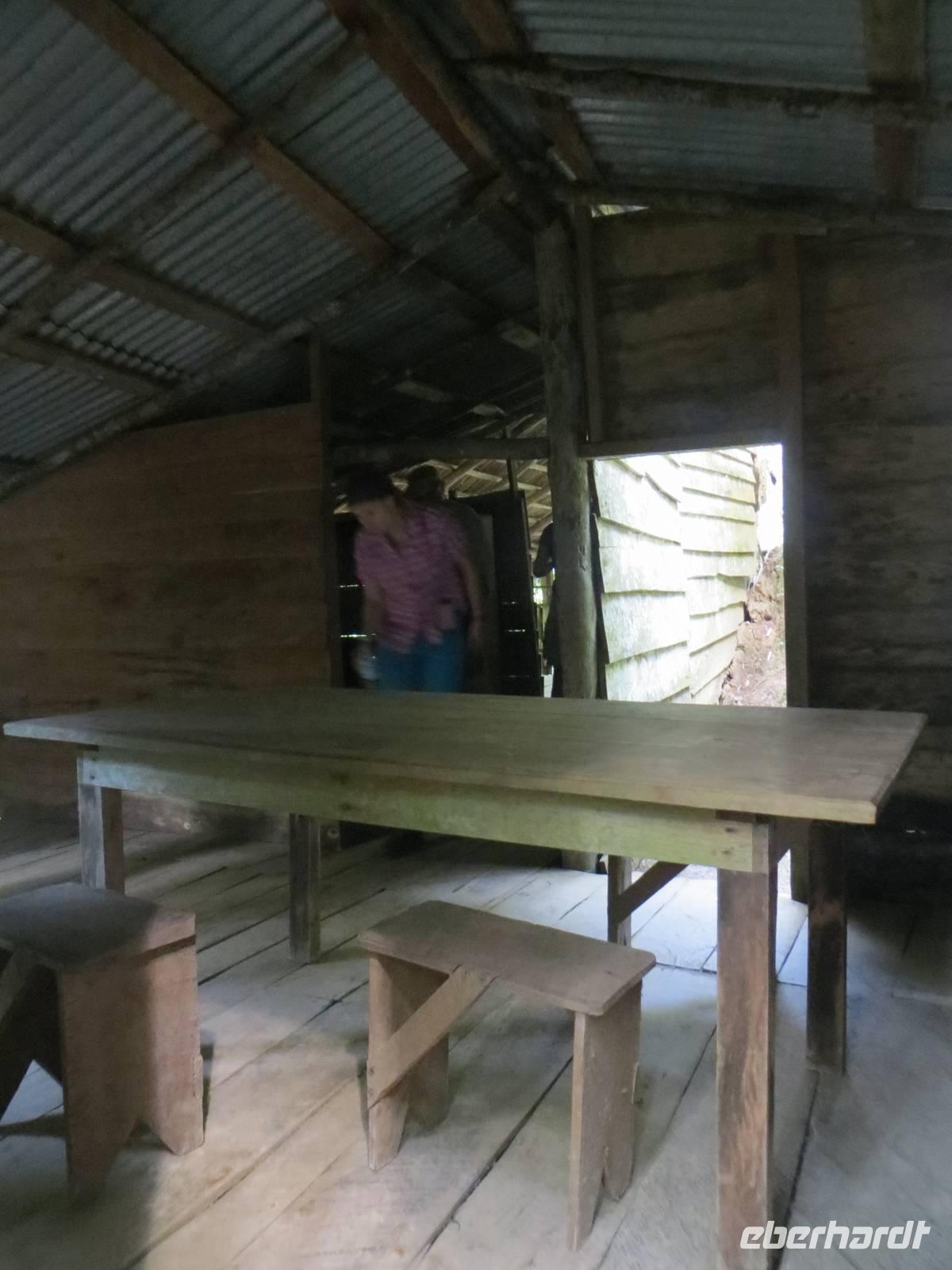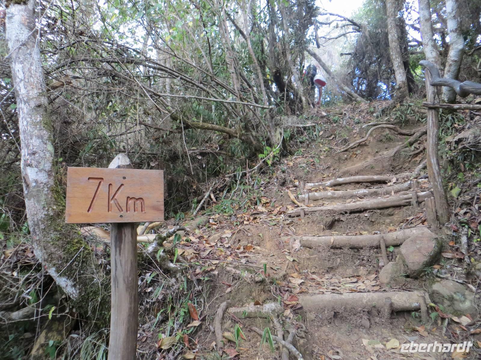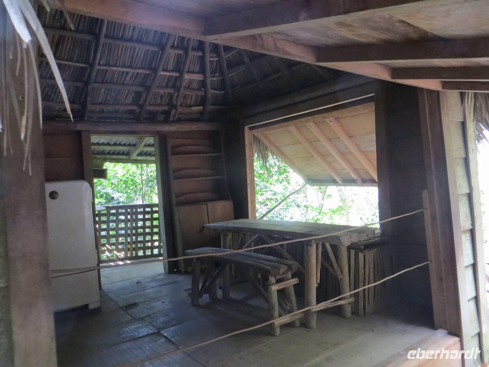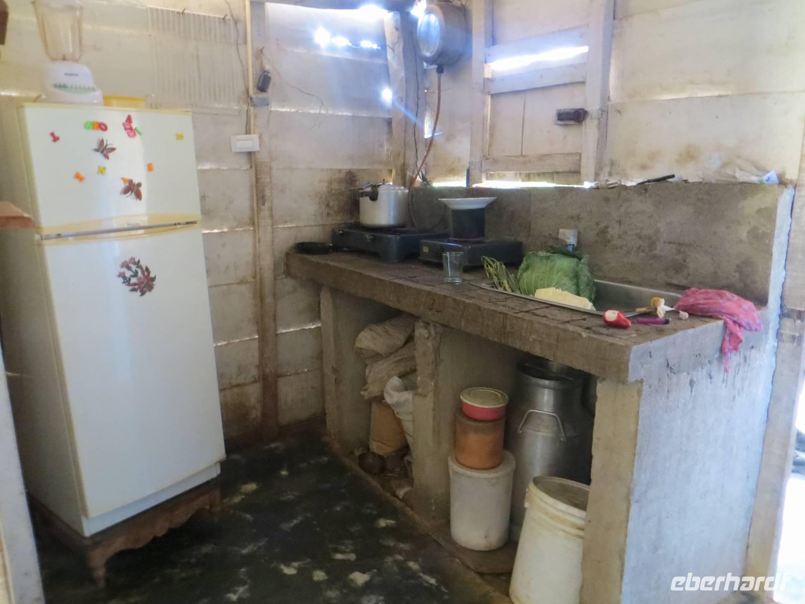 Die Ranger haben bereits für uns das Mittagessen gekocht, auf offenem Feuer: Nudelsuppe mit Reis und Zitrusblättertee. Anschließend tauschen wir unsere Eindrücke mit den anderen deutschen Gästen aus, lassen die Seele in der schönen Natur baumeln und stoßen mit kubanischem Rum auf den erfolgreichen ersten Anstieg an. In der Nacht fängt es an zu regnen. Wir können über die Blechdächer gut hören, wie es aus Eimern auf uns herabfällt.