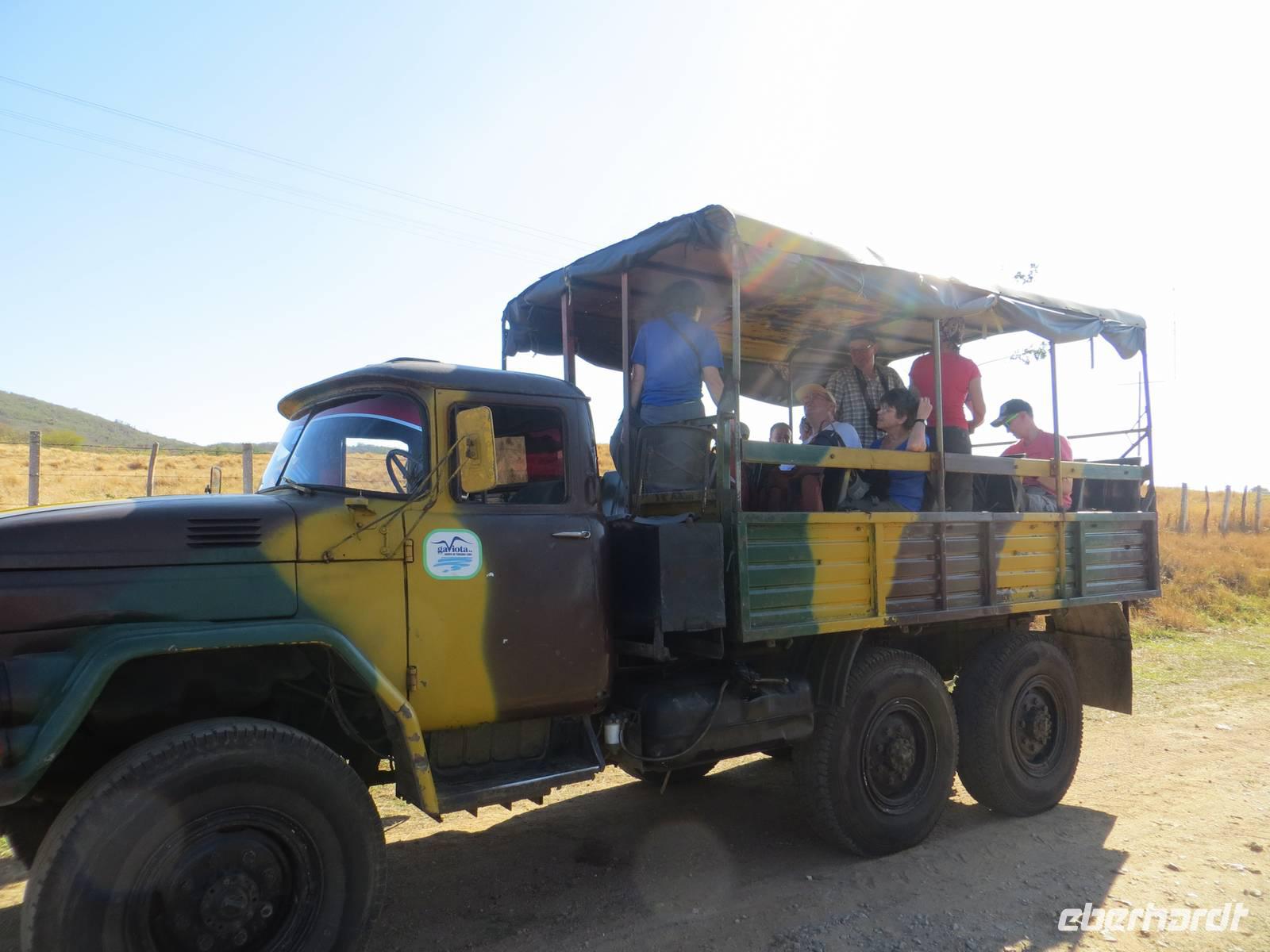 Das perfekte Wetter für eine Wanderung erwartet uns heute Morgen. Wir nehmen weiter die Nationalstraße und passieren einen kleinen Ort namens Manicaragua. Zahlreiche Kubaner stehen auf der Straße in der Hoffnung, von dem öffentlichen Bus, einer Pferdekutsche oder vorbeifahrenden Auto mitgenommen zu werden. Manchmal stehen sie auch zwei oder drei Tage am Straßenrand, bis jemand diese Menschen mitnimmt. Das Transportproblem in Kuba ist sehr groß.