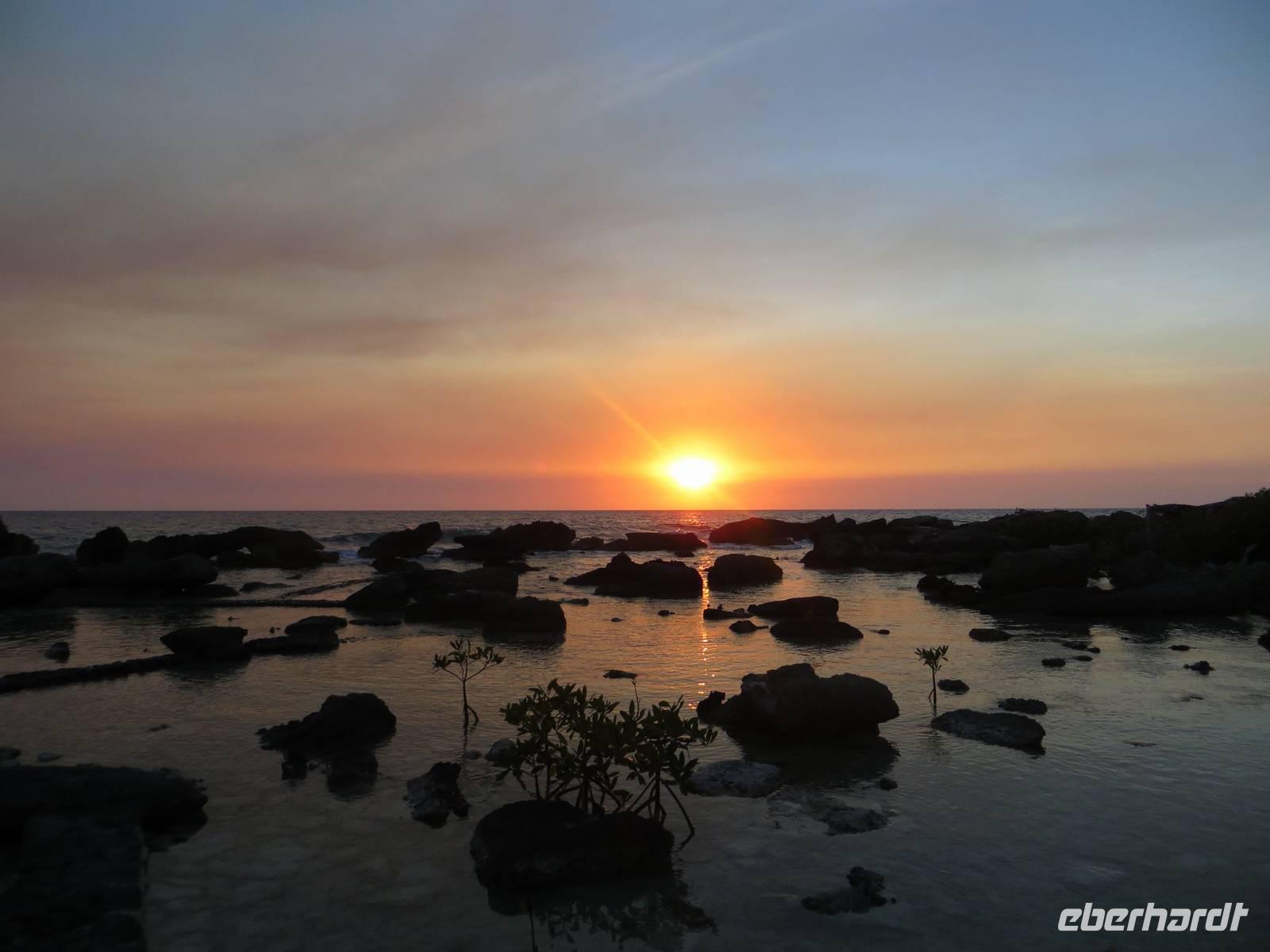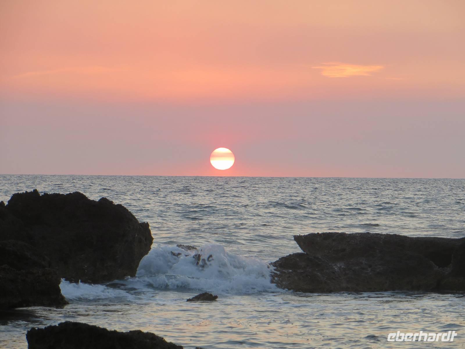 Wir nehmen uns für den Rest des Tages die 300 Kilometer bis Camagüay vor. Ein Glück, dass unser Chauffeur Andres die Klimaanlage schon reparieren konnte. Auf der sogenannten Autobahn begegnen wir des Öfteren Pferdekutschen und Fahrradfahrer. Während der Fahrt erzählt Alien uns von den Heiligen Kühen in Kuba. Es ist verboten, Kühe zu töten oder zu schlachten, sonst könnte man mit einer Haftstrafe von sechs Jahren verurteilt werden. Es sei nur dem Staat erlaubt, mit Rindfleisch zu handeln. Selbst Bauern, die Kühe besitzen, dürfen diese nicht töten. Auch der Handel von Garnelen und Langusten ist staatlich geregelt. Plötzlich, mitten in der Periphärie kommt unser Bus zum Stehen. Einige Zeit später erscheint auch schon die Assistenz der Busgesellschaft und stellt fest, dass die Kurbelwelle kaputt ist. Die Agentur schickt uns einen neuen Bus, nur weiß noch keiner von wo und wann er kommt. Also vertreiben wir die Zeit damit, uns die Umgebung anzusehen, den kubanischen Männern beim Abbauen des Busses und Anbringen verschiedener Instrumente für das Ziehen des Fahrzeuges sowie mit Singen und Ron con Limón. Salud! Es hat auch positive Seiten, soweit abseits jeglicher Zivilisation zu sein - ein romantischer Sonnenuntergang verabschiedet den Tag und ein fantastischer Sternenhimmel eröffnet sich über uns. Endlich, ca. 1 kubanische Stunde später kommt unser neuer 5-Sterne-Bus. Wow, mit so viel Komfort hatten wir nicht gerechnet, aber wir nehmen ihn gerne an. Durch die sternenklare Nacht bringt uns der neue Chauffeur José mit einigen Schlafpausen nach Camagüay. Wir merken, wie verwinkelt die Straßen der Altstadt sind. In diesem Labyrinth verliert man schnell mal die Orientierung, doch letztendlich finden wir unsere Übernachtungsstätte für die nächste halbe Nacht. In Herrgottesfrühe checken wir ein und schlummern schnell unseren nächsten Reiseabenteuern entgegen.