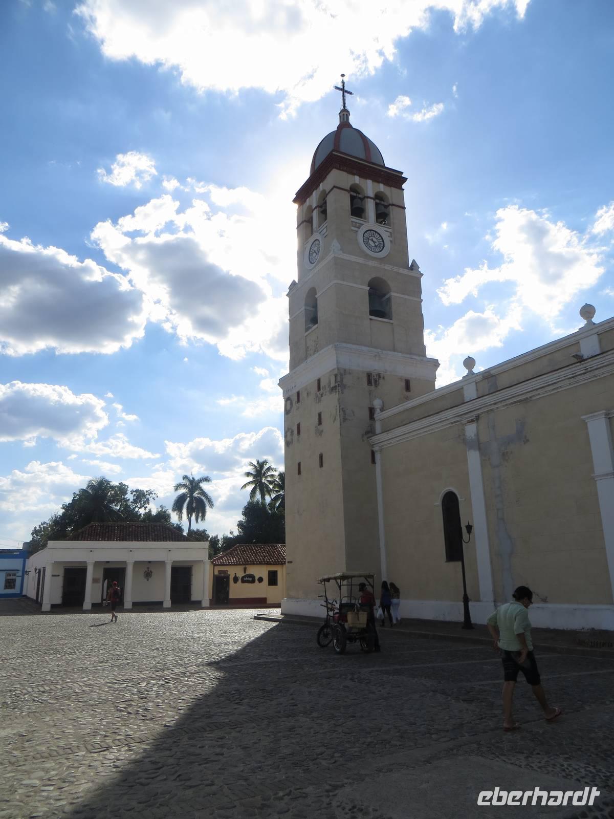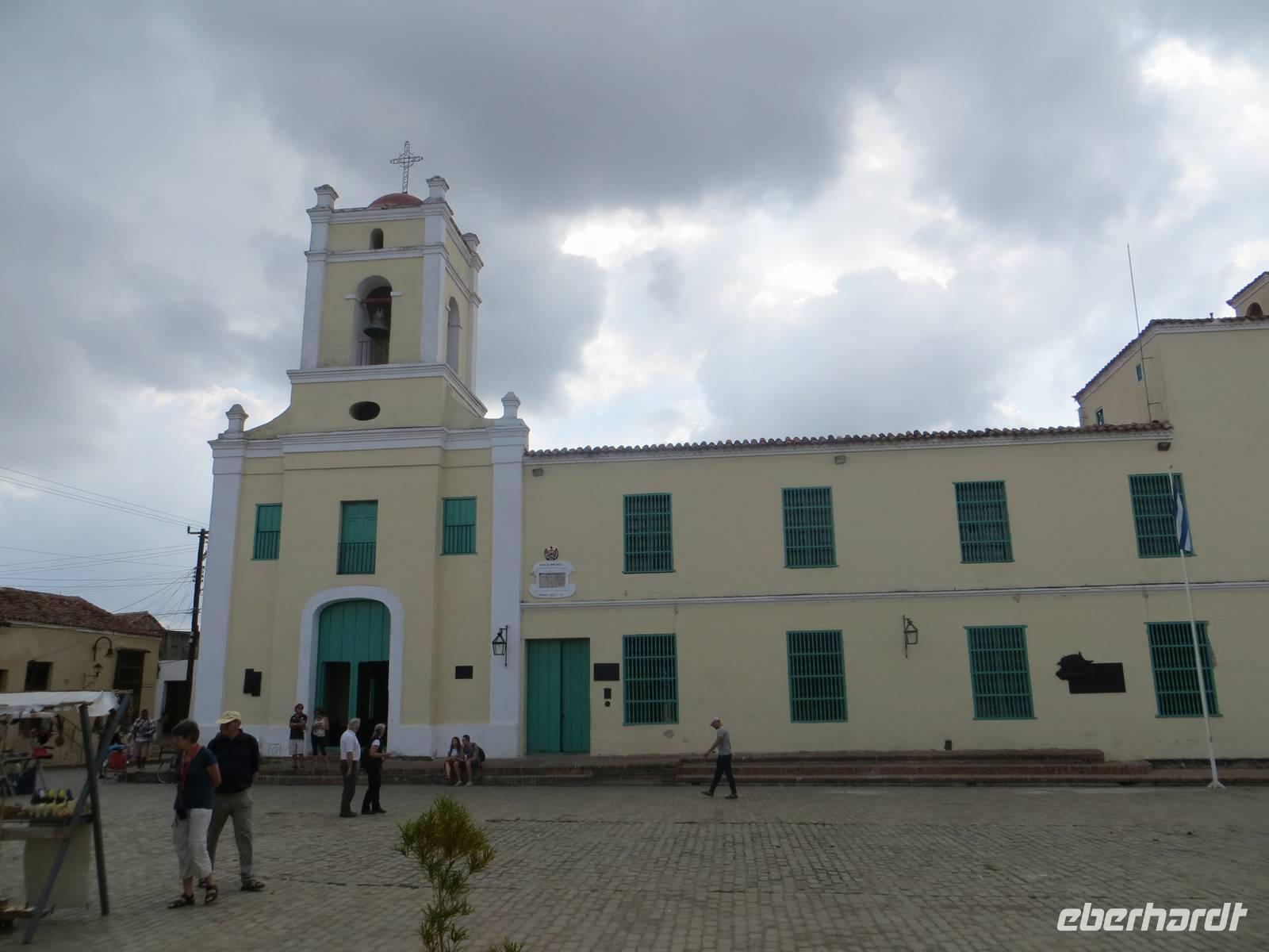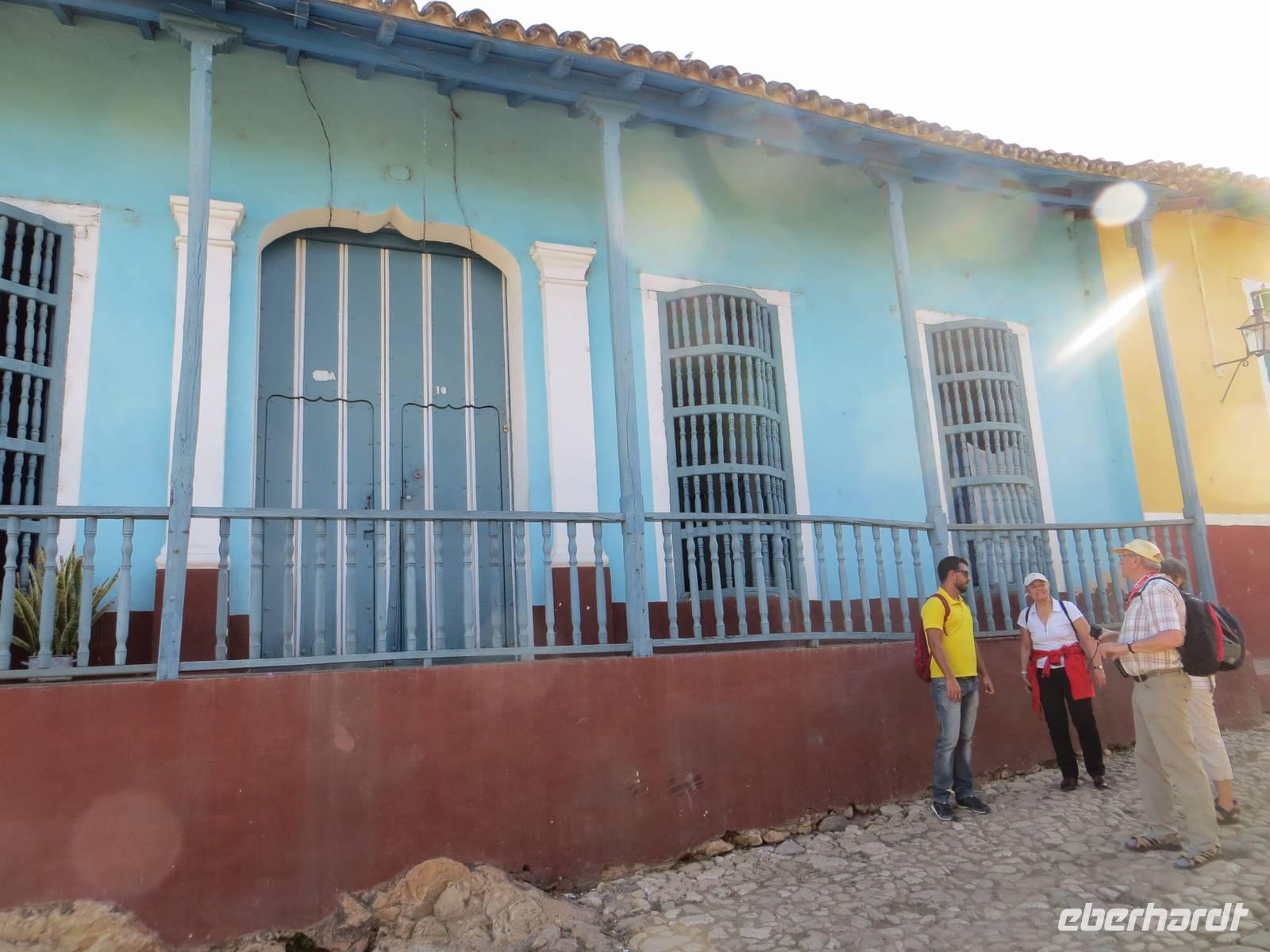 Nach der anstrengenden Wanderung wird uns ein sonniger und entspannter Tag versprochen. Die kleine hübsche Stadt Trinidad gilt als das koloniale Schmuckkästchen des Landes. Die UNESCO ist 1988 auf diese verschlafene Kleinstadt aufmerksam geworden und erklärte sie mit ihren einzigartigen Bauwerken zum Weltkulturerbe. Aufgrund von Goldfunde gründete der Spanier Diego Velázquez hier die dritte Villa (Kolonialstadt) in Kuba. Riesige Zuckerrohrplantagen, Sklavenhandel und Tabakanbau brachten großen Reichtum. Alien führt uns zu einem Lebensmittelladen und erklärt uns, wie das System mit den Lebensmittelkarten funktioniert. Durch die Gassen mit holprigen Kopfsteinpflastersteinen holpern wir vorbei an der Casa de la Trova, eines der ältesten aber auch lebendigsten Häuser Trinidads. Aus dem Haus schallen die Rhythmen von Kuba: Cha Cha Cha, Rumba, Salsa, etc. Rings um den Plaza Mayor erheben sich wunderschöne Herrenhäuser der großen Zuckerbaronen und die Kathedrale Iglesia Parroquial de la Santísima Trinidad. Die Kirche ist der Heiligen Dreifaltigkeit geweit. Einer Geschicht nach heißt es, soll man die Christusfigur Cristo de Veracruz drei Mal mit einem Schiff nach Mexiko geschickt haben. Doch sie errichte nie ihr Ziel. Jedes Mal nach Verlassen des Hafens von Casilda schlugen Stürme Schiff samt Besatzung und Christufigur zurück bis man es schließlich als Fingerzeig verstehen wollte, die Figur in Trinidad zu belassen. Nun hat sich Cristo schon richtig gemütich gemacht in der Kirche von Trinidad.