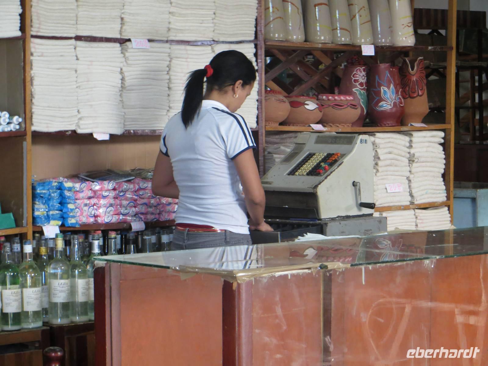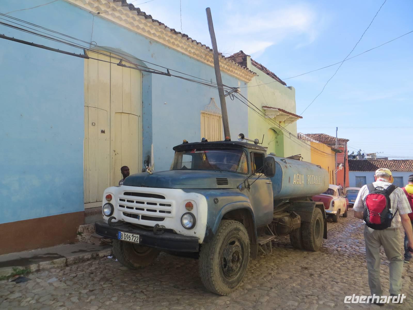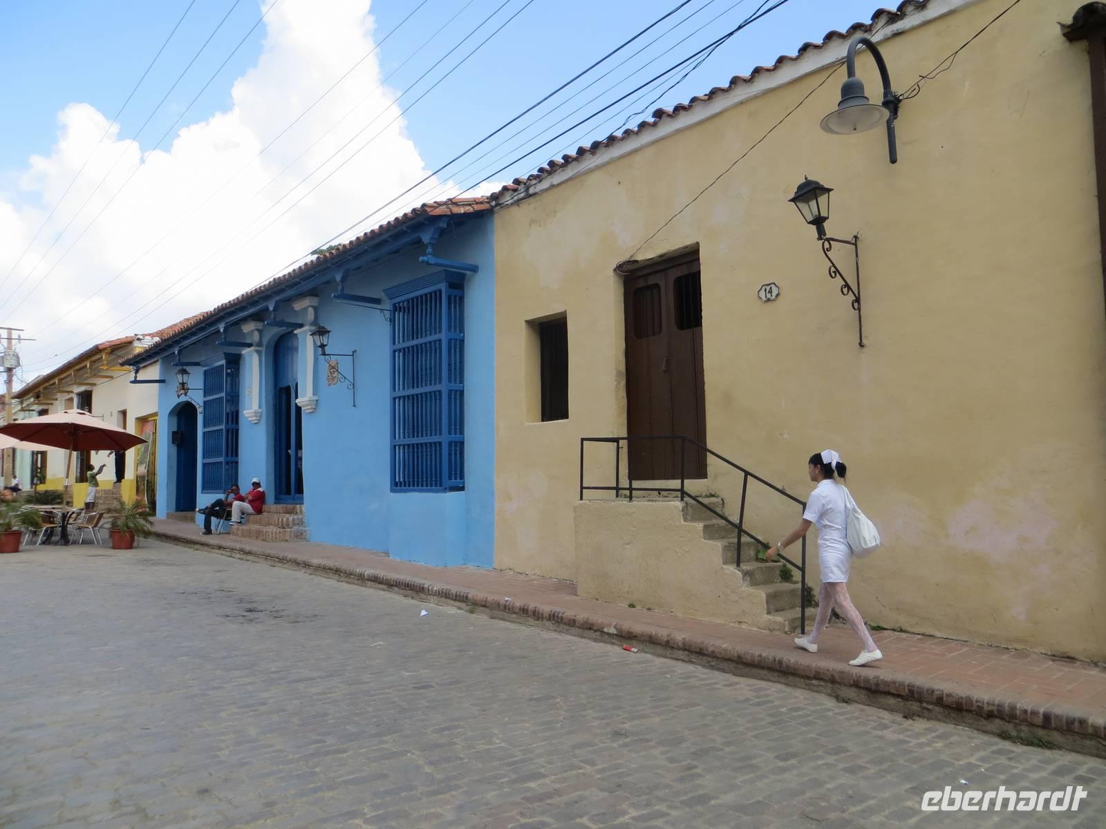 Nach der anstrengenden Wanderung wird uns ein sonniger und entspannter Tag versprochen. Die kleine hübsche Stadt Trinidad gilt als das koloniale Schmuckkästchen des Landes. Die UNESCO ist 1988 auf diese verschlafene Kleinstadt aufmerksam geworden und erklärte sie mit ihren einzigartigen Bauwerken zum Weltkulturerbe. Aufgrund von Goldfunde gründete der Spanier Diego Velázquez hier die dritte Villa (Kolonialstadt) in Kuba. Riesige Zuckerrohrplantagen, Sklavenhandel und Tabakanbau brachten großen Reichtum. Alien führt uns zu einem Lebensmittelladen und erklärt uns, wie das System mit den Lebensmittelkarten funktioniert. Durch die Gassen mit holprigen Kopfsteinpflastersteinen holpern wir vorbei an der Casa de la Trova, eines der ältesten aber auch lebendigsten Häuser Trinidads. Aus dem Haus schallen die Rhythmen von Kuba: Cha Cha Cha, Rumba, Salsa, etc. Rings um den Plaza Mayor erheben sich wunderschöne Herrenhäuser der großen Zuckerbaronen und die Kathedrale Iglesia Parroquial de la Santísima Trinidad. Die Kirche ist der Heiligen Dreifaltigkeit geweit. Einer Geschicht nach heißt es, soll man die Christusfigur Cristo de Veracruz drei Mal mit einem Schiff nach Mexiko geschickt haben. Doch sie errichte nie ihr Ziel. Jedes Mal nach Verlassen des Hafens von Casilda schlugen Stürme Schiff samt Besatzung und Christufigur zurück bis man es schließlich als Fingerzeig verstehen wollte, die Figur in Trinidad zu belassen. Nun hat sich Cristo schon richtig gemütich gemacht in der Kirche von Trinidad.