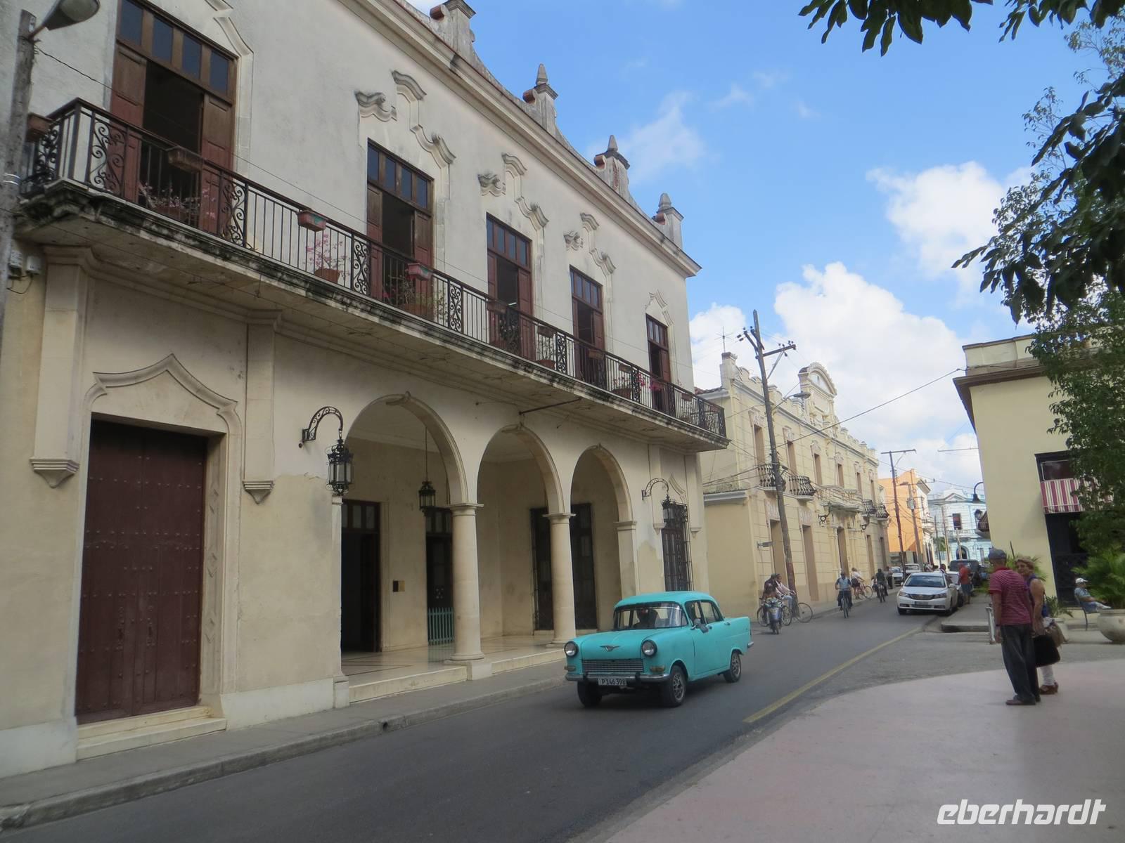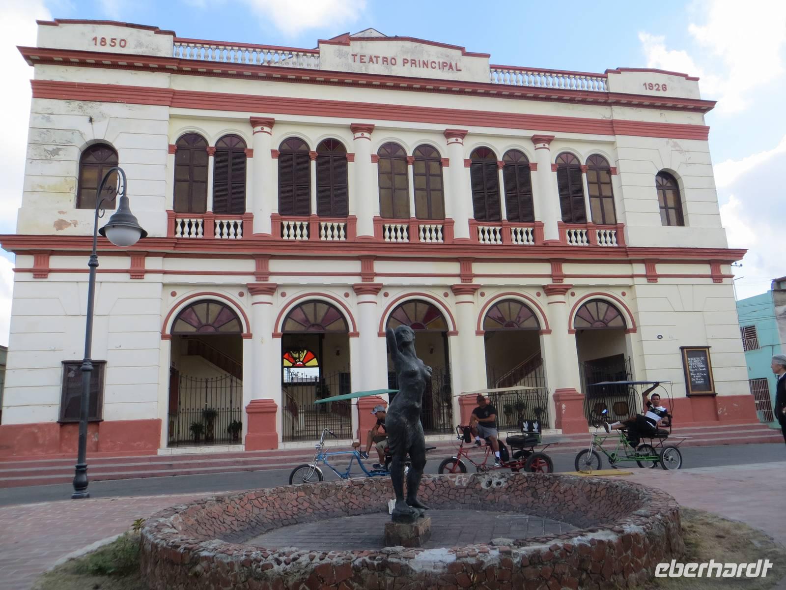 Heute geht es auf einem anderen Gefährt durch die Stadt. Vom Plaza de los Trabajadores lassen wir uns gemütlich auf Bici-Taxis durch Kubas zweitgrößte Altstadt in Camagüey fahren. Bei Tageslicht ist sie kaum wiederzuerkennen. Das Orientierungs- und Ausweichvermögen der Taxifahrer durch die verwinkelten Gassen ist mir dabei immer noch unbegreiflich. Aufgrund von zahlreichen Überfällen durch Piraten sind die Straßen zu einer Art Labyrinth gelegt worden. Wir legen drei Stopps an diesem Vormittag ein und verstehen jetzt auch, warum Camagüey als Stadt der meisten Kirchen auf Kuba bekannt ist. 2008 wurde sie in die Liste der UNESCO-Welterbestätten aufgenommen. Die Stadt ist ein wahres Paradies an Sehenswürdigkeiten und tollen Kolonialbauten. Erster Halt: Teatro Principal. Es wurde 1850 erbaut und ist mit 820 Plätzen bis heute das zweitgrößte Theater des Landes. Neben Theaterstücken können auch Balletaufführungen bestaunt werden und für Kinder sogar Zirkusvorstellungen. Vorbei am Plaza Maceo, der von einer Reiterstatue des Kriegshelden des Guerillakriegs gegen die Spanier (1868 - 1898) Antonio Maceo beherrscht wird, geht es durch karibisch bunte Straßen zum Plaza San Juan de Dios. Im ehemaligen Hospital ist das gleichnamige Museum untergebracht, welches die verschiedensten Funktionen des Hospitals darstellt: während der Unabhängigkeitskriege diente es als Militärkrankenhaus und während des großen Hurricans 1932 nutzte man es als Zuflucht für die Bewohner sowie als Ausbildungsanstalt für Lehrer. In den Innenhöfen sieht man oft riesige Tongefäße. Da die Stadt früher mit Wassermangel zu kämpfen hatte, wurden aus dem Ton der Sierra de Cubitas große Töpfe zum Aufbewahren von Regenwasser gefertigt (Tinajones) - heute dienen sie nur noch Dekorationszwecken.