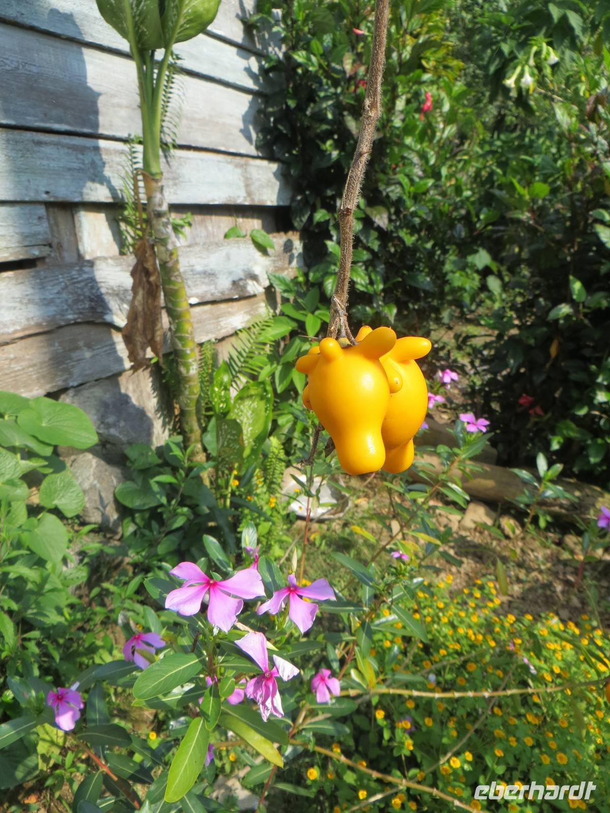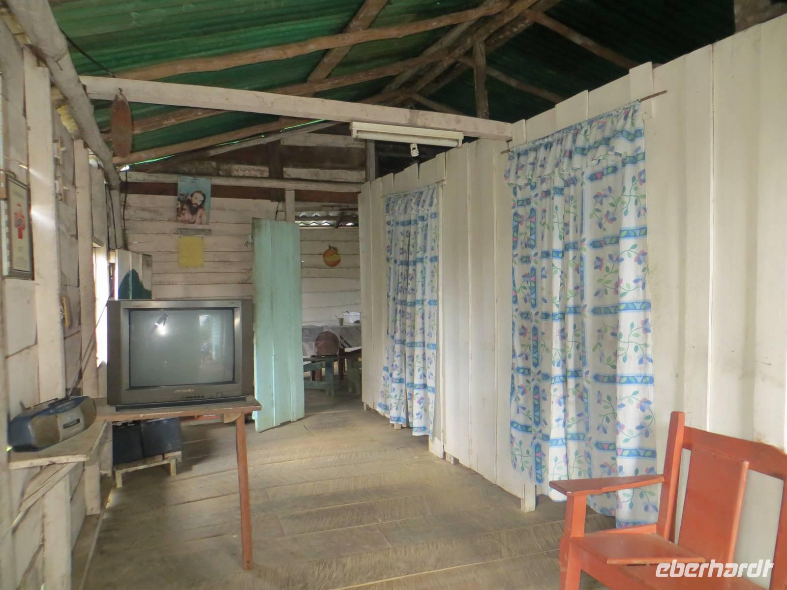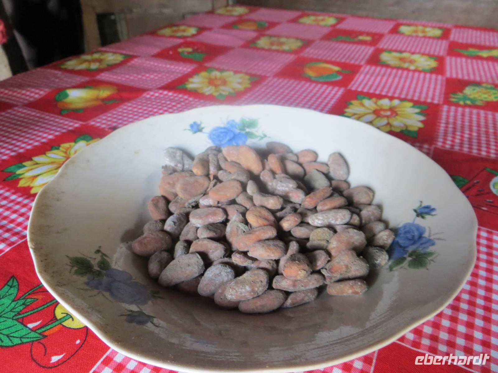 Nach dem Schwimmen beginnen unsere Magen an zu knurren und wir freuen uns auf das herzlich vorbereitete Abend-Buffet mit Gitarrenklängen und leisem Gesang. Es gibt frische, einheimische Speisen wie Maniok, Bohnen aber auch qualitativ hochwertiges Schweinefleisch direkt vom Grill und Schokoladenpudding (wir hoffen von dem echten selbsthergestellten Kakao, der hier angepflanzt wird). Guten Appetit!