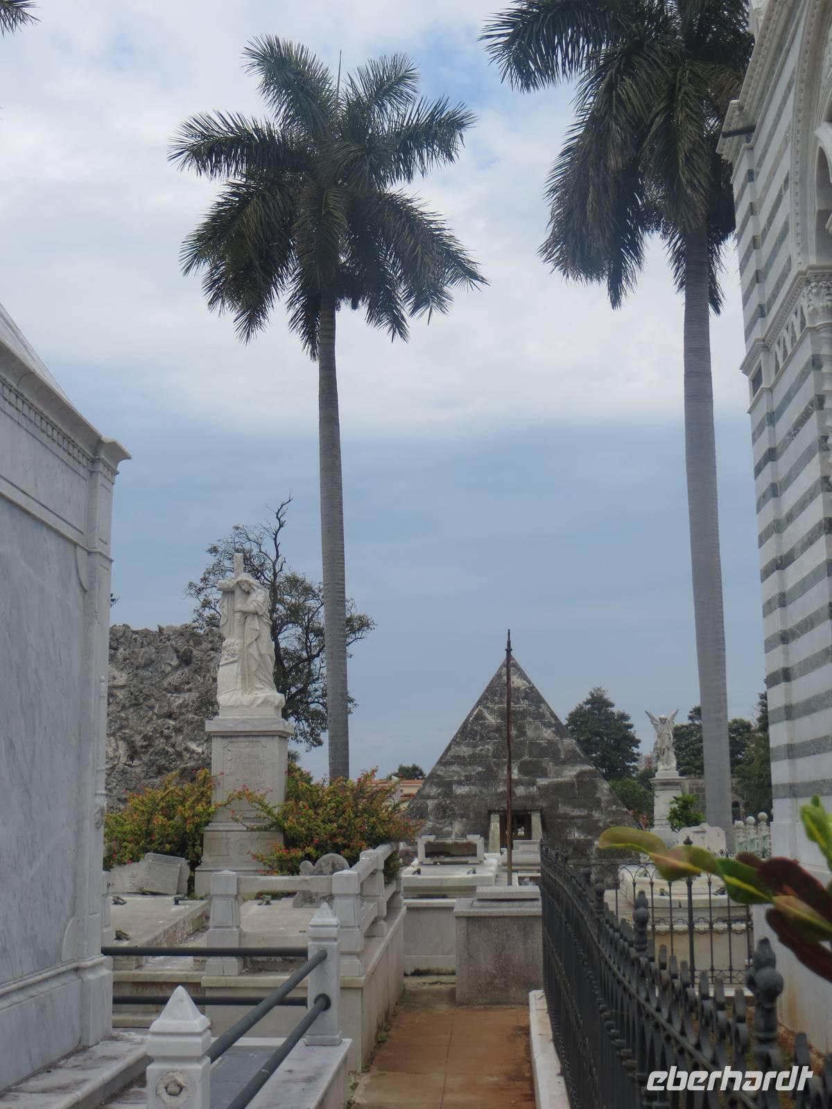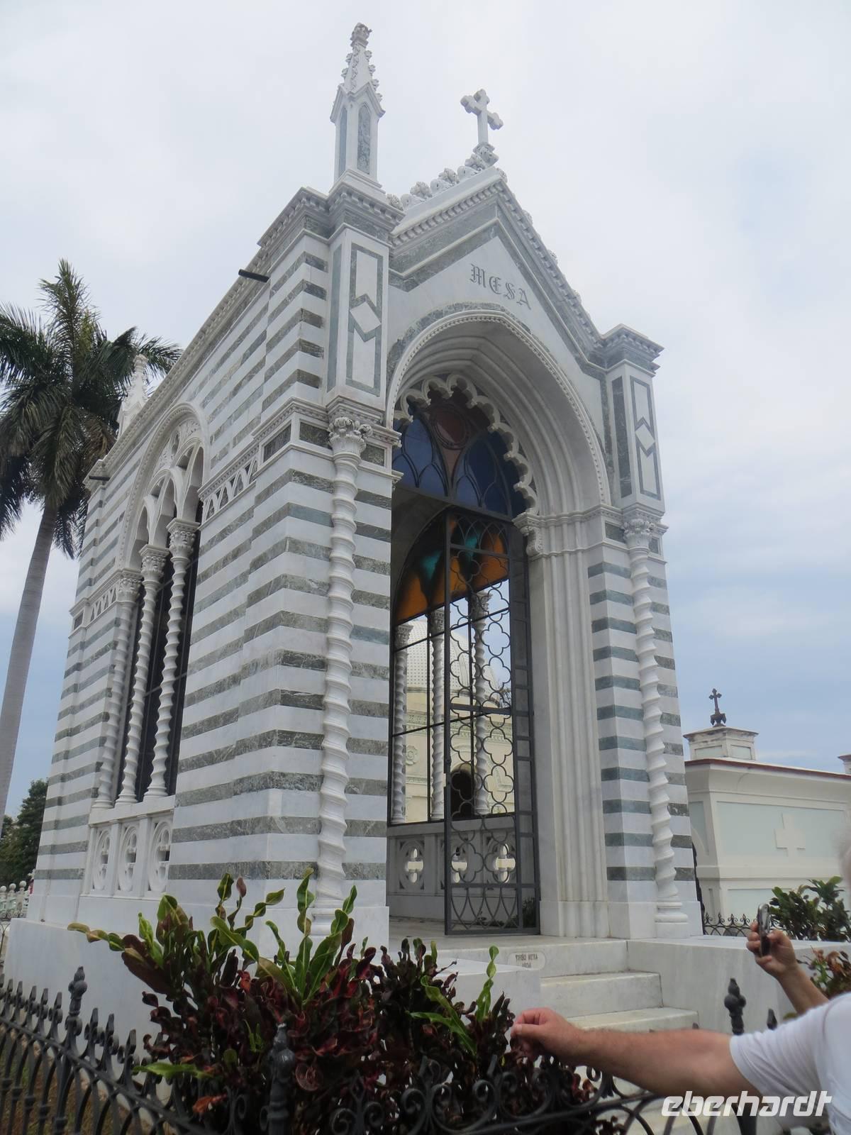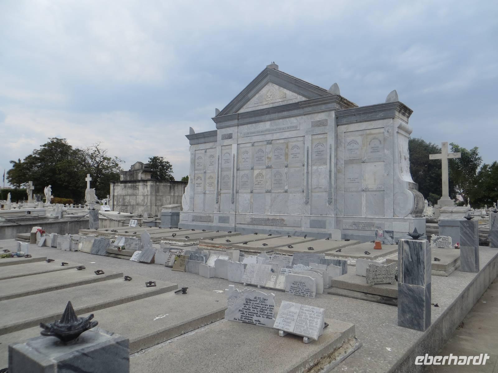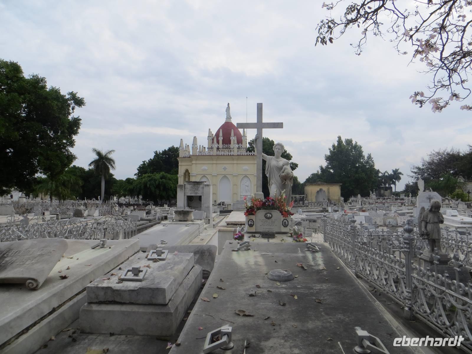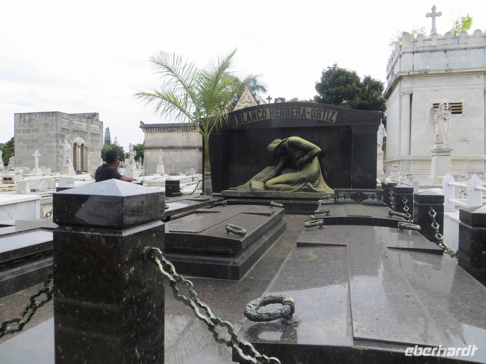 Havana - Buenos Dias! Ein weiteres Mal genießen wir das Frühstück auf der Dachterrasse des Plaza Hotels mit Blick über die Dächer Havannas. Anschließend freuen wir uns auf die Stadtrundfahrt, um die Hauptstadt intensiver kennenzulernen. In Kuba nimmt man das Leben gemütlich. Diese gemütliche Art lernen wir heute erneut kennen, denn die Uhr unseres Chauffeurs scheint eine halbe Stunde später zu gehen als unsere... Wir beginnen mit dem Besuch des Rum-Museums El Museo del Ron Havana Club, wo uns eine lokale Deutsch sprechende Mitarbeiterin durch das interessante Museum führt. Wir erhalten somit einen Blick hinter einer der berühmtesten Rumfabriken. Uns werden unter anderem der Herstellungsprozess erklärt, aber auch die unterschiedlichen Reifegrade und für welchen Cocktail das jeweilige Alter des Rums geeignet ist. Der anschauliche Rundgang endet mit einer Verkostung des siebenjährigen Rums Añejo 7 Años - mhhh, lecker! Gut gelaunt geht es weiter zum Plaza de la Revolución mit dem Memorial José Martí. Der Nationalheld lebte von 1853 bis 1895 und war auch bekannt als Schriftsteller sowie Vordenker der Unabhängigkeit Kubas. Von 1953 bis 1958 wurde ein Denkmal zu seinem Ehren während der zweiten Amtszeit des Diktators Fulgenico Batista errichtet. Wir bestaunen zudem das rieisege Konterfei von Che Guevara am Innenministerium und Camilo Cienfuegos am Ministerium für Kommunikation. Einige Blocks weiter durch das Botschaftsviertel erreichen wir den Cementerio de Colón, der Friedhof Kolumbus. Ein lokaler Mitarbeiter führt uns zu den schönsten Gräbern des riesigen Areals. Dieser Friedhof ist der erste Amerikas. Bereits 1806 wurde er gegründet, weil die Bevölkerung stieg und die Laichen aus hygienischen Gründen nicht mehr in den Kirchen beigesetzt werden konnten. Bald war dieser überfüllt und musste aus diesem einen größeren Bauen. 1871 wurde er von den Jesuiten gebaut und nach dem Amerikaentdecker Kolumbus benannt, da seine Gebeine zuerst hier gelegen haben soll. Mit fast 53.000 Monumenten ist der der größte historische Friedhof in ganz Latainamerika. Die meisten Monumente bestehen aus Mamor und Granit aus Deutschland (Köln), Schweden, Italien sowie Spanien. In Havanna gibt es zwar noch weitere 22 kleiner Friedhöfe, doch ca. 80% aller Beerdigungen finden hier statt. Durchschnittlich sind es bis zu 40 Begräbnisse pro Tag. Damals konnten nur die angesehensten Familien des Landes, meist spanische Barone, sich ein Grundstück zur Beisetzung der Familien für 25 Unzen pro Quadratmeter erkaufen. Nach dem Unabhängigkeitskrieg durften sowohl Weiße als auch Schwarze sowie Reiche und Arme hier begraben werden. Besonders berührt hat uns das Grab der Amelia Goyri, die Wundertäterin, die bei der Geburt ihres Kindes starb. Durch einige geschehene Wunder entwickelte sich dieses Grab zu einer Pilgerstätte. Werdende Mütter und Väter, sogar aus Deutschland, Italien, Kanada und aller Welt, kommen regelmäßig an ihr Grab um zu beten, dass sie ein gesundes Kind zeugen. Als Dank für den erfüllten Wunsch, hinterlassen Sie Blumenkränze und Dankestafeln.