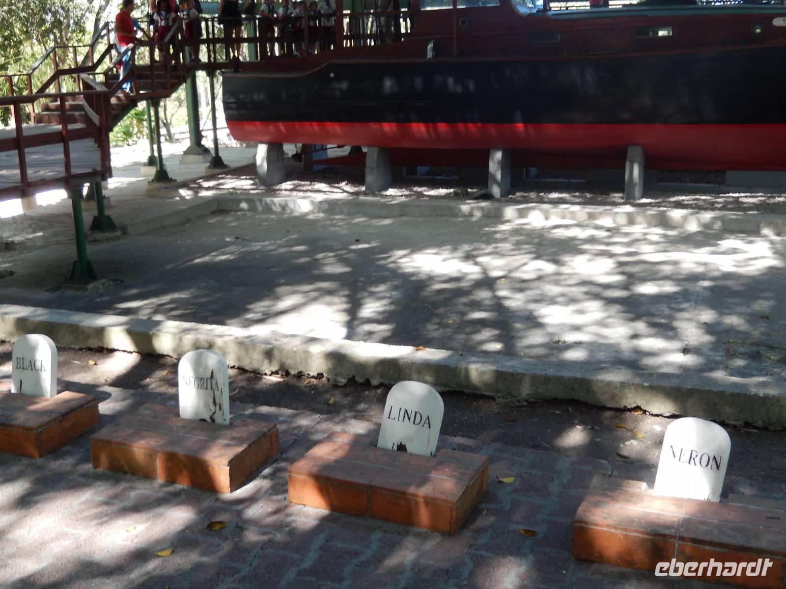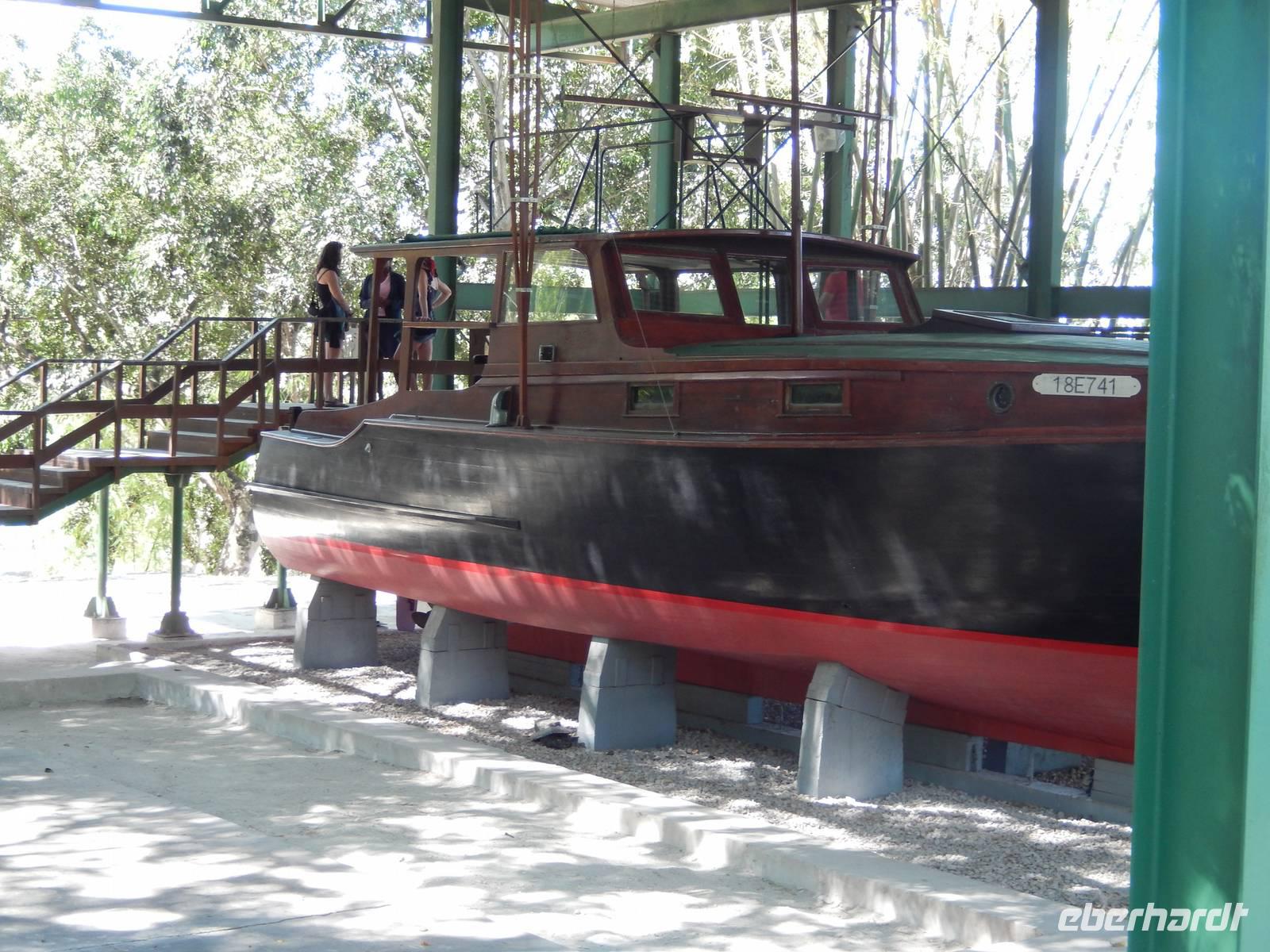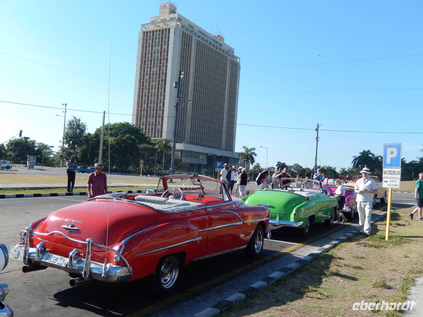 gelebt und gearbeitet hat. Im Garten befindet sich ein schöner Swimmingpool der leider leer war, die Gräber seiner vier Hunde und seine Yacht, die "El Pilar". Nach dem Rundgang gönnen sich die meisten Gäste noch einen leckeren Cocktail mit dazugehöriger Zuckerrohrstange oder einen Zuckerrohrsaft. Dann fahren wir zum Fischerdorf Cojímar, wo seinerzeit Hemingways Schiff lag. Zum Mittagessen im Restaurant "La Terraza", in dem auch Hemingway Stammgast war und welches zusammen mit der angrenzenden Bucht ihn zu dem Buch „Der alte Mann und das Meer" inspiriert hat werden wir mit einem blauen Begrüßungscocktail empfangen. Nach dem Essen zu Klängen kubanischer Musik schauen wir uns Denkmal und Festung zu Ehren Hemingways an. Nach der Rückfahrt nach Havanna steht unser Sinn nach Spannung und Abenteuer. Im Stadtcentrum besteigen wir vier coole Oldtimer und ließen uns durch Havanna und entlang der Uferstraße Malecon zum Hotel chauffieren.