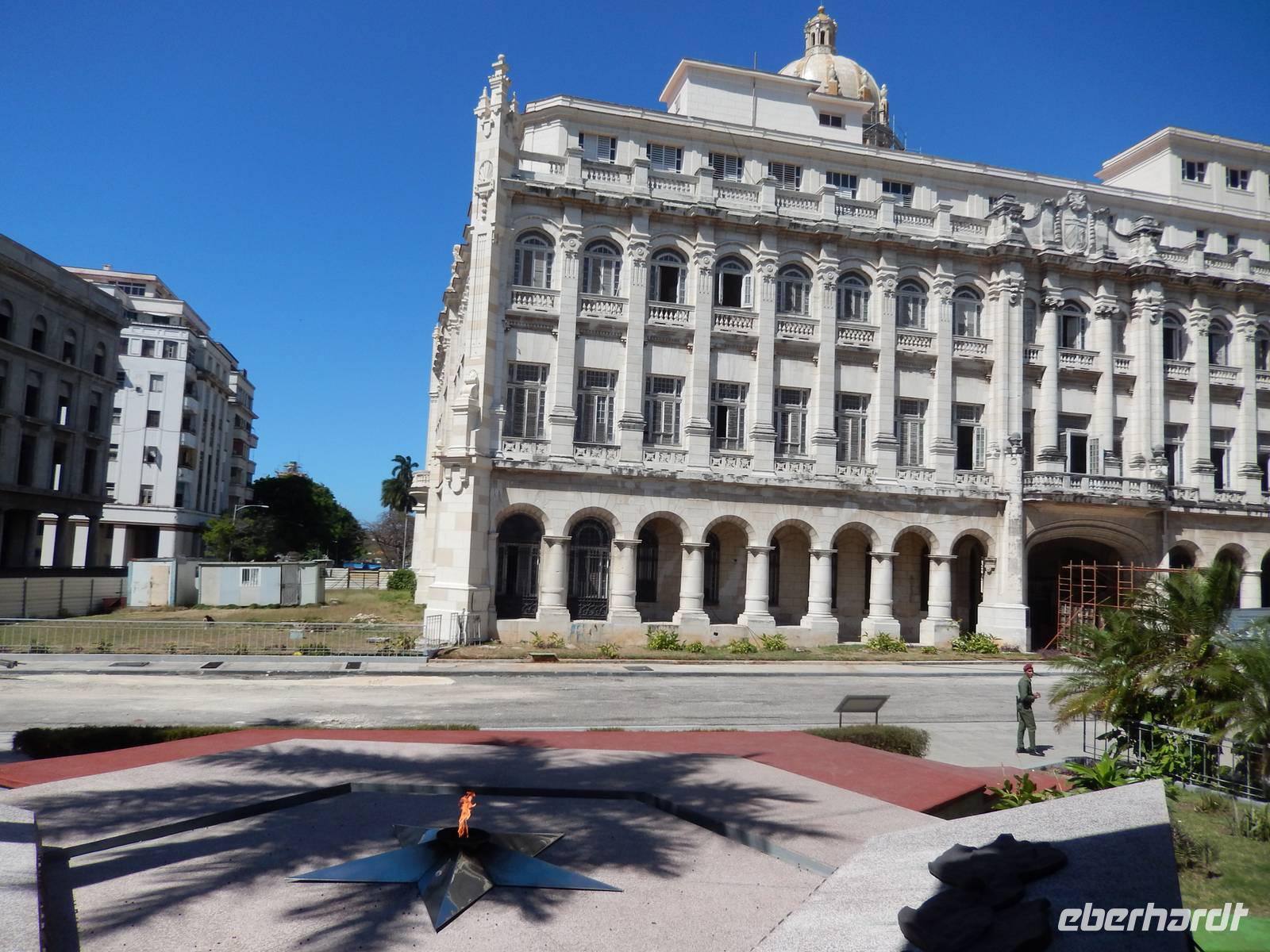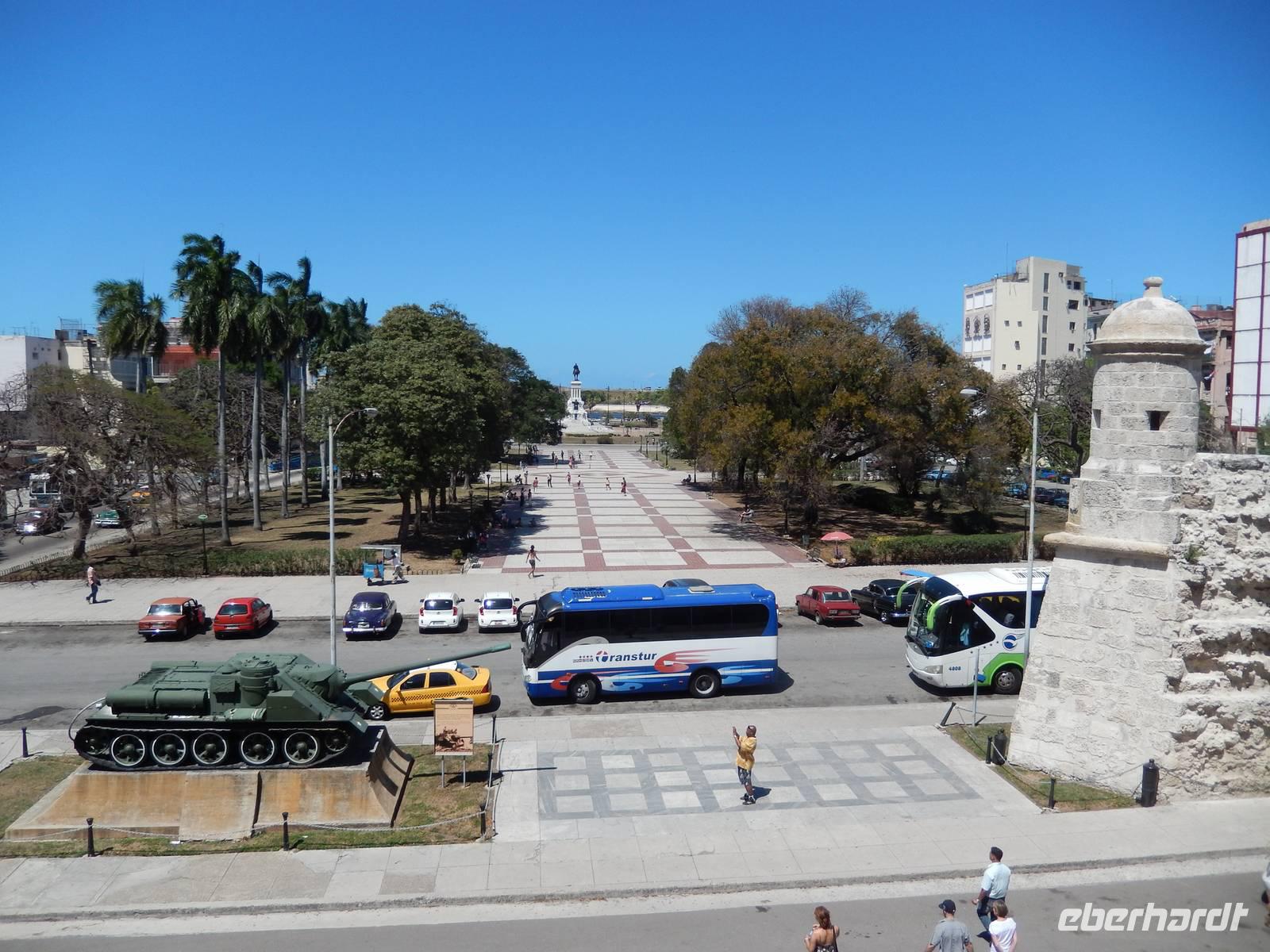 Unseren ersten Fotostopp legen wir am Plaza de la Revolución mit dem "Memorial José Martí" ein. José Martí lebte von 1853 bis 1895 und er war nicht nur kubanischer Nationalheld, sondern auch Schriftsteller und Vordenker der Unabhängigkeit Kubas. Von 1953 bis 1958 wurde ein Denkmal zu seinem Ehren während der zweiten Amtszeit des Diktators Fulgencio Batista errichtet.