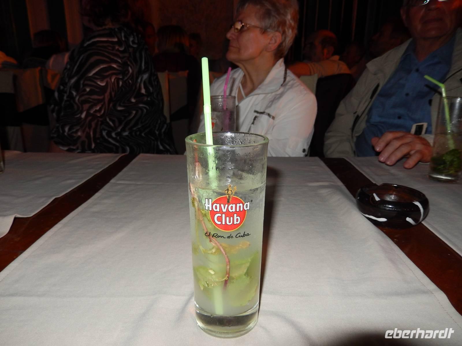 Um 19 Uhr holte uns Wladimir mit dem Bus ab und wir fahren zum Hafen von Havanna. Von dort Bummeln wir vorbei an der Cathedrale , welche wir schnell noch von innen besichtigen können, zum Abendesse in die Bar "La Bodeguita del Medio", wo Hemingway gern seinen Mojito getrunken hat, wir tranken natürlich auch einen. Ein ganz besonderes Erlebnis die Atmosphäre zum Essen, bei kubanischen Rhytmen. Danach erleben wir noch ein besonderes musikalisches Highlight - tolle Livemusik von Sängern & Sängerinnen des Buena Vista Social Clubs. Eigentlich ist dies der Titel eines Musikalbums, aufgenommen 1996 vom Gitarristen Ry Cooder aus den USA. Dabei handelte es sich um ein gemeinsames Projekt gesungener Lieder von Juan de Marcos González und Senioren kubanischer Musik der 40er und 50er Jahre.