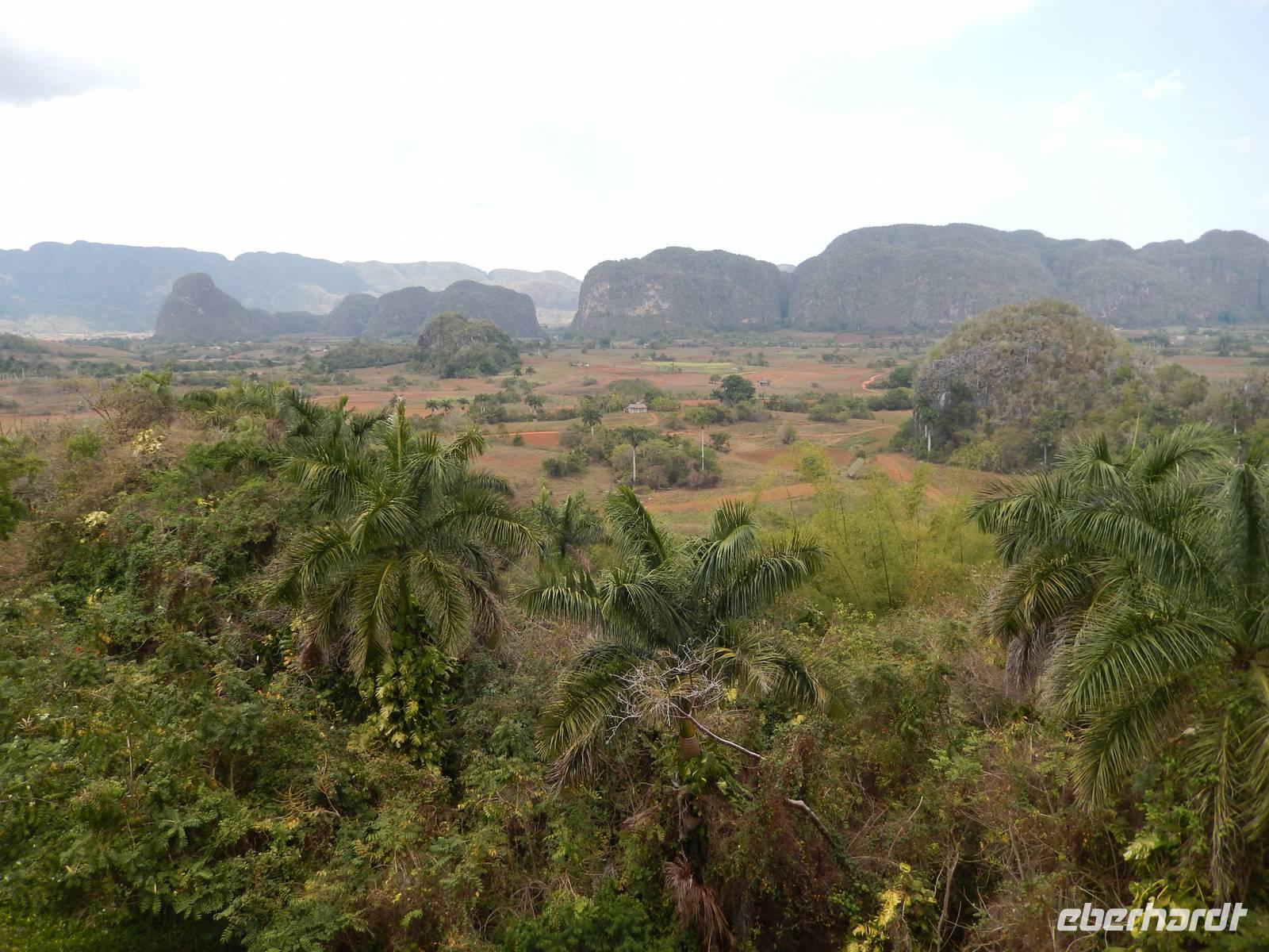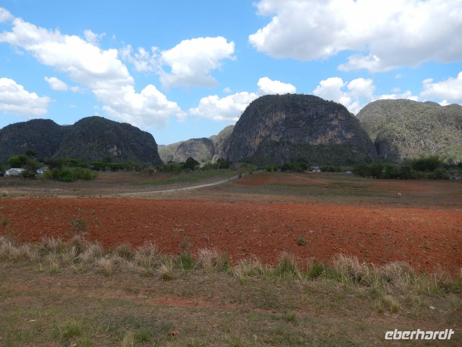 Heute haben wir eine längere Fahrt vor uns und starten bereits um 8 Uhr zum Valle de Viñales. Das rund zehn Kilometer lange und vier Kilometer breite Tal ist eine der schönsten kubanischen Landschaften. Es befindet sich im Orgelpfeifengebirge „Sierra de los Órganos" und im Jahre 1999 erhielt es von der UNESCO die Auszeichnung „Kulturlandschaft der Menschheit".