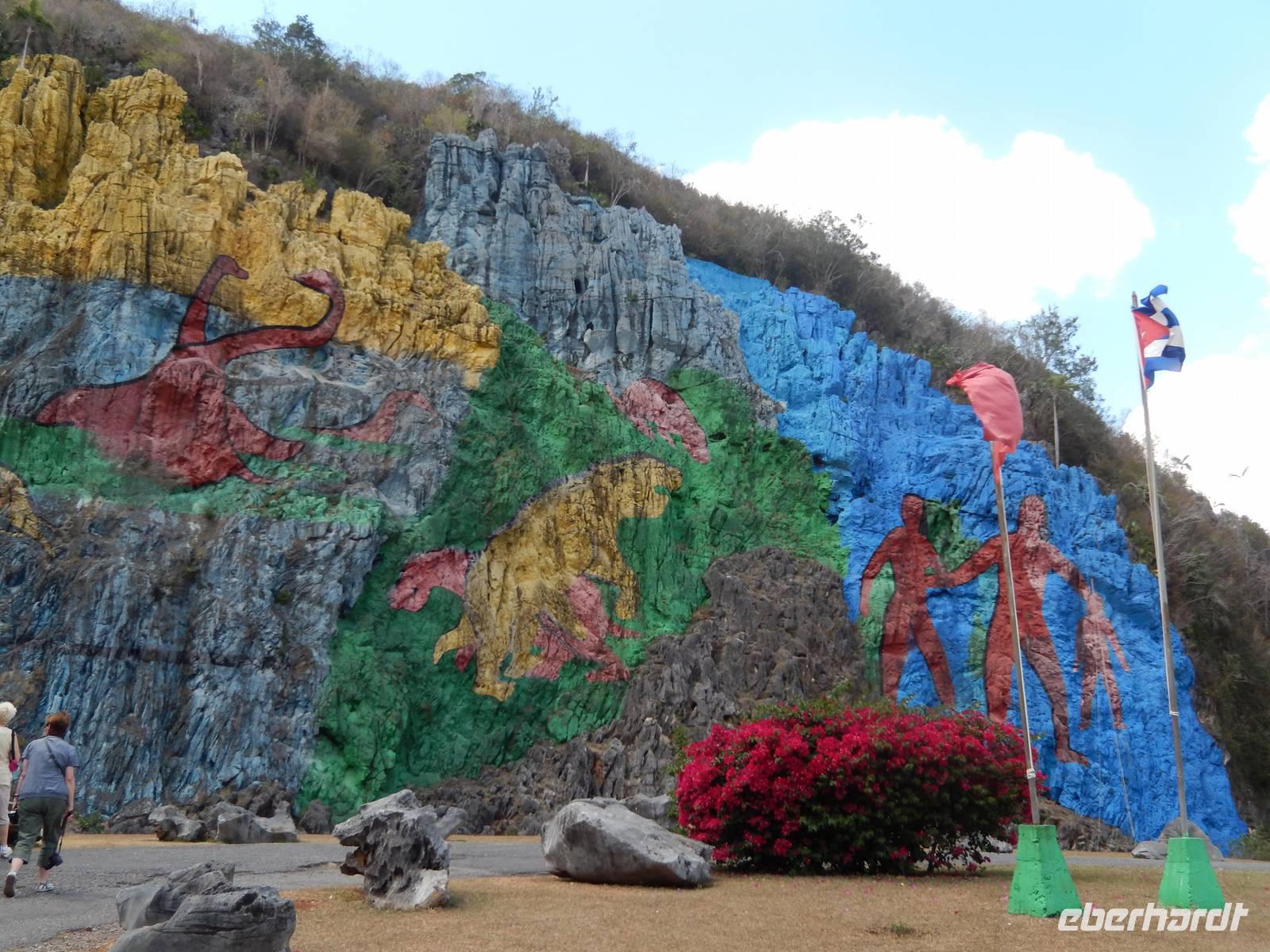 Wir fahren zur nördlich von Viñales, in der Provinz Pinar del Río, gelegenen Tropfsteinhöhle "Cueva del Indio". Diese besichtigen wir zu Fuß und bei einer kleinen Bootsfahrt von zehn Minuten durch die Höhle. Nächster Reiseprogrammpunkt ist die Felsmalerei "Mural de la Prehistoria", welche mit einer Höhe von 120 Metern und Breite von 180 Metern im Jahre 1961 vom mexikanischen Kunstmaler Leovigildo González Morillo auf einen Kalkfelsen geschaffen wurde. Die Farben dieses Kunstwerkes müssen regelmäßig aufgrund zahlreicher und heftiger Regenfälle aufgebessert werden. Danach fahren wir zu einer Bauernfamilie im Valle de Viñales, wo wir im Trocknungsstall "Casa Veguero" Erklärungen zum Tabakanbau erhalten und einem Tabakbauern beim Rollen einer Zigarre zuschauen. Im Anschluss geht es noch zum Aussichtspunkt am Hotel „Los Jazmines", wo wir einen tollen Panorama-Blick über das Valle de Viñales genießen. Mit viel Fantasie kann man sehen, dass die Gebirgsform wie drei liegende Elefanten ausschaut. Mit einem tollen Abendessen vom Buffet unseres Hotelrestaurants geht ein wunderschöner und erlebnisreicher Tag zu ende.