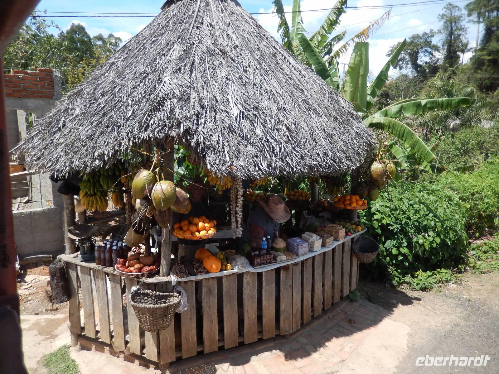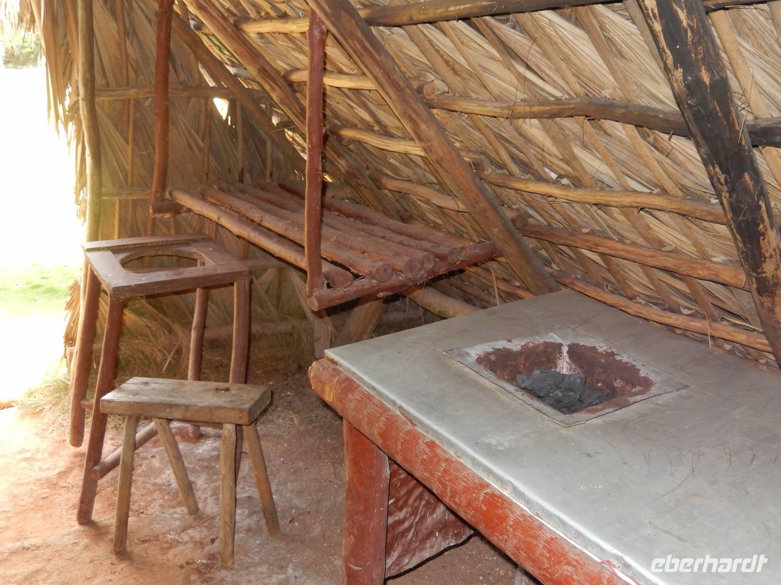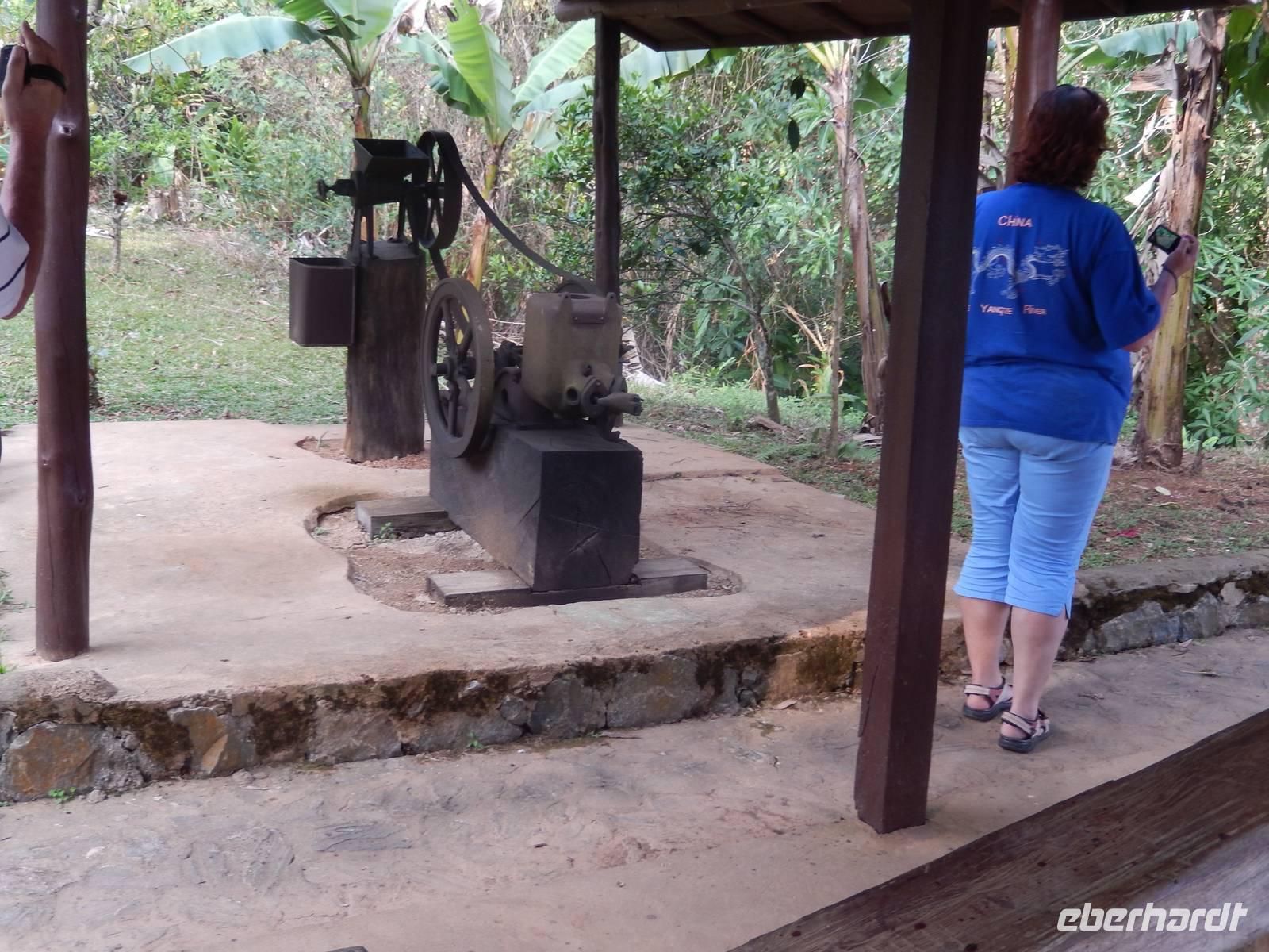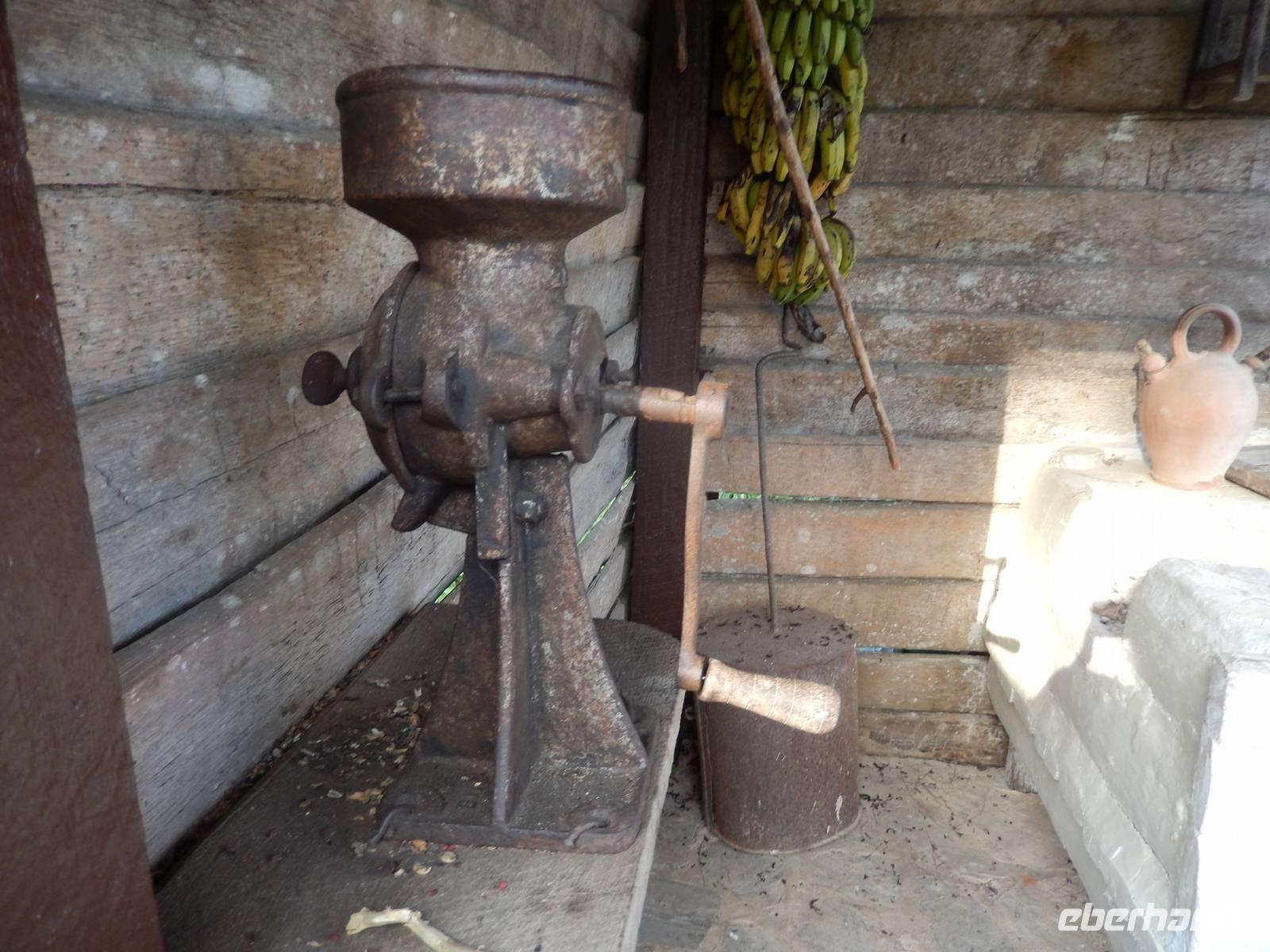 Im Anschluss fahren wir im LKW zum Kaffeemuseum "Casa Museo del Café", wo uns Eduardo zunächst an Exponaten im Außenbereich die traditionelle Verarbeitung und Zubereitung des Kaffees erklärt und dann uns auch durch das kleine Café mit historischen Gegenständen führt. Danach sitzen alle noch vor oder im Haus und genießen einen starken sehr guten Kaffee.