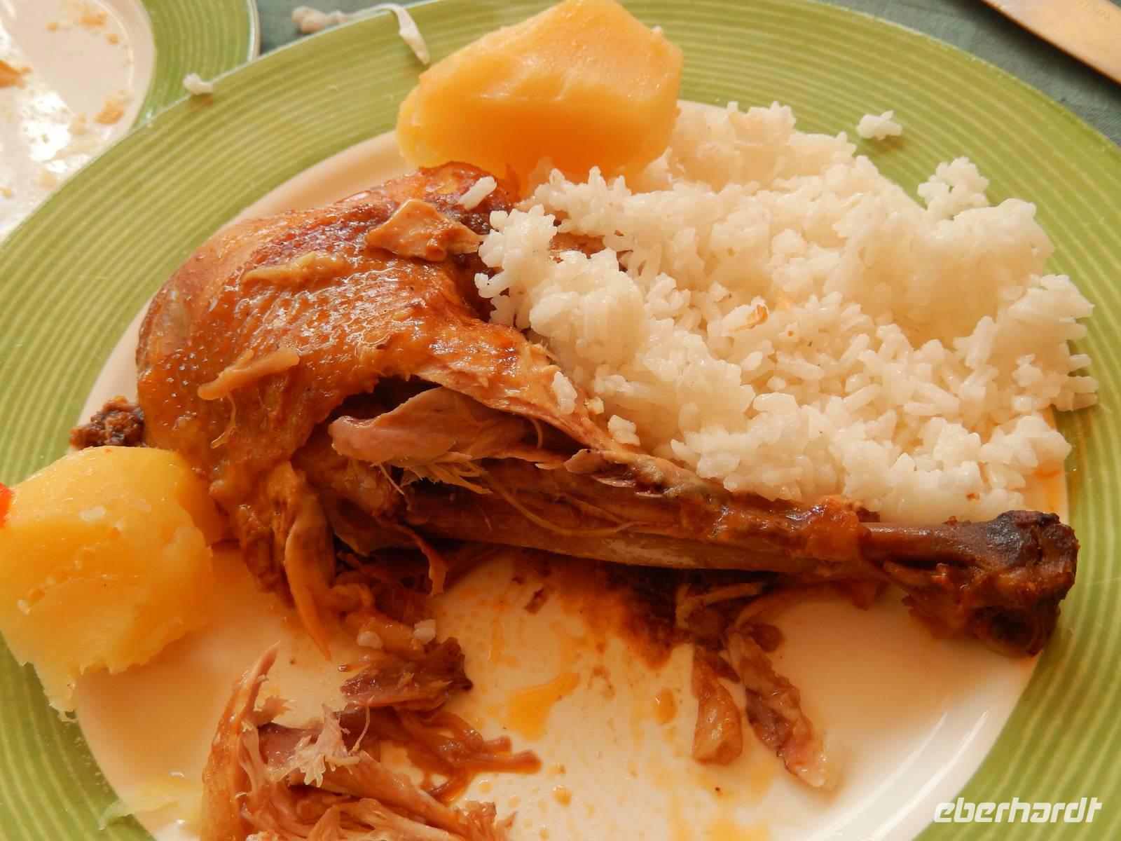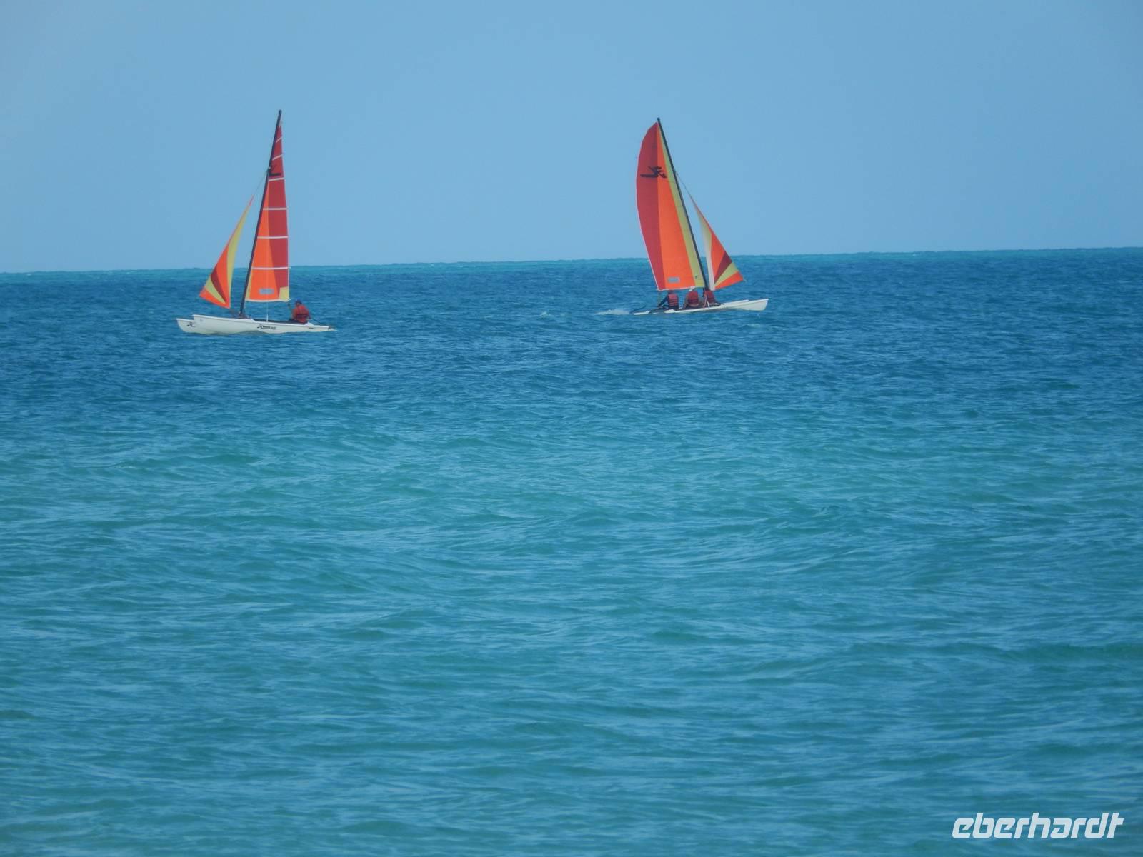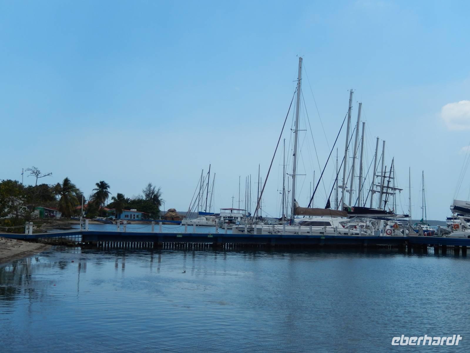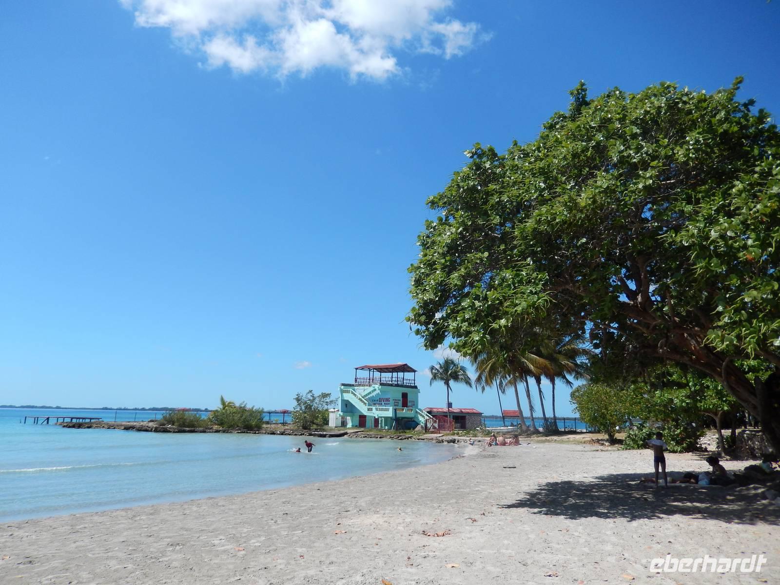 Ein weiterer spannender Tag auf der karibischen Insel erwartet uns. Wir fahren bereits um 08.00 Uhr zum kleinen Hafen am Strand Playa Ancón von Trinidad, um pünktlich mit dem Katamaran zur Insel Cayo Blanco zu starten. Das Wetter meint es heute besonders gut mit uns, wir haben großartigen Sonnenschein und es ist sehr warm! Mit uns reisen noch 40 Gäste verschiedener Nationen, vorrangig aber Kanadier. Das Mittagessen nehmen wir auf der Insel ein, es gibt Paella mit Meeresfrüchten oder ersatzweise Hühnchen. Alkoholfreie und auch alkoholische Getränke wie Cocktails und Bier sind bereits ausreichend an Bord zu bekommen, natürlich alles im Preis inbegriffen. Gegen 10.45 Uhr erreichen wir die Insel Cayo Blanco. Wer nicht schnorcheln möchte, kann nun schon an Land gehen und sich am Strand entspannen, die anderen Gäste fahren weiter zum Riff. Zunächst gibt es eine Belehrung durch den Kapitän und danach erfolgt die Ausgabe von Schnorchel-Brillen und Schwimmflossen. Es ist wirklich ein toller Spaß und wir sind begeistert. Rund eine Stunde später fahren wir zurück zur Insel und wir essen leckere Paella, Hühnchen, Salat und Obst. Wir können hinter der Bar sogar eine Krabbenwanderung beobachten, das sieht schon sehr witzig und spannend aus. Dann erholen wir uns am Strand und schwimmen im Wasser. Am Nachmittag fahren wir mit dem Boot zum Hafen zurück und wo wir von unserem Busfahrer Wladimir und Jran bereits erwartet werden.