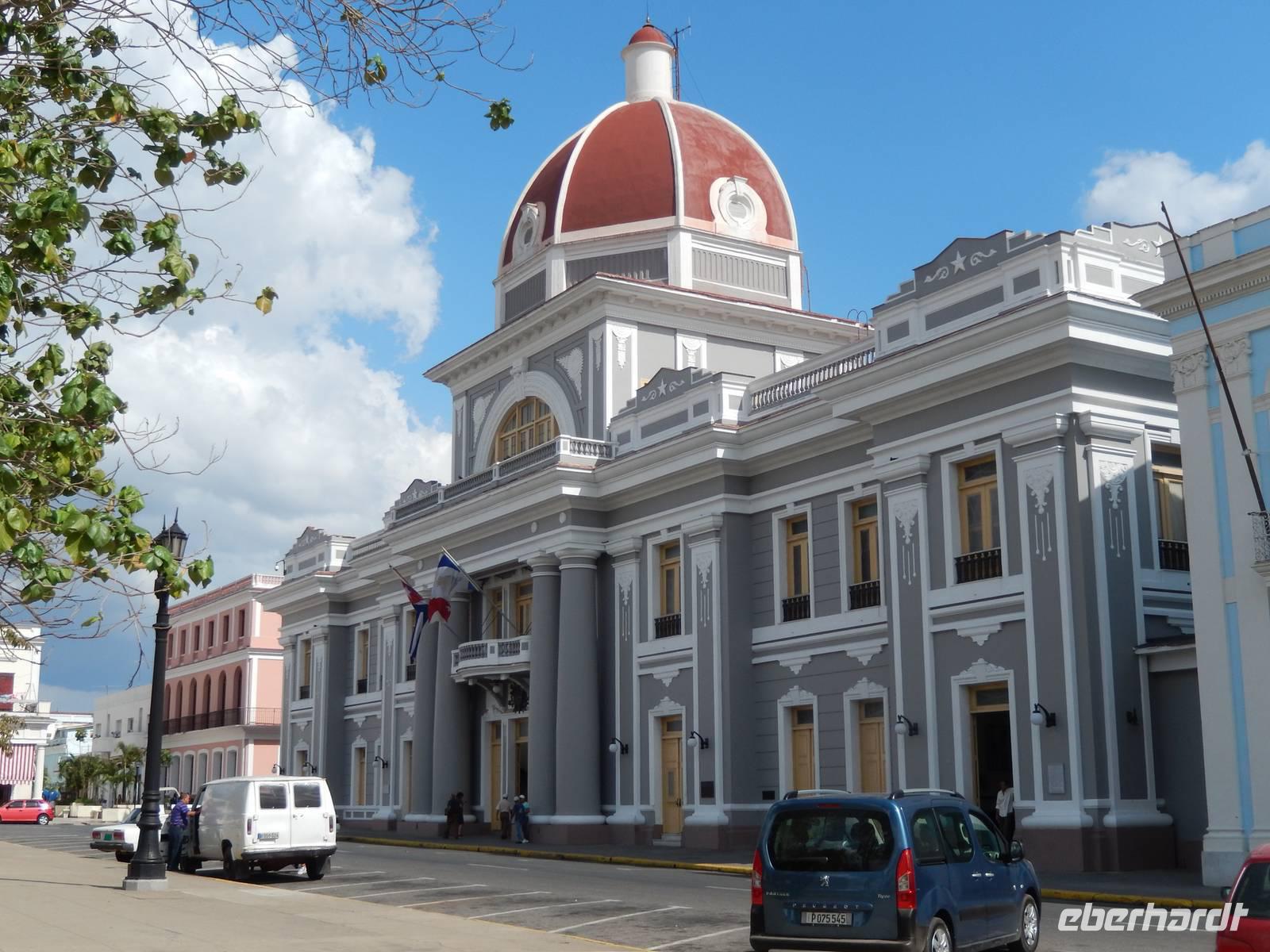 Heute führt uns die Reise weiter nach Cienfuegos. Iran bot uns an, statt der langweiligen Staatsstraße besser entlang der Küste, zur berühmten Schweinebucht zu fahren. Was wir natürlich begeistert annahmen. Nach einem Besuch in einem einheimischen Tierpark mit Leguanen, Krokodilen und anderen einheimischen Tieren, standen wir am Strand der Schweinebucht. Im ehemaligen Yacht Club Cienfuegos der High Society, verbringen wir unsere Mittagspause. Es gibt ein einfaches Buffet mit guter Auswahl, es ist für Jeden etwas dabei! Nach dem Essen geht es weiter ins Zentrum mit Rundgang durch die Fußgängerzone, den Boulevard der Stadt bis in den Parque Martí. Wir besichtigen auch das berühmte Teatro Tomás Terry, nehmen im Theater Platz und lassen die interessante Architektur auf uns wirken. Die freie Zeit im Anschluss nutzen wir, um uns auf dem Plaza mit der Casa de Bienes Culturales und der Catedral de la Purísima umzuschauen. Am frühen Nachmittag fahren wir zum 4-Sterne-Hotel "Jagua" in Punta Gorda, wo wir eine Nacht schlafen werden. Direkt in der Nähe, nur eine Gehminute von unserem Hotel entfernt befindet sich das Palacio de Valle, welches wir besichtigen können und man von der Außenplattform über ganz Cienfuegos blicken kann. Am Abend besucht ein Teil unserer Gruppe die traumhaft schöne Ballett-Aufführung „Giselle" im Teatro. Künstlerische Direktorin ist die ehemalige kubanische Primaballerina Alicia Alfonso, heute 93 Jahre alt. Ihre Anwesenheit an diesem Abend, war eine tolle Überraschung.