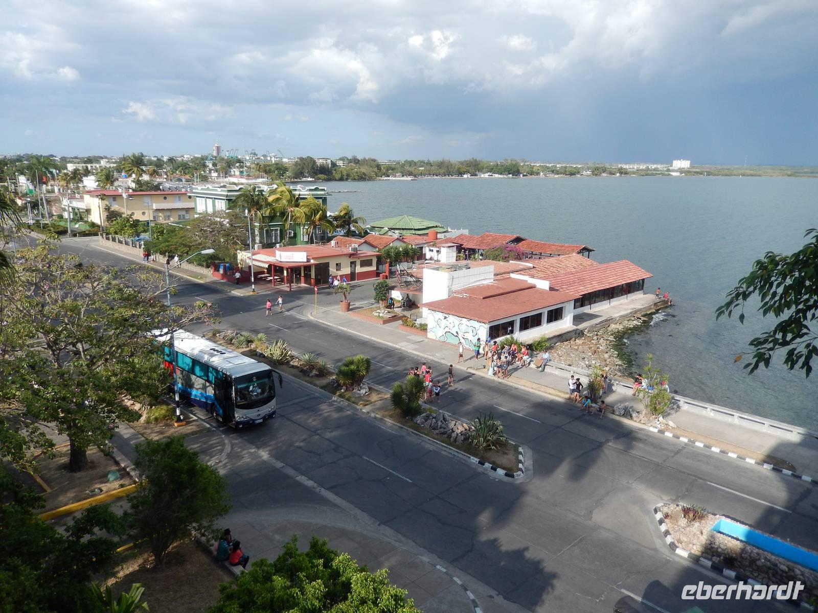 der Cayo Santa Maria mit dem Festland verbindet. Diesem kleinen Ort wollen wir natürlich auch noch einen Besuch abstatten. Wir besichtigen die Kirche des Ortes mit der im 6.Monat schwangeren Jungfrau Maria und spazierten über den belebten Hauptplatz mit einem kleinen Markt. Weiter ging es nach Cayo Santa María - eine Insel, welche über einen 50 Kilometer vom Meer umgebenen Damm zu erreichen ist.