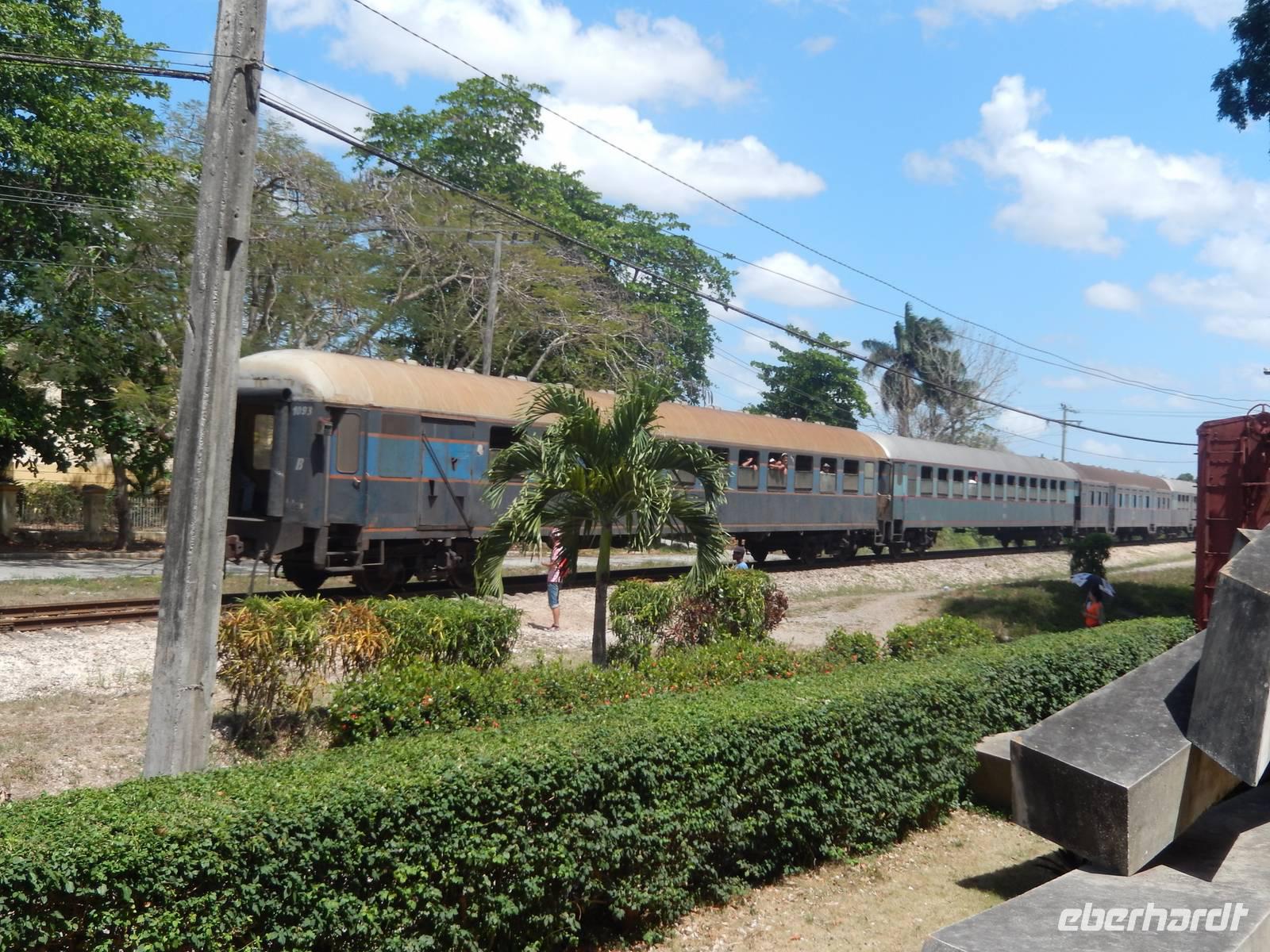 Kaum zu glauben, aber wir sind schon seit neun Tagen auf dieser wunderschönen Insel unterwegs und haben bereits viele Highlights erlebt. Heute fahren wir über Santa Clara nach Cayo Santa María, wo wir zwei traumhafte Tage mit All-Inklusive-Badeaufenthalt verbringen werden. Am frühen Vormittag erreichen wir Santa Clara, um das Memorial und Museum von Che Guevara auf dem Revolutionsplatz zu besuchen. Sein richtiger Name lautet Ernesto Rafael Guevara de la Serna und von 1956 bis 1959 spielte er als Kommandant der Rebellenarmee bei der Kubanischen Revolution eine bedeutende Führungsrolle. Der Argentinier Che Guervara wird noch bis heute als Volksheld in Kuba geschätzt und ist neben Fidel Castro einer der bedeutendsten kubanischen Leitfiguren. Im Jahre 1967 wurde er von der Regierung Boliviens gefangen und nur kurze Zeit später erschossen. Der 1926 geborene Fidel Alejandro Castro Ruz ist ebenfalls kubanischer Revolutionär und Politiker, welcher zusammen mit Che Guervara treibende Kraft der kubanischen Revolution und mit insgesamt 49 Jahren längster regierender Herrscher in Kuba war. Seine politischen Ämter hatte er nach schwerer Erkrankung 2006 vorübergehend abgegeben, zwei Jahre später gab er seinen endgültigen Rücktritt bekannt. In Museum und Mausoleum sind keine Taschen oder Kameras erlaubt, auch das Reden im Memorial ist streng verboten! Revolutionsandenken und die Lebensgeschichte Che Guevaras sind im Museum erkennbar. Dann fahren wir nur wenige Minuten weiter, um das Sitio-Museo "Acción contra el Tren Blindado" zu besichtigen und anschließend geht es auch schon zum Mittagessen ins Restaurant "El Palmas" in einer Hotelanlage von Santa Clara gelegen. Es gibt ein sehr leckeres Buffet mit riesiger Auswahl und vielen köstlichen warmen und kalten Speisen, sogar frisch aufgeschnittenes Obst und tolle Süßspeisen.