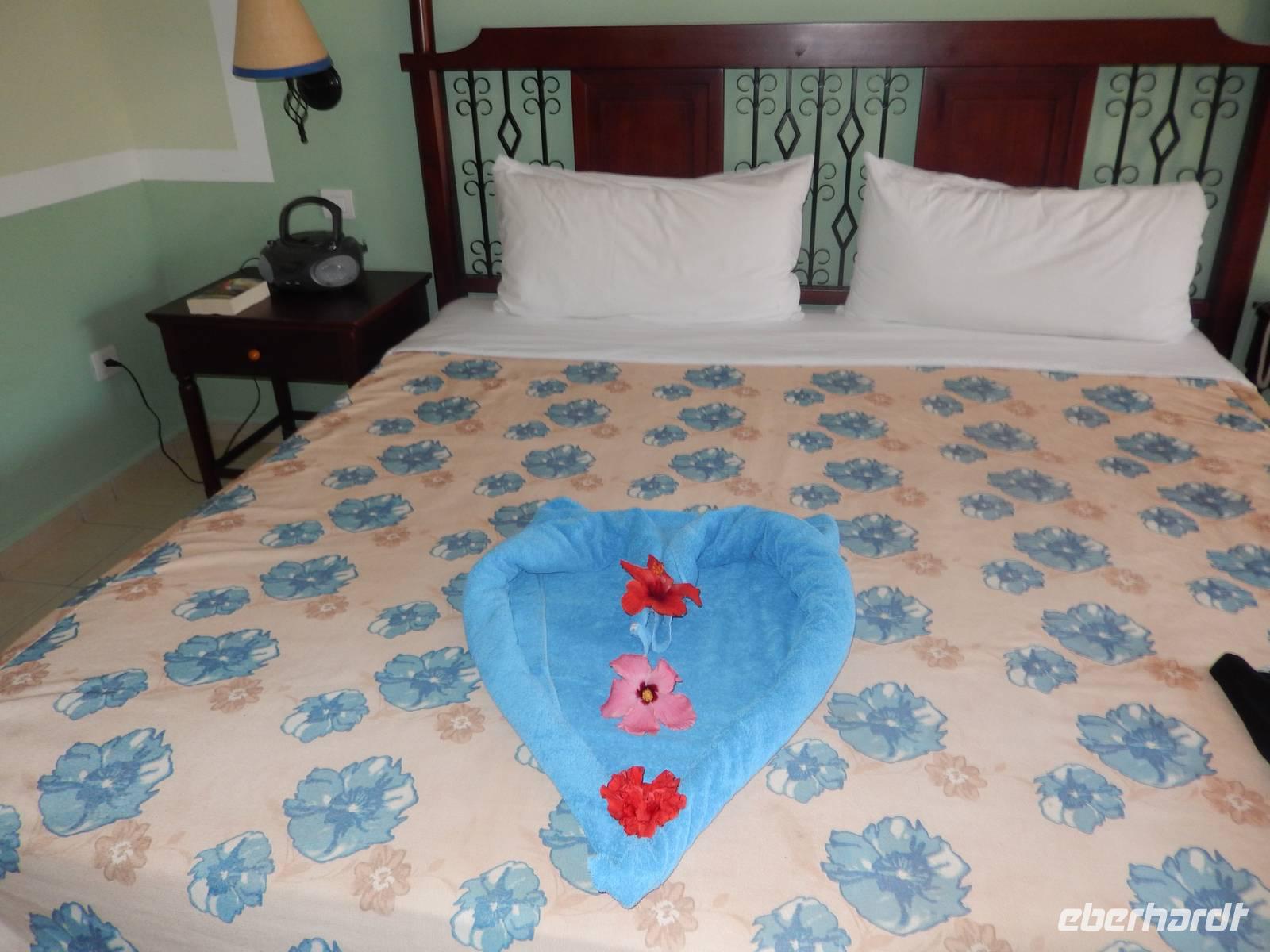 Am Hotel angekommen müssen wir uns leider von unserem lieben Busfahrer Wladimir verabschieden, der zurück nach Havanna muß Der Check-In im 4-Sterne-Hotel "Memories Paraiso Azul" in Cayo Santa María verläuft relativ reibungslos und zur Begrüßung erhalten wir einen Begrüßungscocktail. Dann werden wir in einer Art Golf Caddy zu unserem Bungalow 59 chauffiert. Wir verabreden uns 18.30 Uhr vor der Zimmertür der Reisebegleitung, um gemeinsam zum Abendessen im Buffet-Restaurant zu gehen.