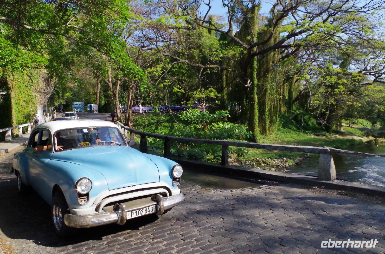 Wenig später kam dann der Bus. Der Reiseleiter, welcher uns heute den ganzen Tag begleiten sollte, erklärte mir, dass er noch etwas Wichtiges vor hätte und uns nach 30 Minuten wieder verlassen würde. Aber das war alles kein Problem. Der Busfahrer kannte die Strecke und zeigte uns zum Mittag ein kleines Restaurant, in dem es leckere Sandwiches und etwas zum Trinken gab. Die Zeit verging wie im Flug und so waren wir gegen Nachmittag in unserem Hotel in Havanna. Am Abend ging es heute zur Tropicana Show und schon das Freilufttheater an sich war unglaublich. Das 1939 eröffnete Theater kann 1.700 Personen fassen und sieht durch seine riesigen Bäume und die zwei Bühnen einfach spektakulär aus. Am Eingang bekamen die Damen eine Blume und die Herren eine Zigarre geschenkt und im Laufe des Abends gesellte sich auf unseren Tisch ein Glas Sekt, eine Flasche Rum und eine Büchse Cola. Die Show war eindrucksvoll und leider viel zu schnell vorbei. Nach der Vorstellung hätten wir gern auch noch selber das Tanzbein geschwungen und den anderen Leute gezeigt, was wir so alles drauf haben, aber leider wartete der Bus auf uns.