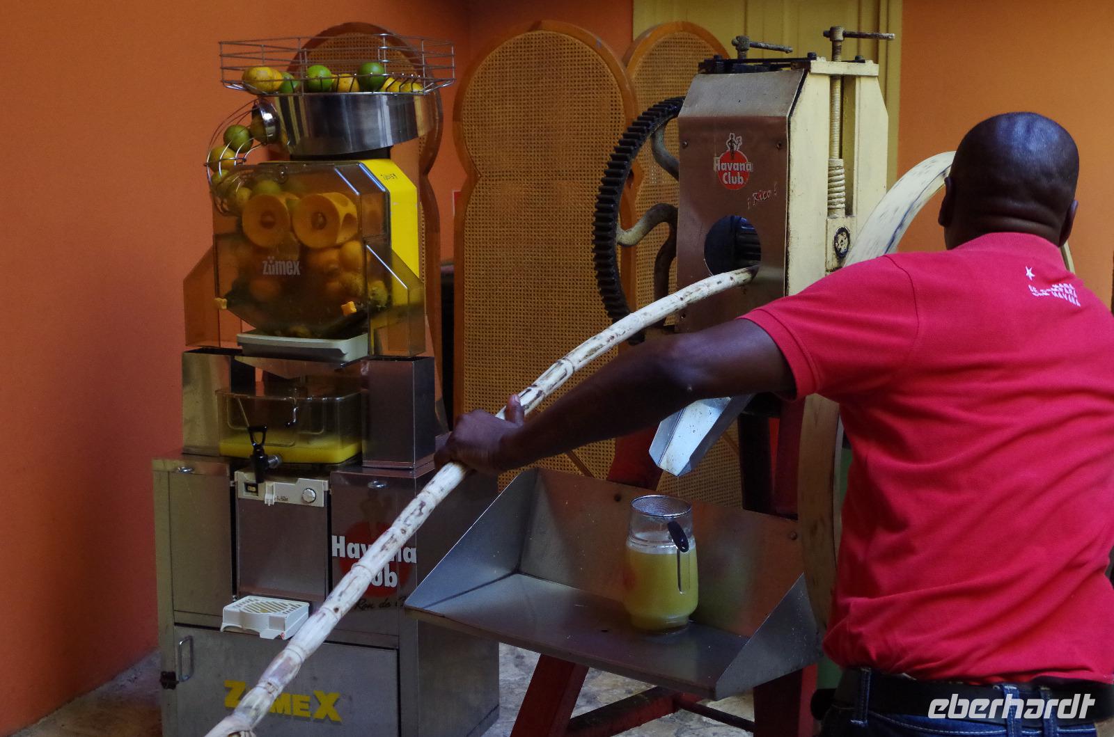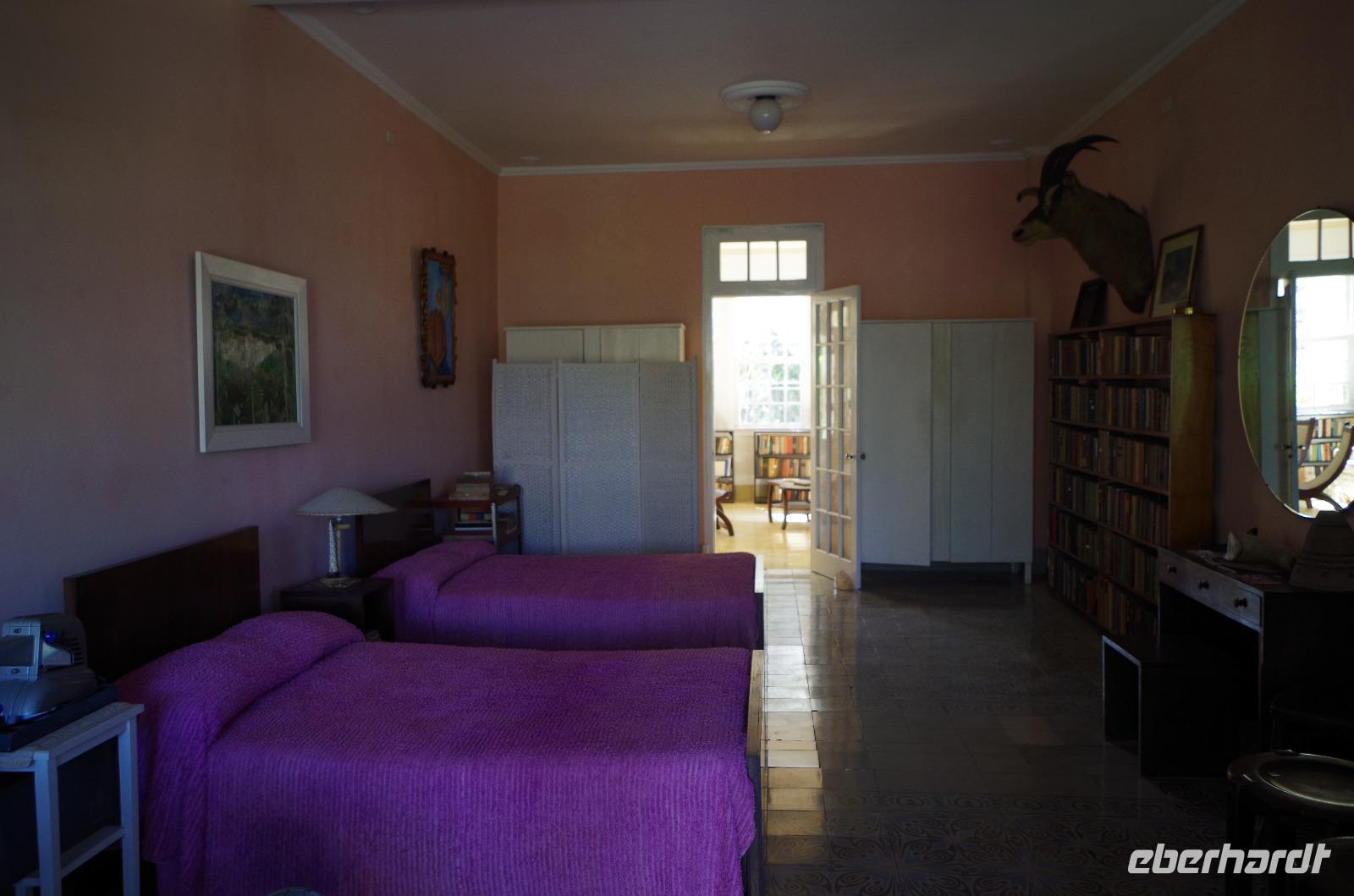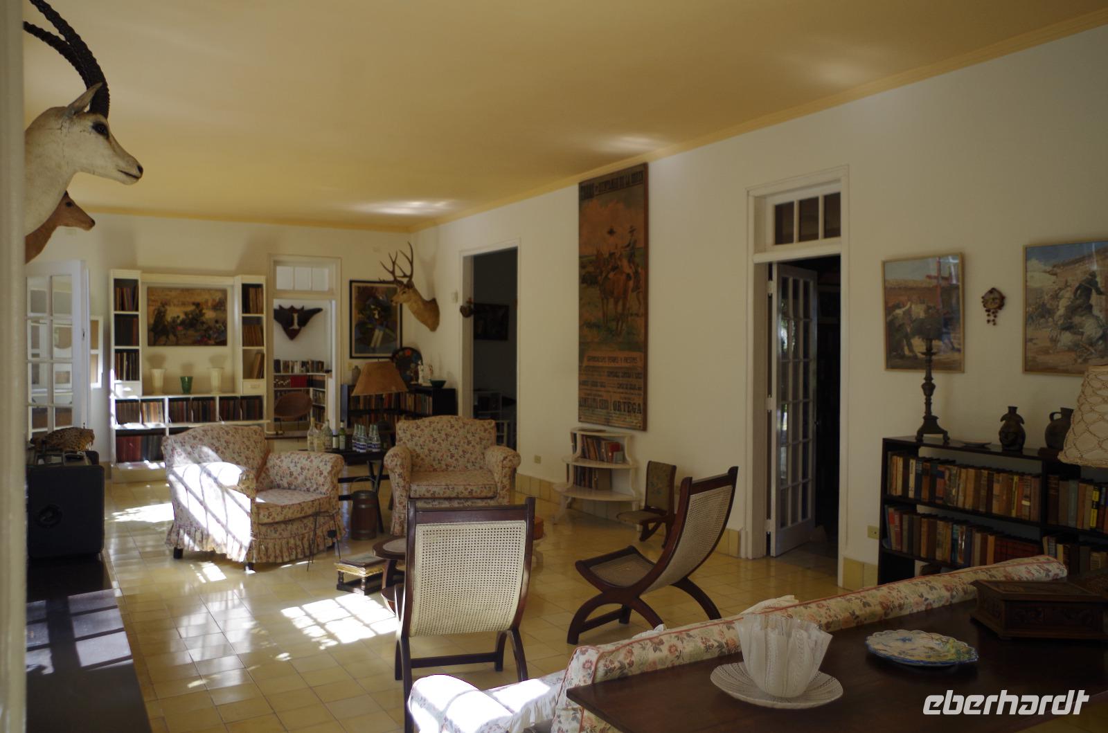 Zuerst fuhren wir am Malecon entlang bis zum Fischerdorf Cojimar. Dieser Ort inspirierte Hemingway zu seinem berühmten Buch. Wir machten hier einen kleinen Stopp und schlenderten durch das Dörfchen, ehe wir wieder in den Bus einstiegen und uns auf den Weg in Richtung Finca La Vigia machten. Hier wohnte der Autor mit seiner Frau und seinen unzähligen Katzen und Hunden. Sie ließ für ihn sogar einen Turm zum Schreiben errichten, aber er bevorzugte das Schreiben lieber barfuß und im Stehen in seinem Haus. Daher überließ er den Katzen den Turm. Nach der Besichtigung des Geländes konnten wir den Männern, wie gestern im Rum Museum schon, beim Pressen des Zuckerrohres zuschauen und anschließend das Getränk verköstigen. Wer wollte, natürlich auch mit Vitamin R.