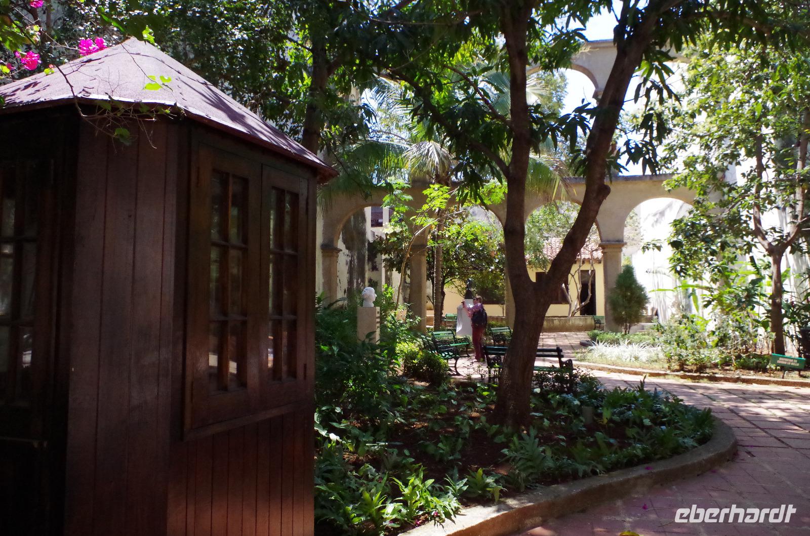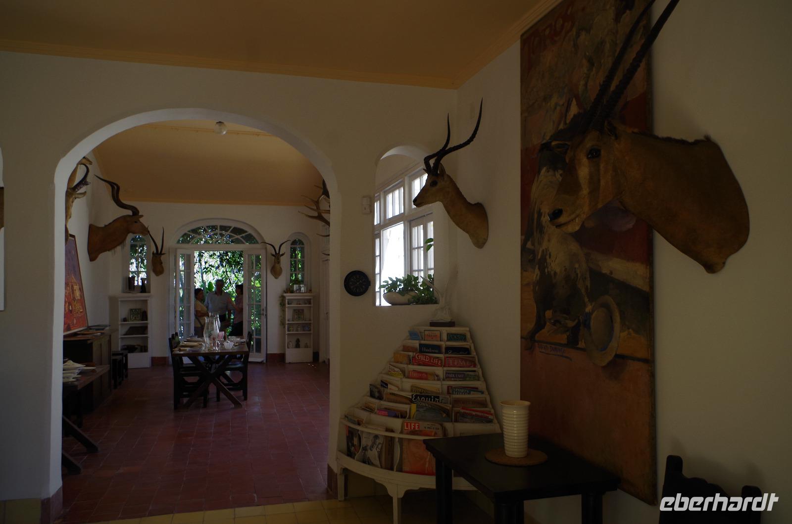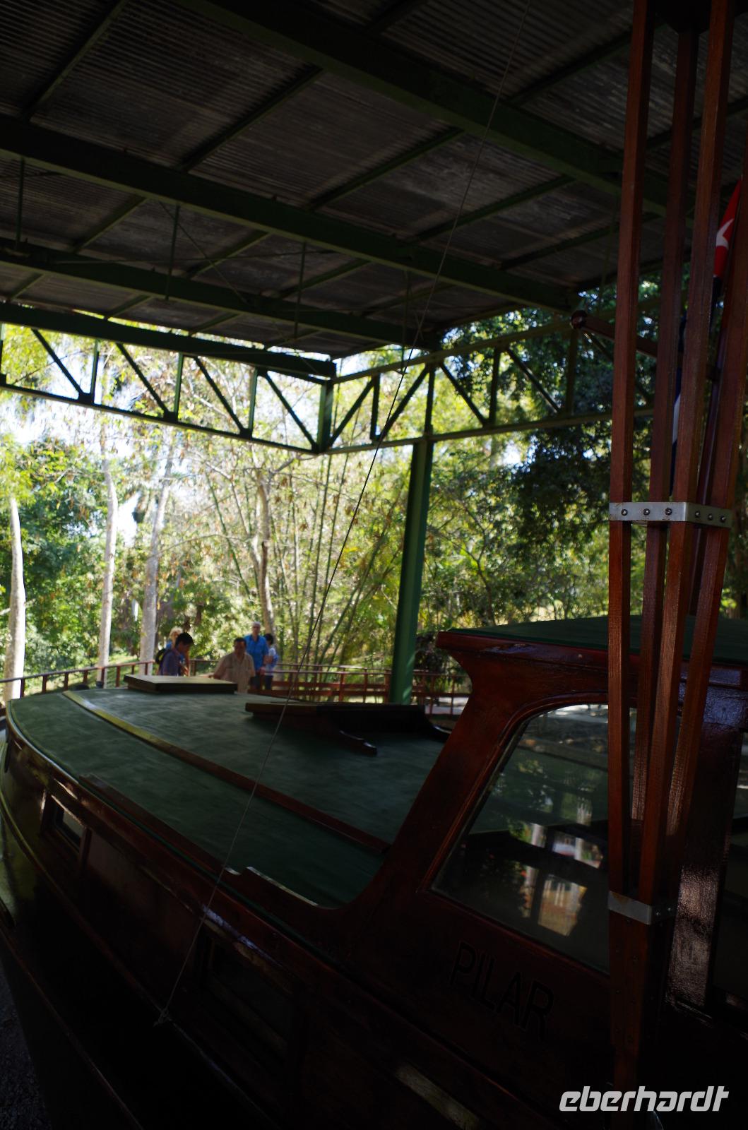 Zuerst fuhren wir am Malecon entlang bis zum Fischerdorf Cojimar. Dieser Ort inspirierte Hemingway zu seinem berühmten Buch. Wir machten hier einen kleinen Stopp und schlenderten durch das Dörfchen, ehe wir wieder in den Bus einstiegen und uns auf den Weg in Richtung Finca La Vigia machten. Hier wohnte der Autor mit seiner Frau und seinen unzähligen Katzen und Hunden. Sie ließ für ihn sogar einen Turm zum Schreiben errichten, aber er bevorzugte das Schreiben lieber barfuß und im Stehen in seinem Haus. Daher überließ er den Katzen den Turm. Nach der Besichtigung des Geländes konnten wir den Männern, wie gestern im Rum Museum schon, beim Pressen des Zuckerrohres zuschauen und anschließend das Getränk verköstigen. Wer wollte, natürlich auch mit Vitamin R.