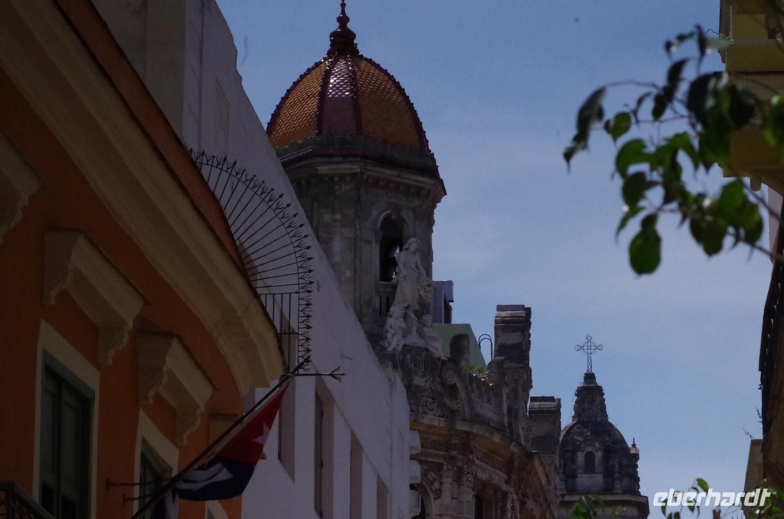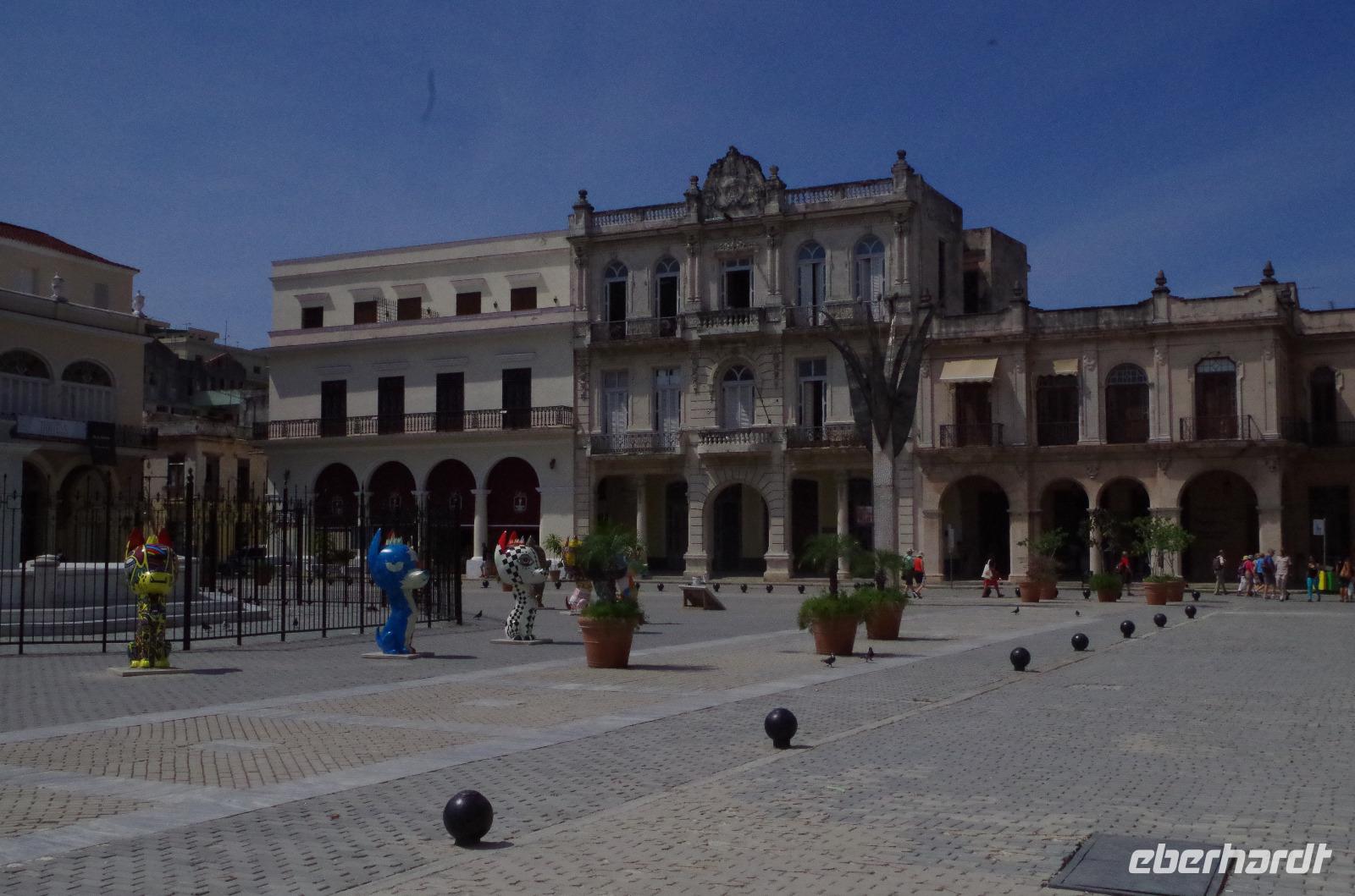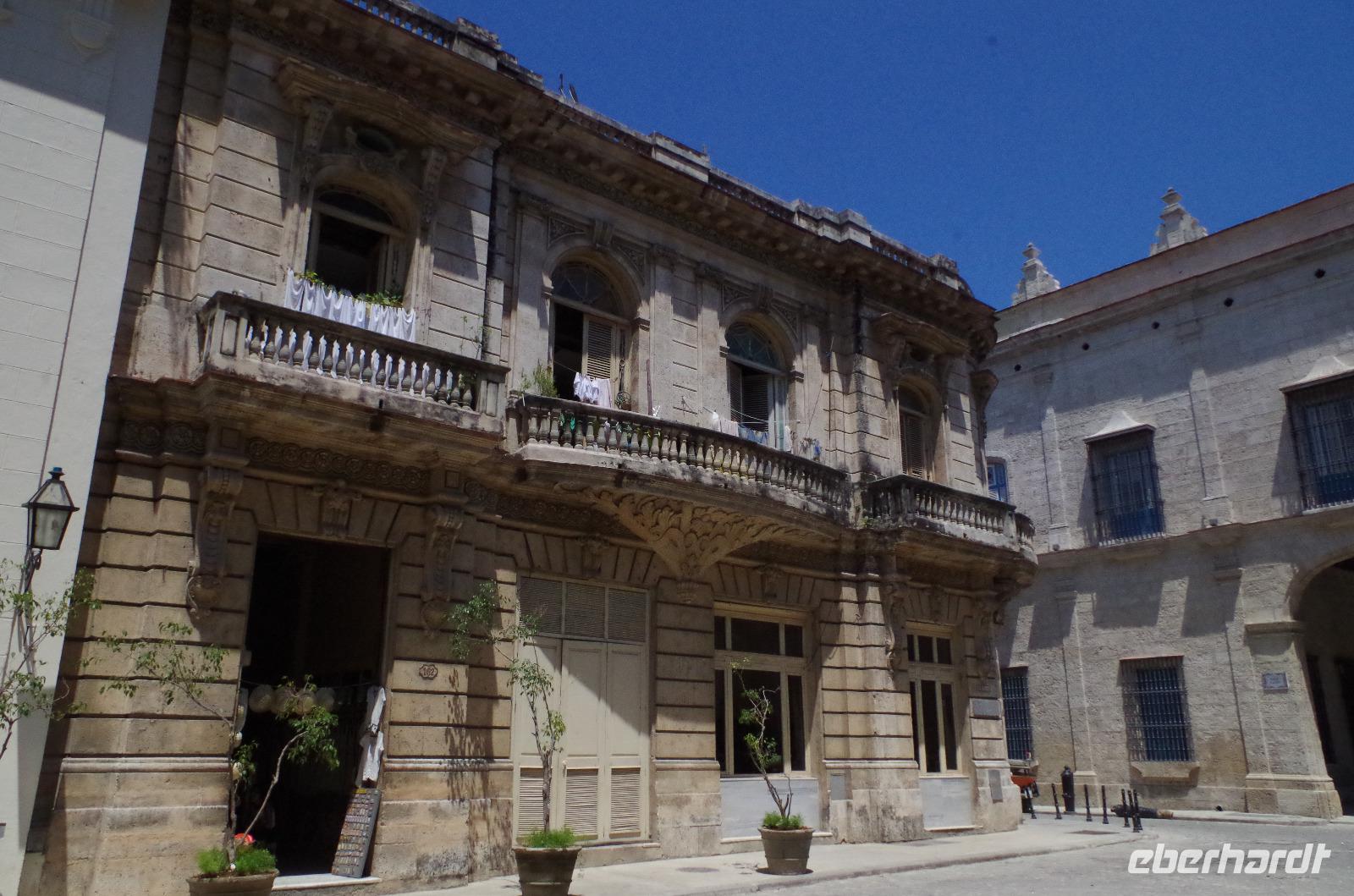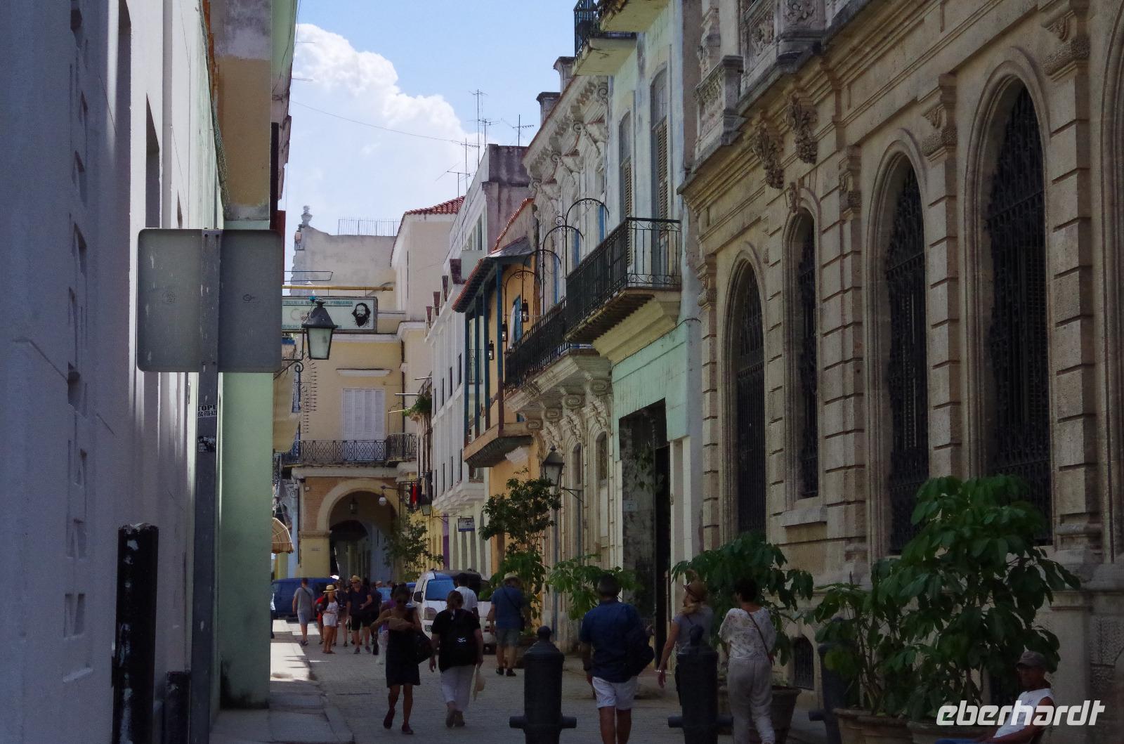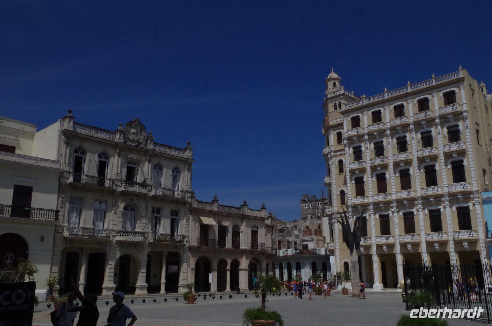 Ich denke, viel besser kann man den ersten Tag auf Kuba nicht beginnen. Anschließend fuhren wir zurück zum Hotel, holten unsere Koffer ab und brachen auf in Richtung Altstadt. Da es nun schon Mittag war, führte uns der erste Weg in ein kleines, feines, privates Restaurant. Von außen sehen diese privaten Restaurants immer sehr unscheinbar aus. So war es auch hier. Es gab nur eine kleine unscheinbare Tür, mit einer dahinter liegenden steilen Treppe, die uns nach oben auf die herrliche Terrasse führte. Wir speisten sozusagen auf den Dächern von Havanna. Nachdem wir alle gestärkt waren, erforschten wir die Stadt zu Fuß. Wir liefen unter anderem an der Plaza de la Catedral, der Plaza de Armas, Calle de los Oficios, unzähligen schönen Gebäuden und historischen Apotheken vorbei. Antonio schlug uns vor, ein Modell zu besichtigen, welches die Hauptstadt von oben zeigt. Nachdem wir das Modell gesehen hatten, besaßen wir einen besseren Überblick über die Stadt.