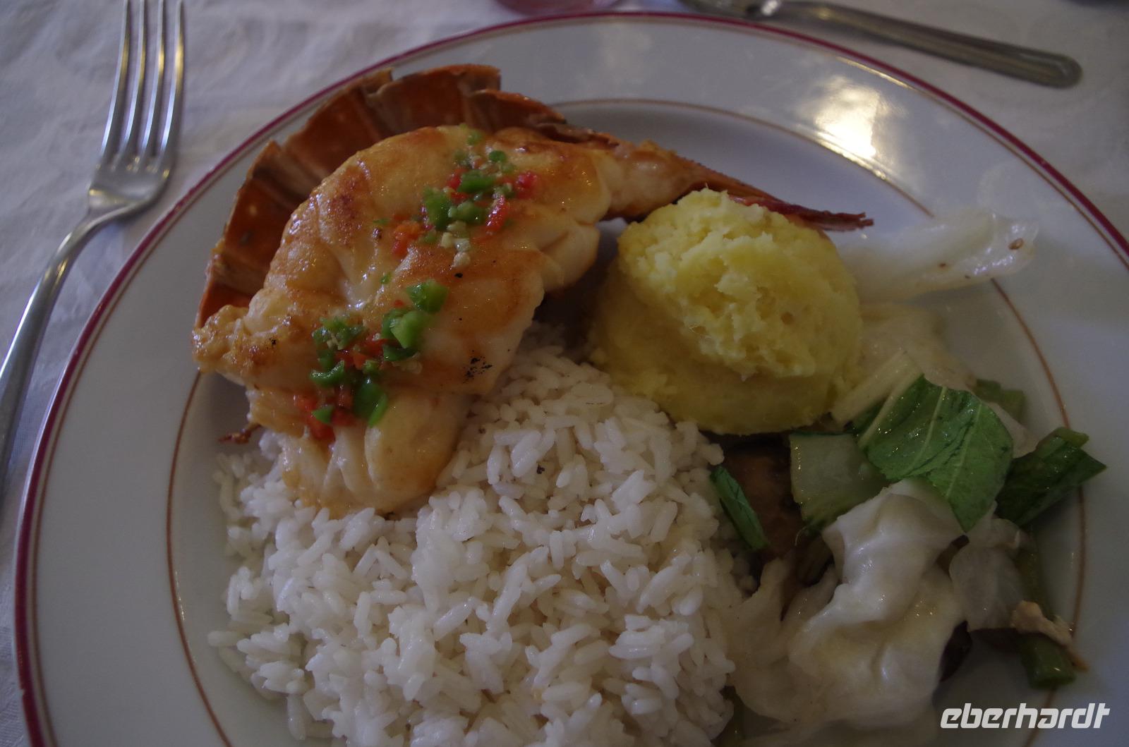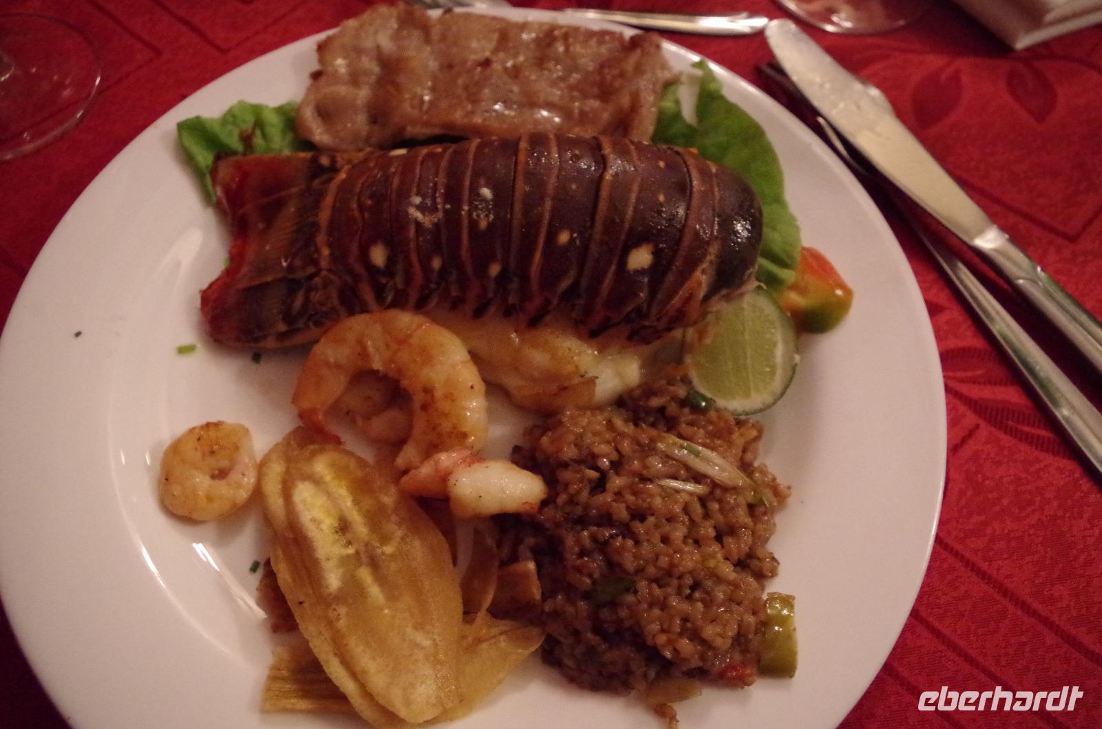 Nach der Besichtigung gingen wir Mittag essen und das Standardgericht hieß heute Hummer, Garnelen, frittierte Kochbanane und Schweinefleisch. Wenn dazu nicht der typische Reis mit den schwarzen Bohnen serviert wurden wäre, würde man dieses Gericht nicht unbedingt zu Kuba einordnen.
