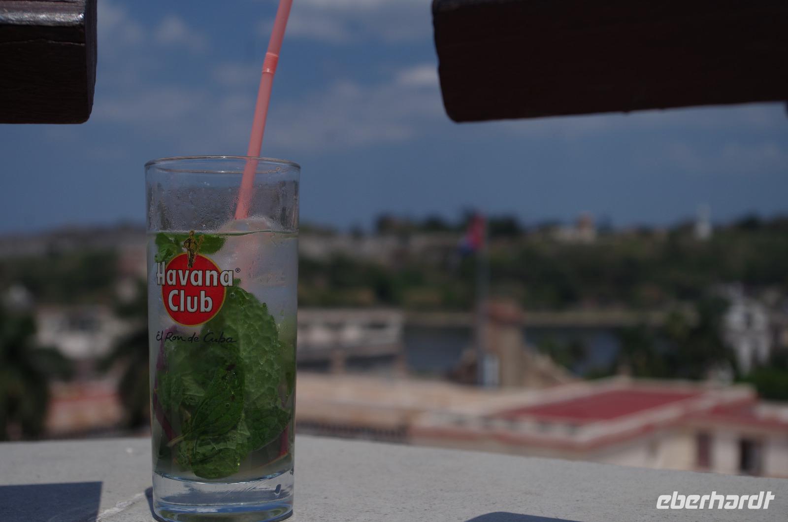 Wir bekamen nun allmählich alle Hunger und so stiegen wir in den Bus, welcher uns direkt in die Altstadt von Havanna brachte. Hier speisten wir zur kubanischen Musik im Restaurant El Mercurio. Nach dem feinen Essen, ging es zurück auf die Straßen und wir besuchten das Hotel Ambos Mundos inklusive des Zimmers 511. Immer wenn Hemingway in der Stadt war, mietete er sich dieses Zimmer. Da ein Tag auf Kuba nicht ohne Vitamin R zu Ende gehen kann, nahmen wir oben auf der Dachterrasse des Hotels Platz und sagten ¡Salud! und ließen uns den heimischen Mojito schmecken.