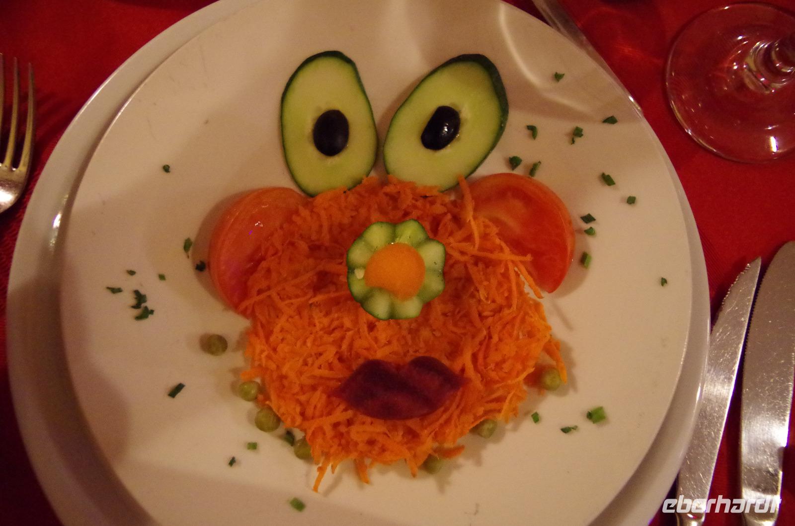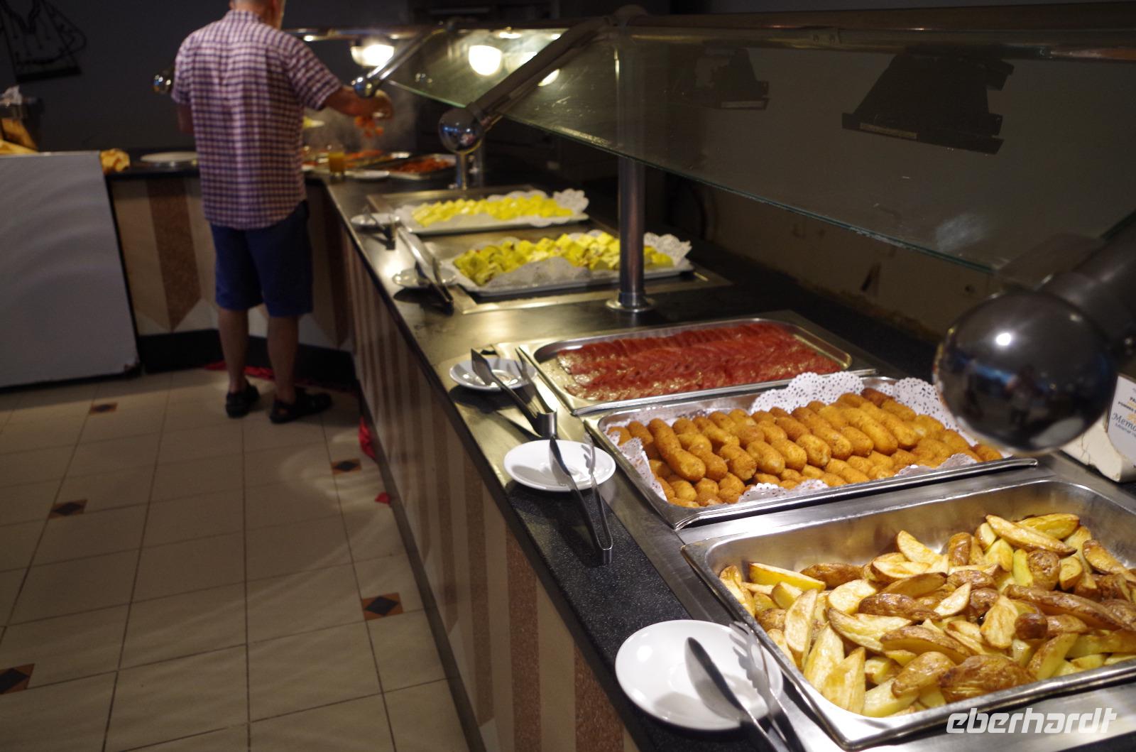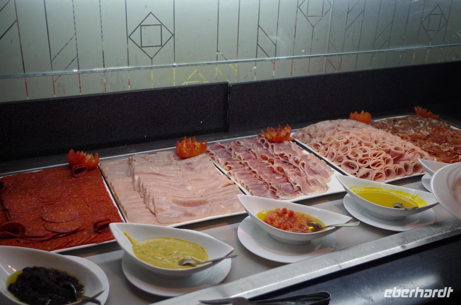 Sobald man etwas später zum Frühstück erscheint, sind die kleinen Löffel, Tassen und Servietten verschwunden. Daher bin ich heute auf die Suche nach den jeweiligen Utensilien gegangen und konnte nirgends etwas bekommen. Das Personal ist, wie überall, sehr freundlich und die Kellnerin gab mir zu verstehen, dass sie mir eine Tasse liefern lässt und die Papierservietten leider aus sind. Anschließend machte sie eine Schublade auf, öffnete einen kleinen Karton und überreichte mir mit einem Strahlen einen neuen, noch eingepackten kleinen Löffel. Nach etwa 15 Minuten sah ich die Kellnerin triumphierend mit einem Stapel Servietten zu ihren Arbeitsplatz schreiten und dort packte sie die Servietten aus und machte aus einer Serviette zwei, um sie dann überglücklich uns überreichen zu können. Das Logo, welches auf der Serviette zu erkennen war, war übrigens das Logo vom Nachbarhotel.