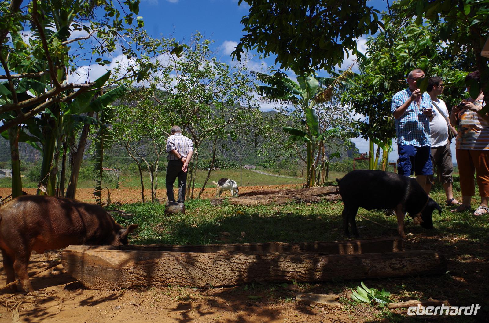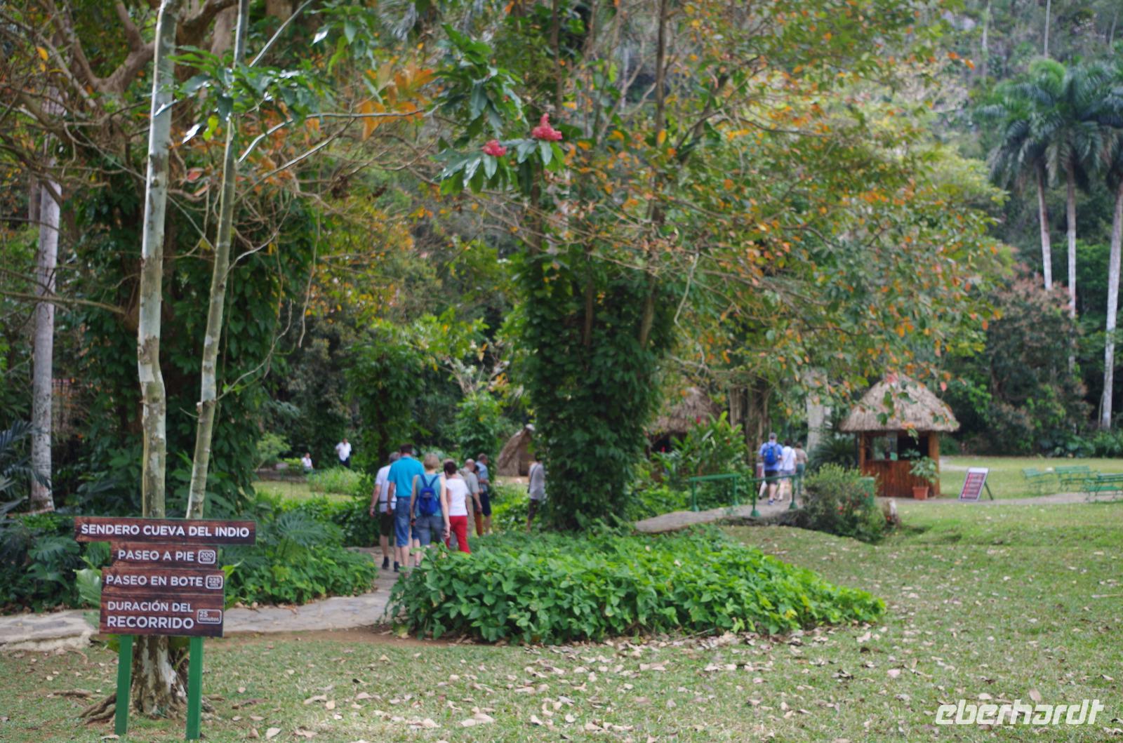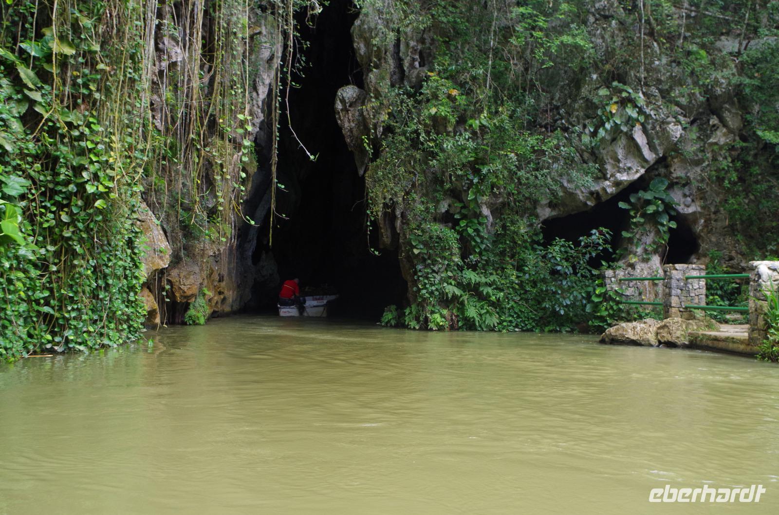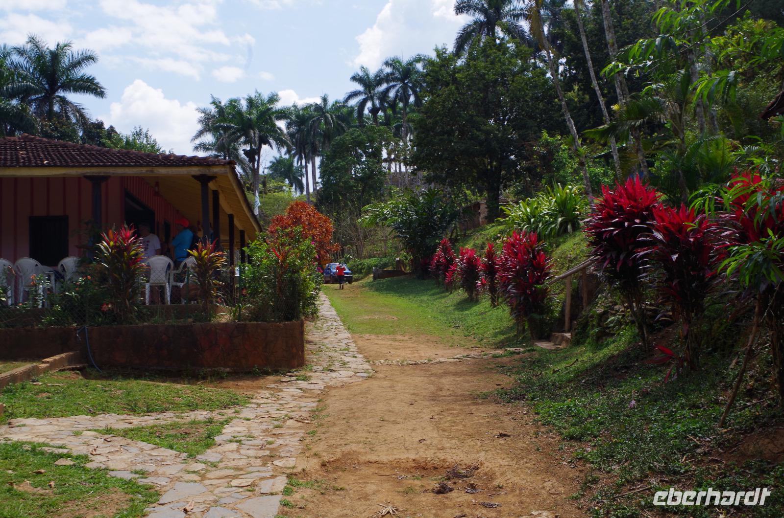 Wir machten uns auf in Richtung Westen, in die landschaftlich sehr schöne Region rund um das Vinales Tal. Da wir einen sehr schlauen Fuchs als Reiseleiter hatten, beschloss er, kurzerhand das Programm ein wenig umzubauen und so fuhren wir als Erstes in die Tropfsteinhöhle „Cueva del Indio". Hier besichtigten wir die alte Höhle und unternahmen eine kleine Bootsfahrt auf dem unterirdischen Fluss. Wer viel Fantasie hatte, konnte den Wänden die unterschiedlichsten Dinge erkennen. Angefangen von einem Fisch, Indianer, Champagner Flasche bis hin zu dem Krokodil, welches mit seinem Freund, dem Schwein, kopfüber in den Fluss sprang. Am Ausgang konnten wir Kaffepflanzen, einen Termitenbau und einen Weihnachtsstern als Pflanze bestaunen, welcher gar nicht so aussieht, wie wir ihn eigentlich kennen.
