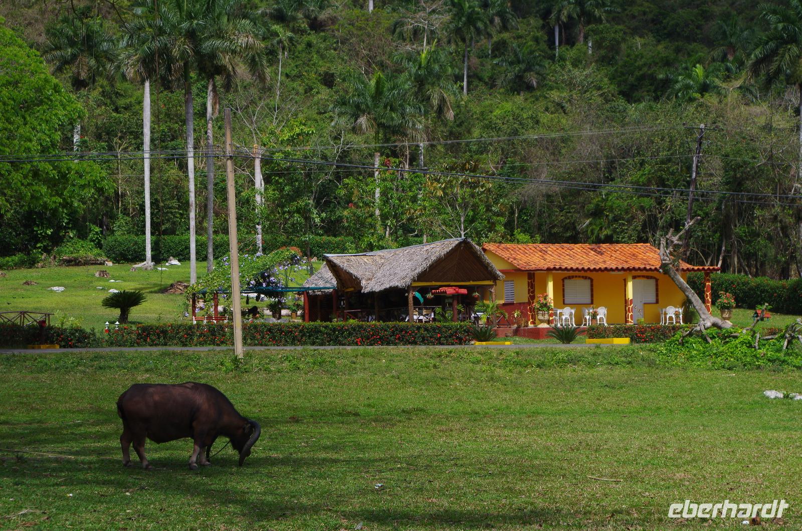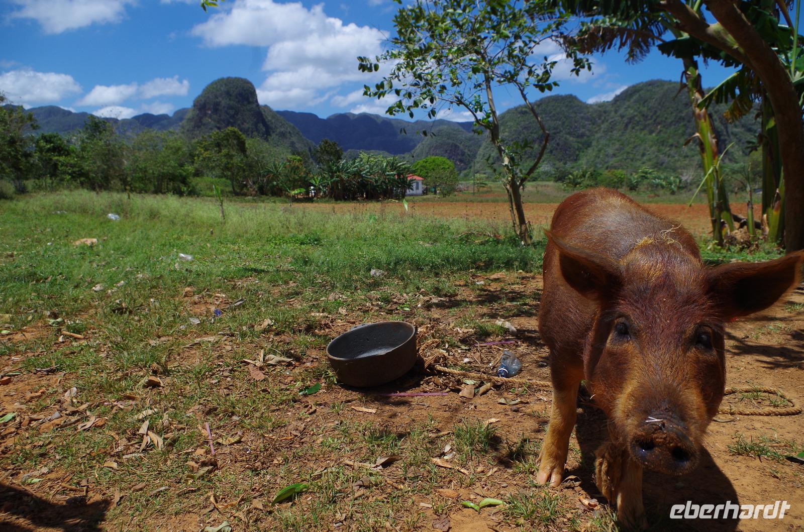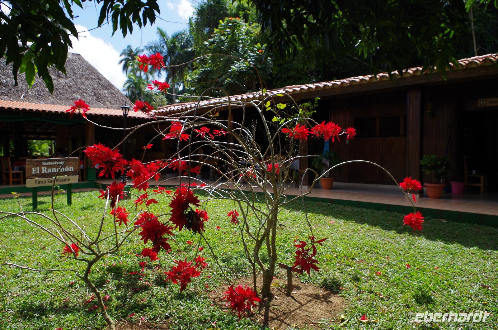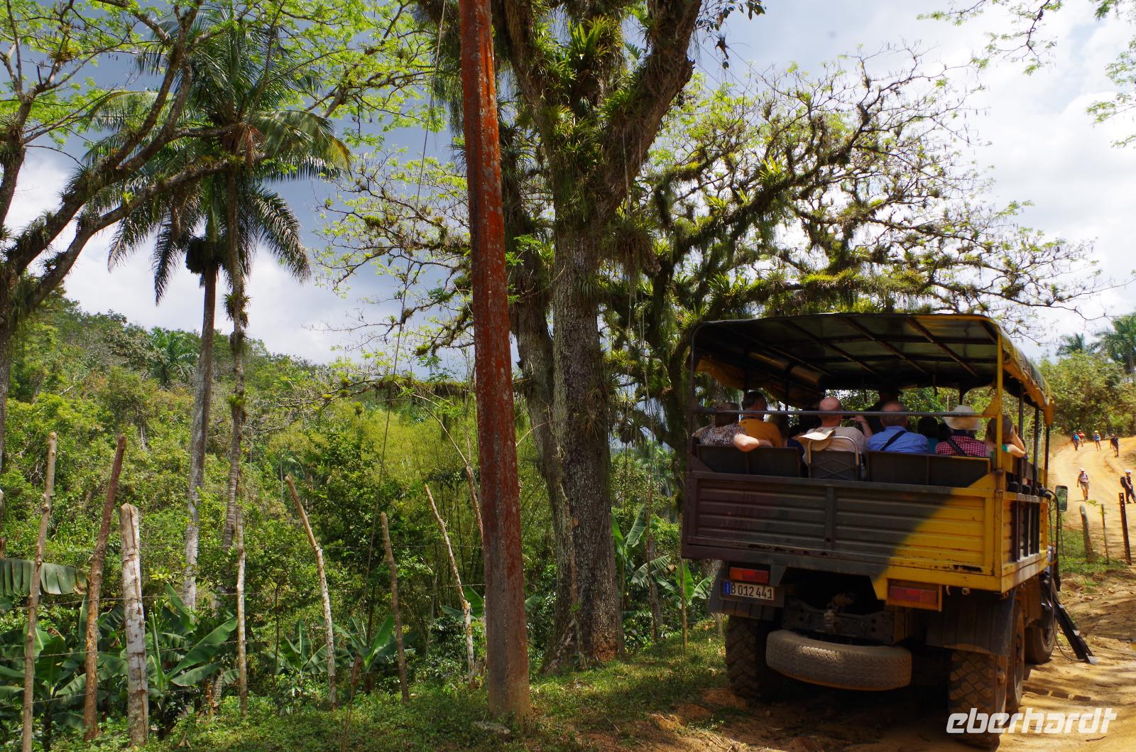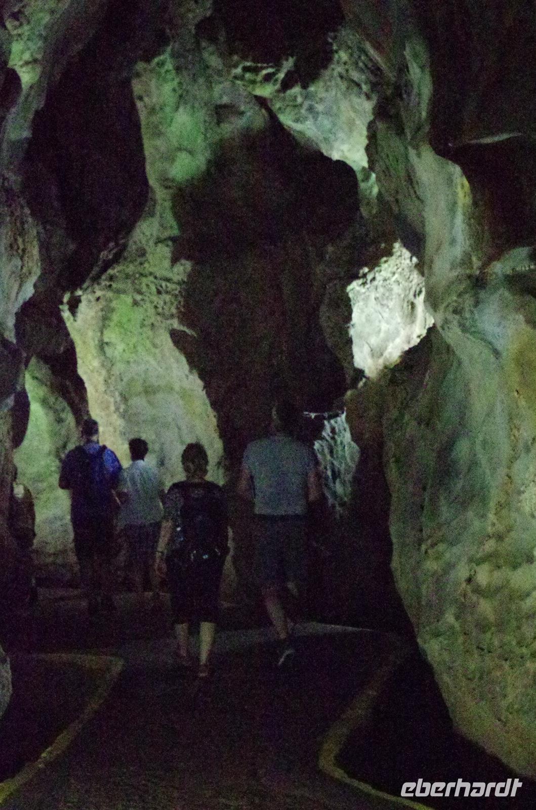 Wir machten uns auf in Richtung Westen, in die landschaftlich sehr schöne Region rund um das Vinales Tal. Da wir einen sehr schlauen Fuchs als Reiseleiter hatten, beschloss er, kurzerhand das Programm ein wenig umzubauen und so fuhren wir als Erstes in die Tropfsteinhöhle „Cueva del Indio". Hier besichtigten wir die alte Höhle und unternahmen eine kleine Bootsfahrt auf dem unterirdischen Fluss. Wer viel Fantasie hatte, konnte den Wänden die unterschiedlichsten Dinge erkennen. Angefangen von einem Fisch, Indianer, Champagner Flasche bis hin zu dem Krokodil, welches mit seinem Freund, dem Schwein, kopfüber in den Fluss sprang. Am Ausgang konnten wir Kaffepflanzen, einen Termitenbau und einen Weihnachtsstern als Pflanze bestaunen, welcher gar nicht so aussieht, wie wir ihn eigentlich kennen.