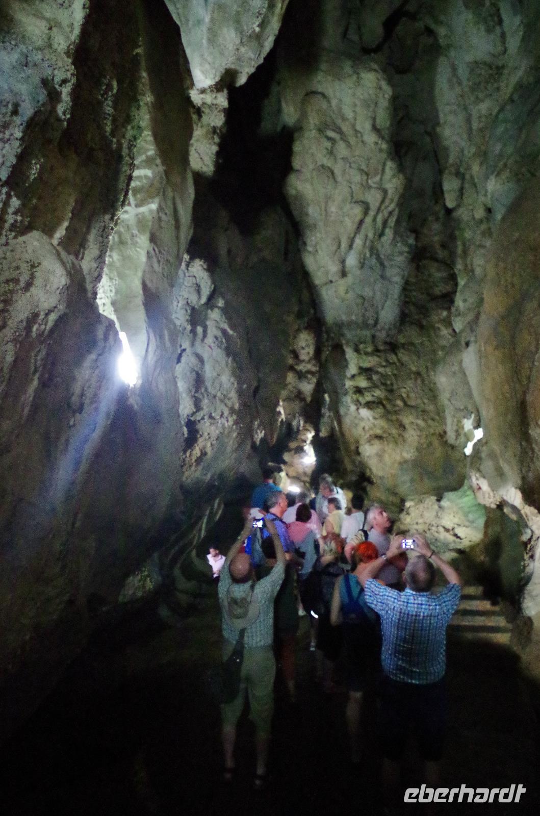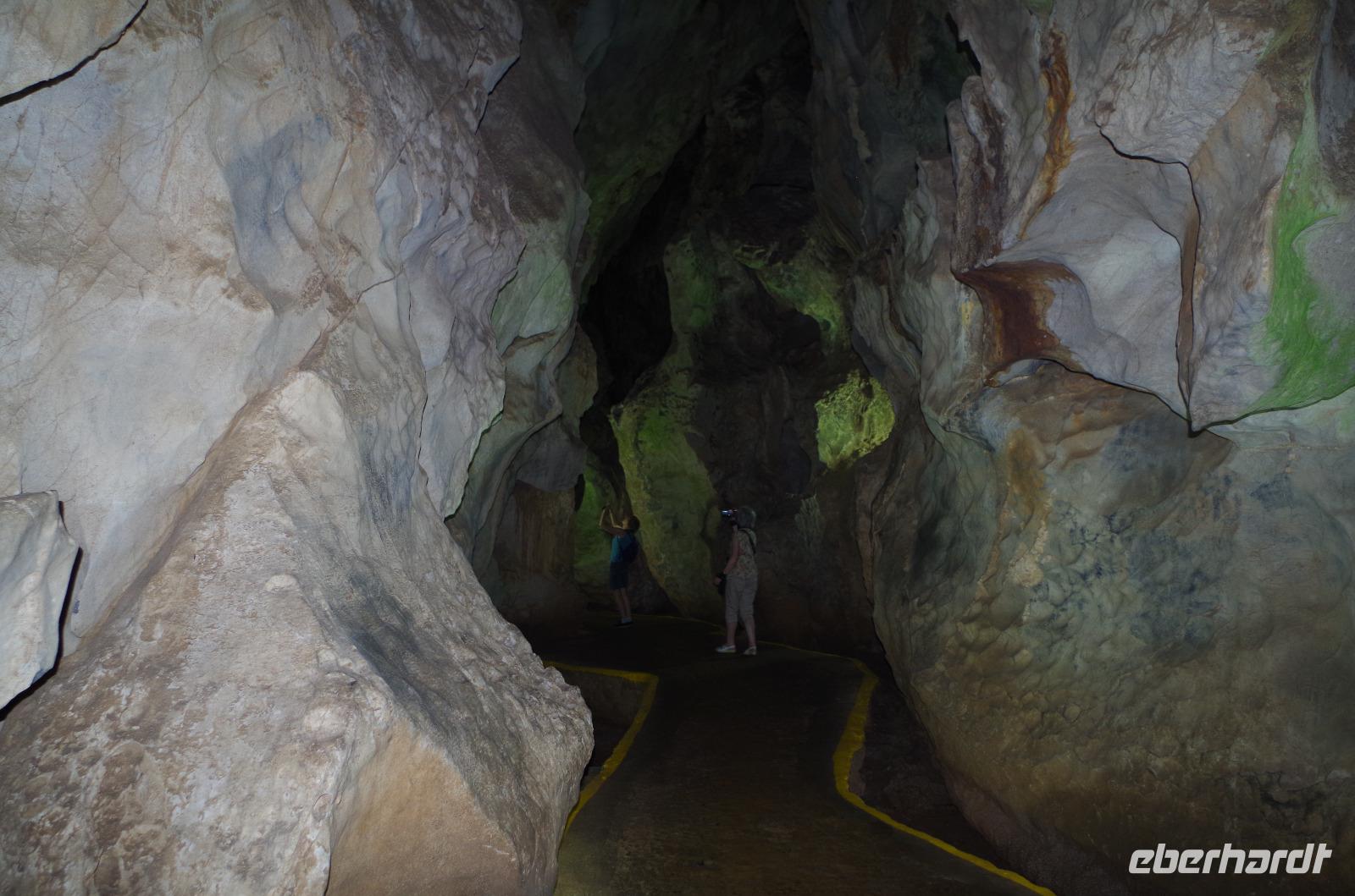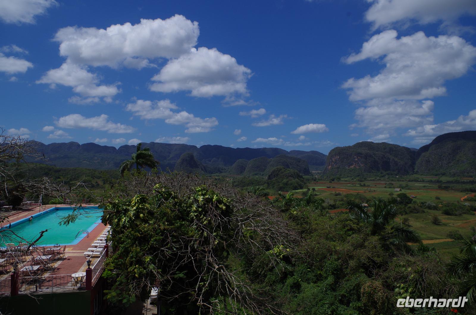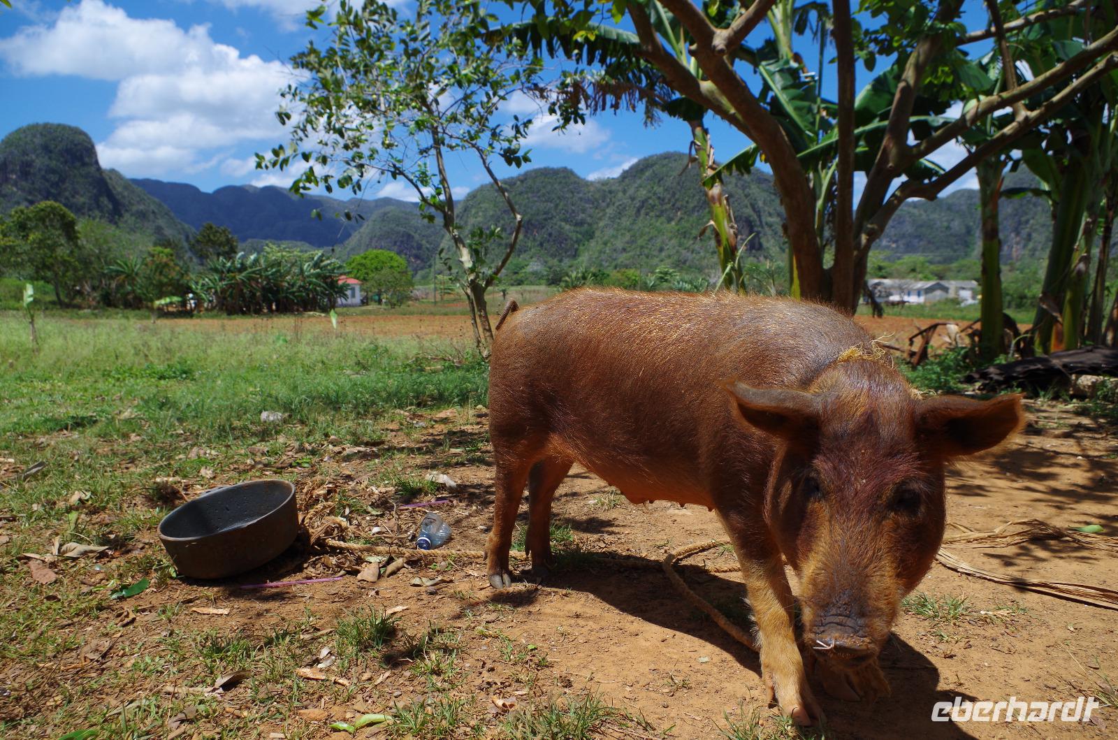 Wir machten uns auf in Richtung Westen, in die landschaftlich sehr schöne Region rund um das Vinales Tal. Da wir einen sehr schlauen Fuchs als Reiseleiter hatten, beschloss er, kurzerhand das Programm ein wenig umzubauen und so fuhren wir als Erstes in die Tropfsteinhöhle „Cueva del Indio". Hier besichtigten wir die alte Höhle und unternahmen eine kleine Bootsfahrt auf dem unterirdischen Fluss. Wer viel Fantasie hatte, konnte den Wänden die unterschiedlichsten Dinge erkennen. Angefangen von einem Fisch, Indianer, Champagner Flasche bis hin zu dem Krokodil, welches mit seinem Freund, dem Schwein, kopfüber in den Fluss sprang. Am Ausgang konnten wir Kaffepflanzen, einen Termitenbau und einen Weihnachtsstern als Pflanze bestaunen, welcher gar nicht so aussieht, wie wir ihn eigentlich kennen.