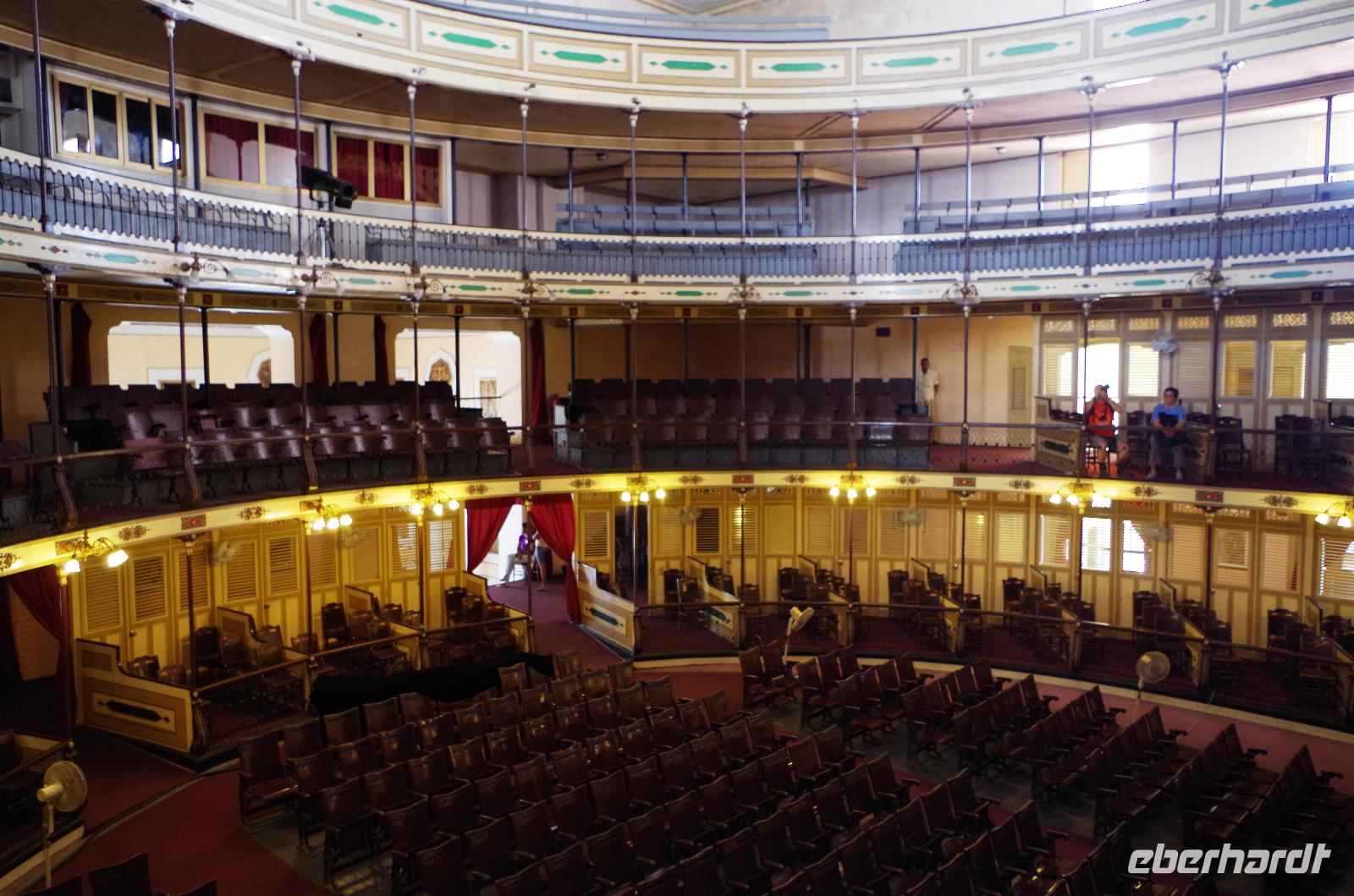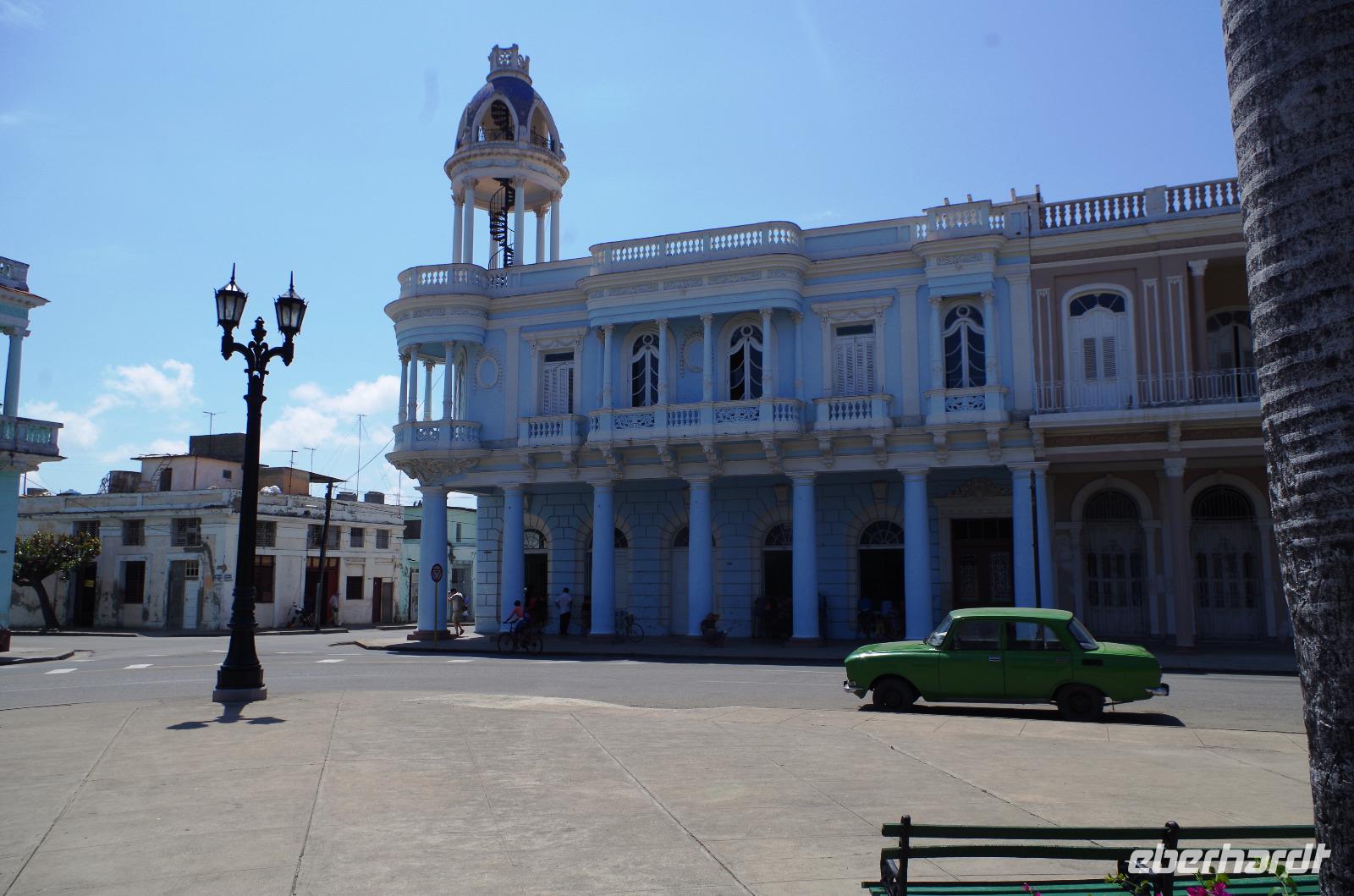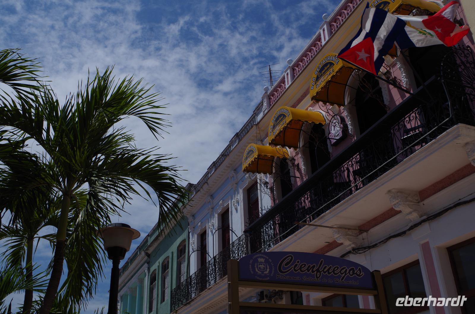 Bevor wir uns jedoch aufmachten, um die Stadt Cienfuegos per pedes zu erkunden, wurden wir von Antonio zu Tisch gebeten und hatten die Auswahl zwischen 5 verschiedenen Gerichten und zwei Zubereitungsarten. Da konnte man schon beim Bestellen durcheinander kommen. Das Essen war, wie bisher immer, köstlich und der Service wie in einem 5 Sterne Restaurant. Nachdem wir alle gestärkt waren, liefen wir in die Stadt bis zum Park Marti und besichtigten hier das Theater Tomas Terry. Das Theater entzückte mich und ich hätte mir in dem schönen Ambiente gern eine Vorstellung angeschaut, doch leider war es organisatorisch nicht möglich. Da hier fotografieren nur gegen ein gewisses Entgelt erlaubt war, wurden wir die ganze Zeit beschattet. Anschließend hatte jeder ein wenig Freizeit und konnte auf eigene Faust die Stadt erkunden. Ich schaute mir eine kleine Schulaufführung an, wo kleine und große Schüler eine Vorstellung zeigten. Man muss hier schon neidlos anerkennen, die haben einfach Musik im Blut. Musik ist hier auch sehr verwachsen. Auch wenn heute die meisten Bands für Touristen spielen, ist es immer nett anzusehen.