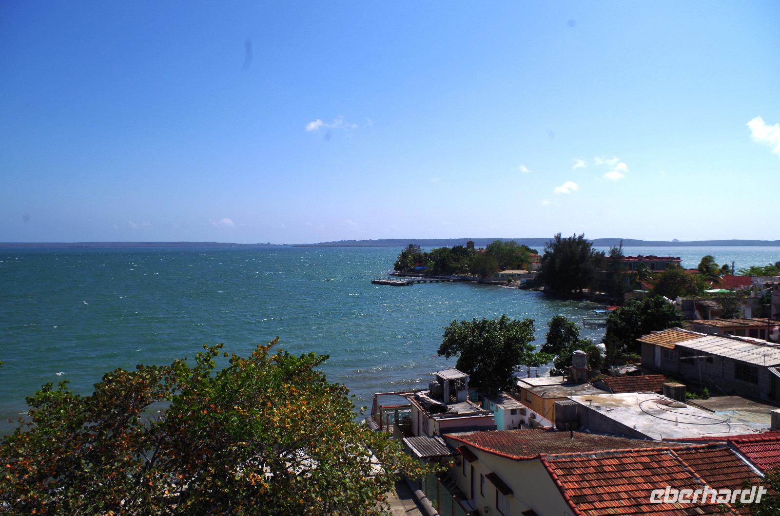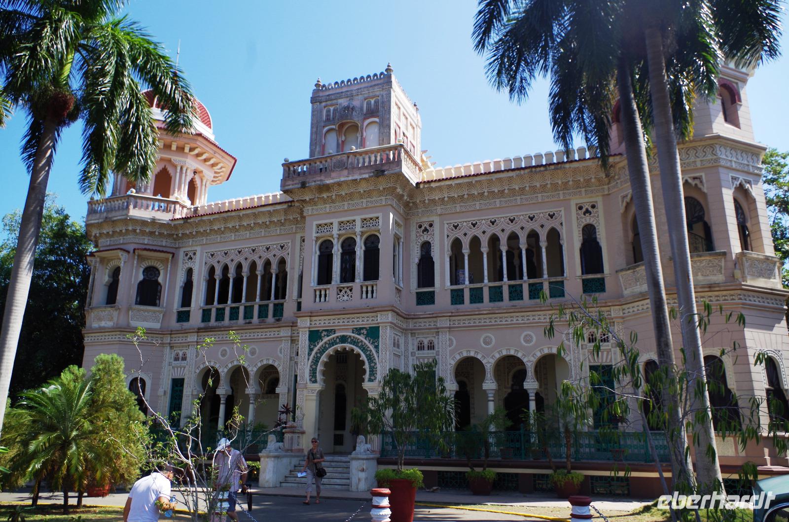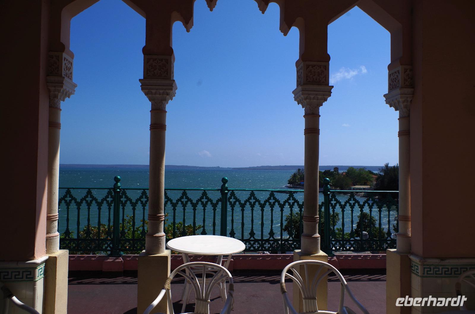 Nachdem wir die Stadt ein wenig besser kennengelernt hatten, fuhren wir zur Halbinsel Punta Gorda, welches den Palacio de Valle für uns bereit hielt. Dieser schöne maurische Baustil kostete früher schon ein Vermögen und ist heute das Vielfache wert. Nachdem fast jeder den Ausblick von der Dachterrasse genossen hatte, ging es weiter in Richtung Hotel. Hier lernten wir beim einchecken die kubanische Gelassenheit und ein neues Getränk kennen. Der Hauptbestandteil war Mate Tee und dann waren wir uns nicht ganz einig, ob es mit oder ohne Vitamin R war... waren es eventuell schon die ersten Anzeichen, dass wir zu viel dieser einheimischen Vitamine zu uns nahmen?