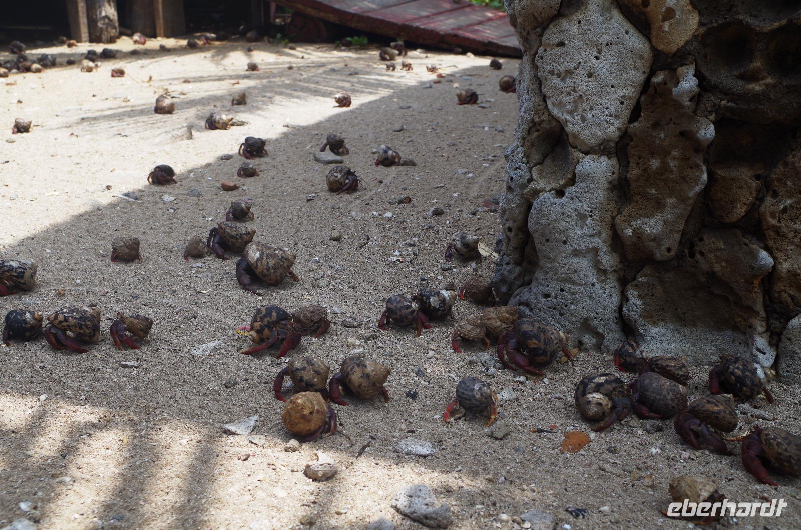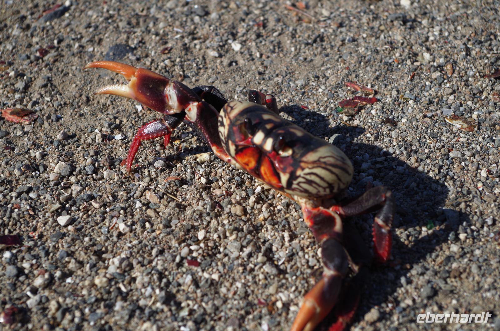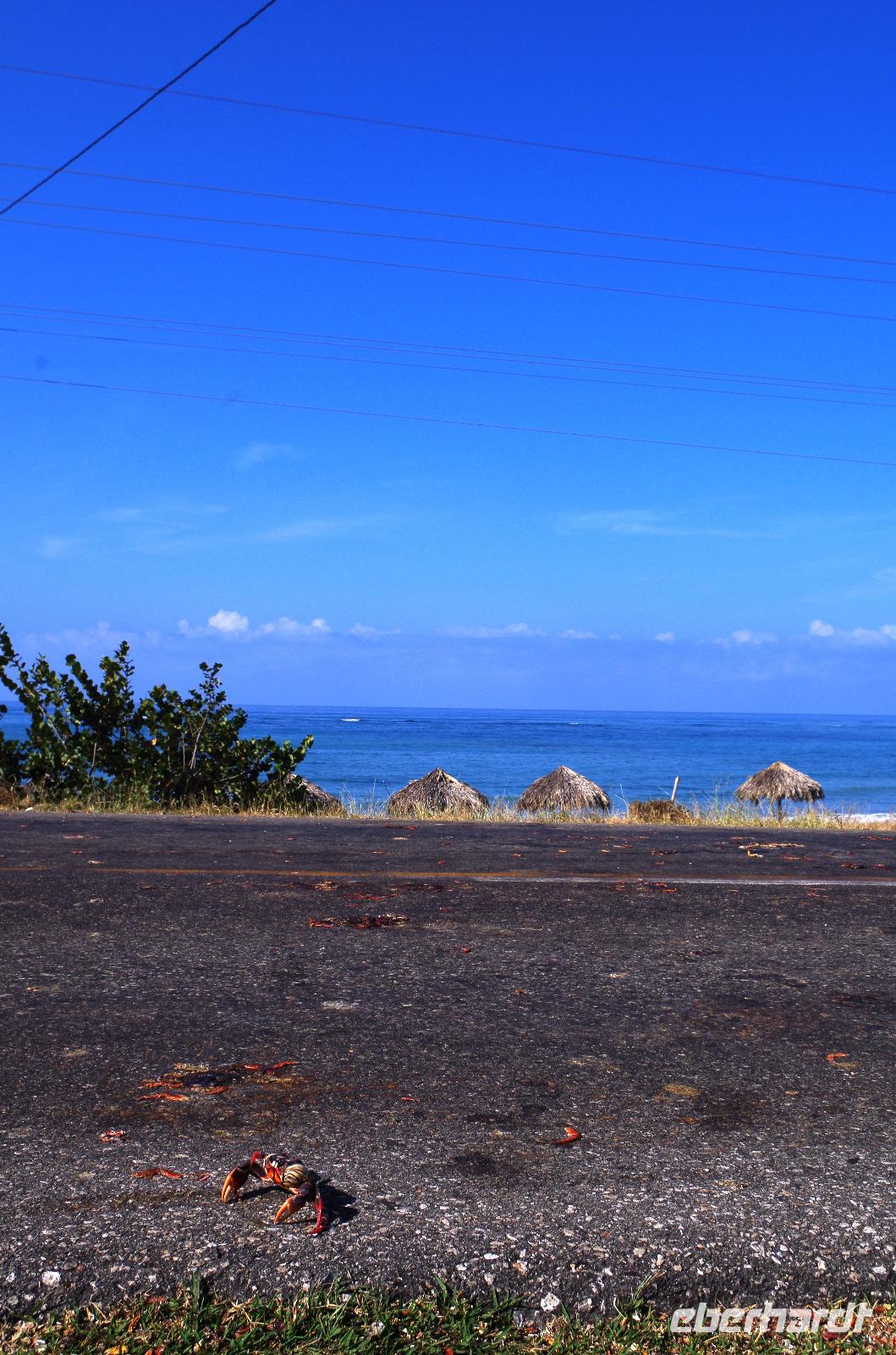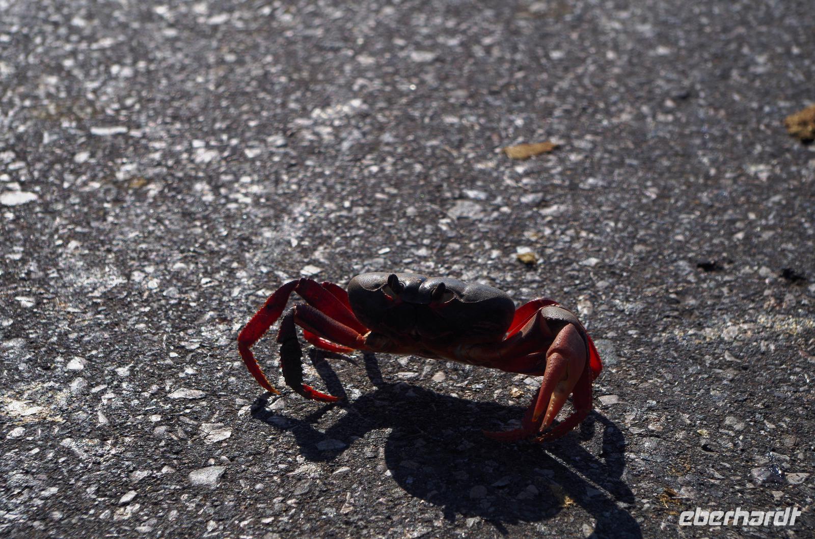 Das Naturereignis, waren Krebse, welche sich unbeirrt auf dem Weg zum Meer hin oder vom Meer weg bewegten, um ihre Eier darin abzulegen. Leider mussten sie auf ihrem Weg auch die einzige Straße der Region überqueren und auf dem Asphalt sah man die, die nicht sehr viel Glück dabei hatten.