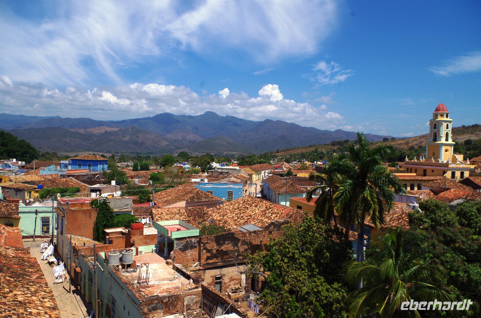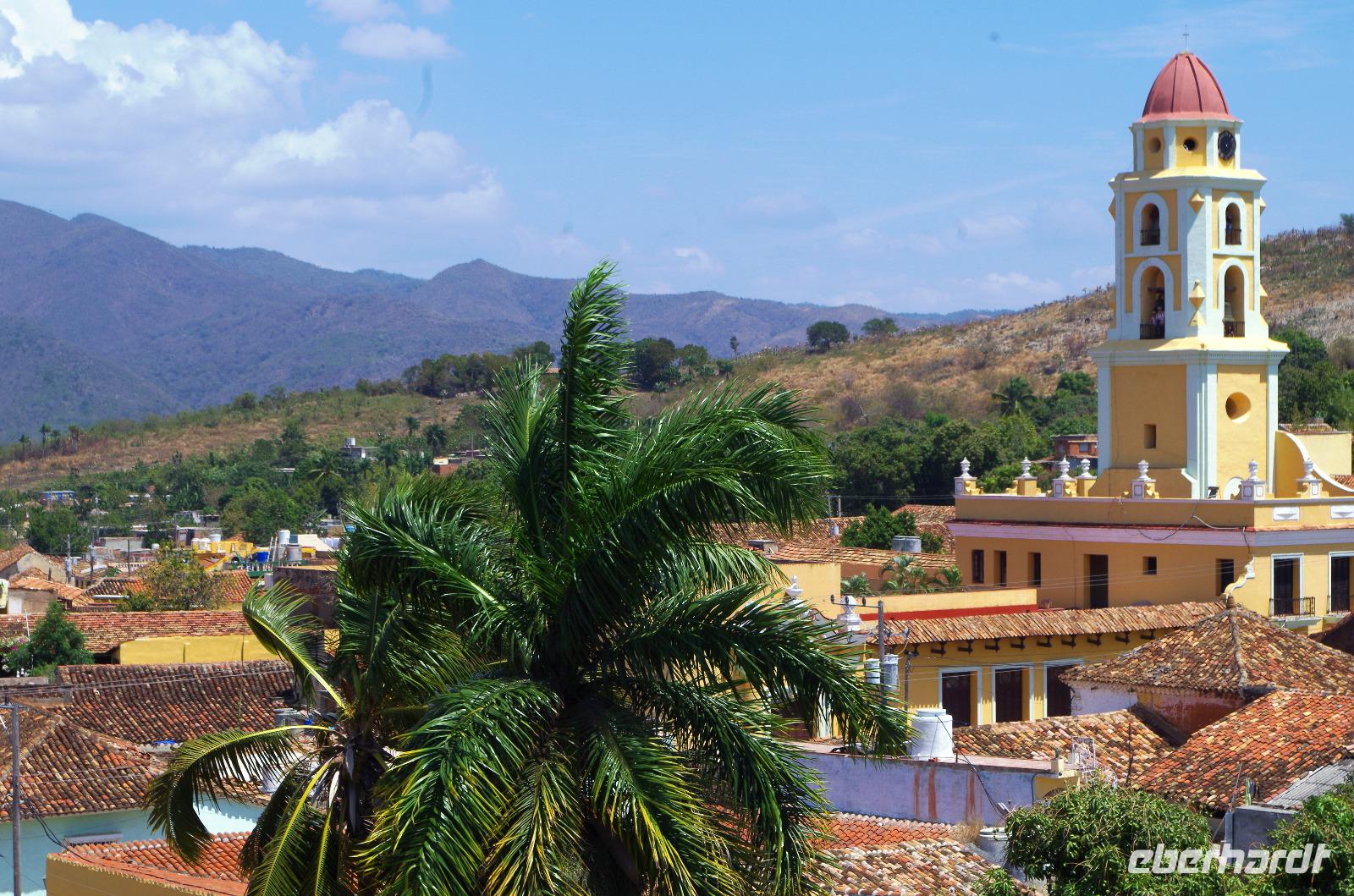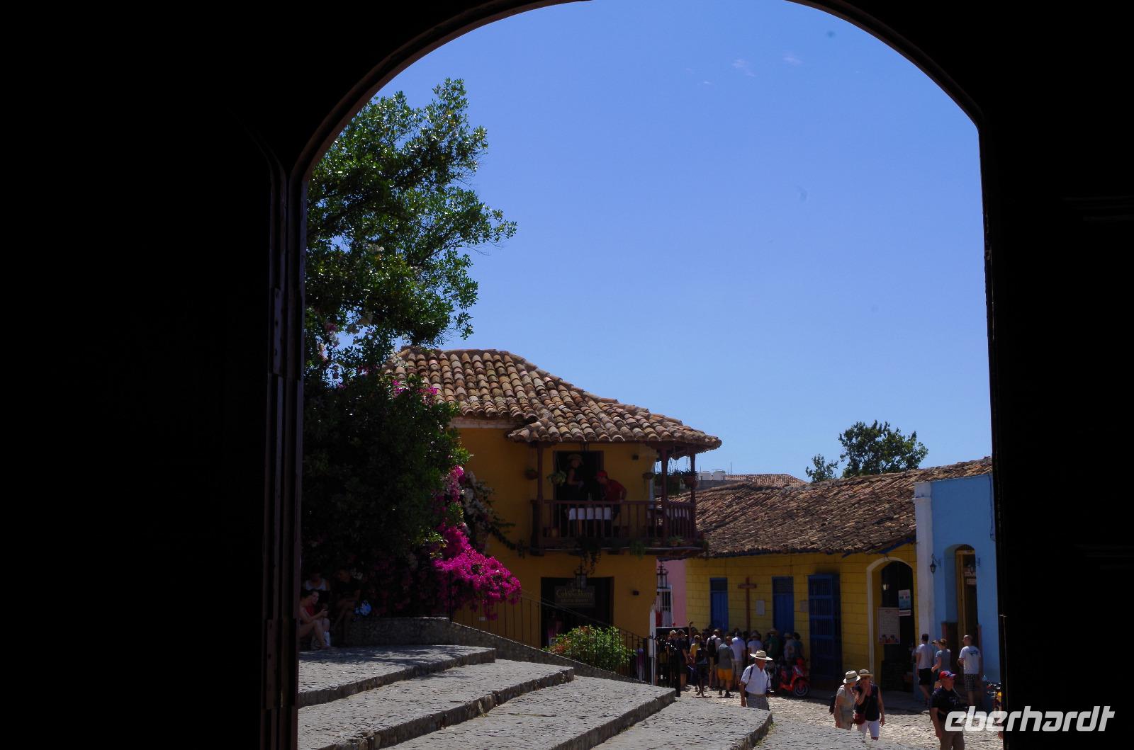 Anschließend besuchten wir die Kirche Iglesia Parroquial Mayor de la Santisima und liefen zum Palacio de Cantero. Dieses Gebäude hatte einst einem wohlhabenden Zuckerbaron gehört. Er konnte aber nicht mehr am Hauptplatz bauen und baute sich daher zu seinem schon mächtigen Gebäude einen Turm, um zu symbolisieren, wie mächtig er war. Ich sage mal ein Glück, denn nun konnten wir diesen Turm nutzen und bekamen nach etwas Mühe beim Aufstieg einen herrlichen Blick auf die Stadt und deren Umgebung.