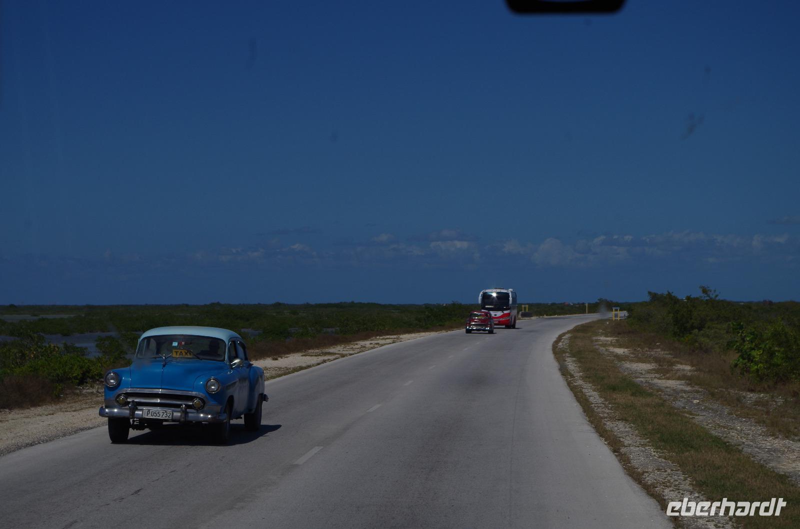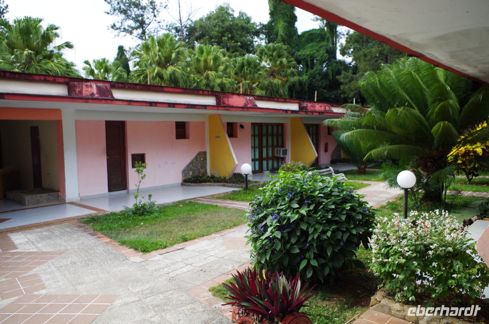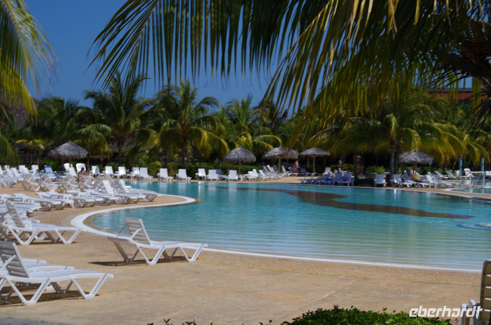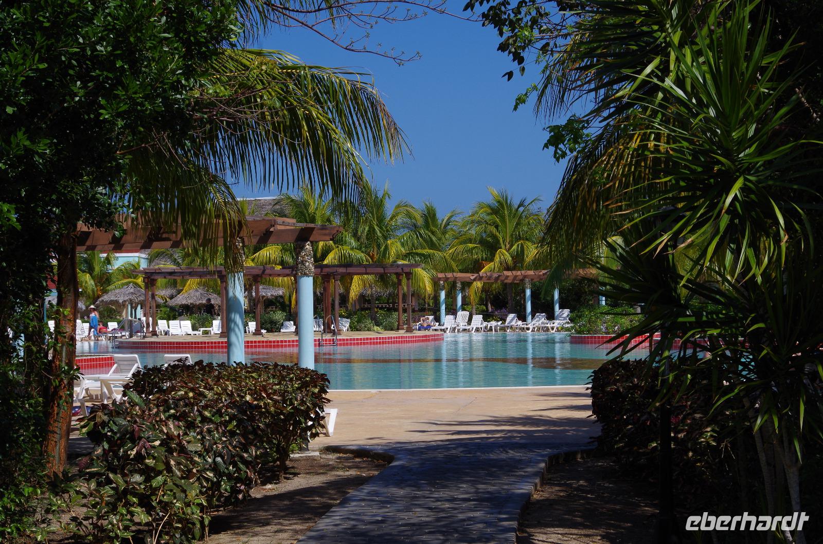 In einer Hotelanlage in der Nähe der Stadt machten wir unsere Mittagspause. Nach dem leckeren Mittag begaben wir uns auf dem Weg zu unserer Hotelanlage zur Insel Cayo Santa Maria. Da wir heute Früh etwas Zeit gewonnen hatten, besuchten wir noch die kleine Stadt Remedios und Antonio zeigte uns unter anderem schicke Innenhöfe von neu restaurierten Hotels. Unser Hotel war nur durch eine 50 Kilometer lange, direkt ins Meer gebaute Straße zu erreichen. Hier hieß es nun leider Abschied nehmen. Antonio und Manuel verließen uns und wir bezogen unsere Zimmer für die nächsten drei Tage. Die Anlage war riesig, aber dennoch sehr schön, da sie aus mehreren Häusern bestand und die Anlagen sehr gepflegt waren. Zu dem Meer direkt vor unserer Haustüre ist nicht viel zu sagen, außer unglaublich. Die Farben des Wassers mit der Mischung des weißen Strandes... spätestens jetzt sah man, dass man in der Karibik war.