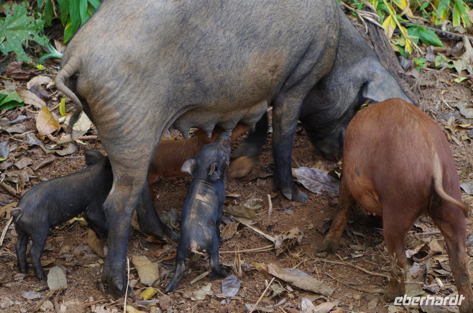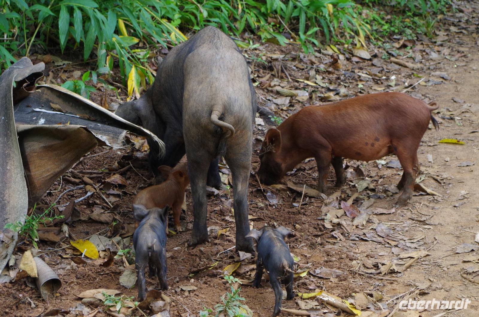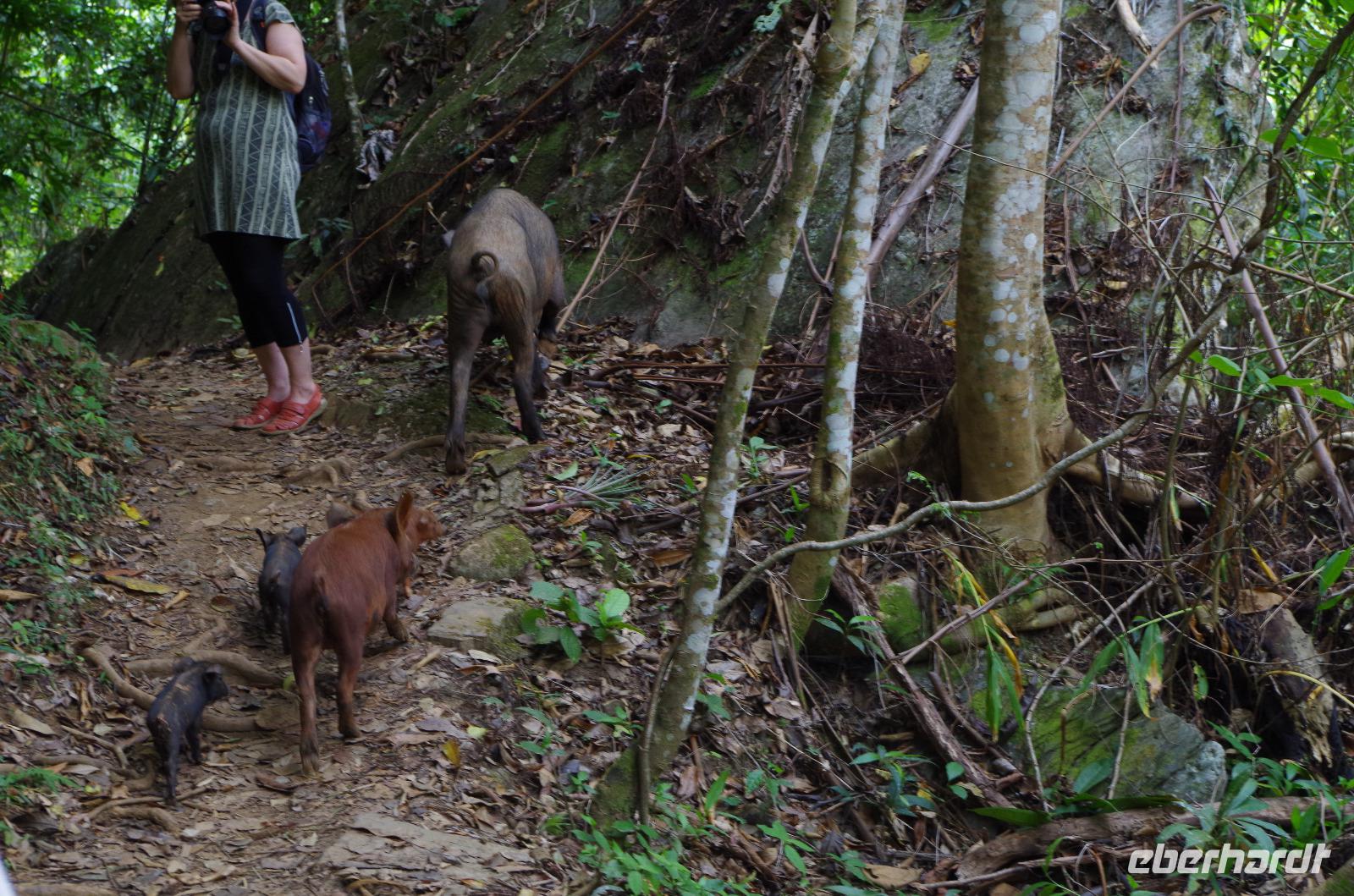 Nach dieser tollen Erfrischung sahen wir auf unserer Wanderung den Kubatrogon, den Nationalvogel von Kuba und ganz kleine süße Ferkel mit ihren Eltern. Am Ende des Weges hatten wir natürlich etwas abgebaut und waren deshalb sehr erfreut, dass unser Vitamin R Vorrat wieder aufgefüllt wurde. Diesmal wurde der Rum zusammen mit einer Sternfrucht serviert, welche an den Bäumen rund um das Restaurant hingen. Zum essen gab es Salat, Brot, Reis und sehr leckeres über dem Holzofen gegrilltes Huhn.