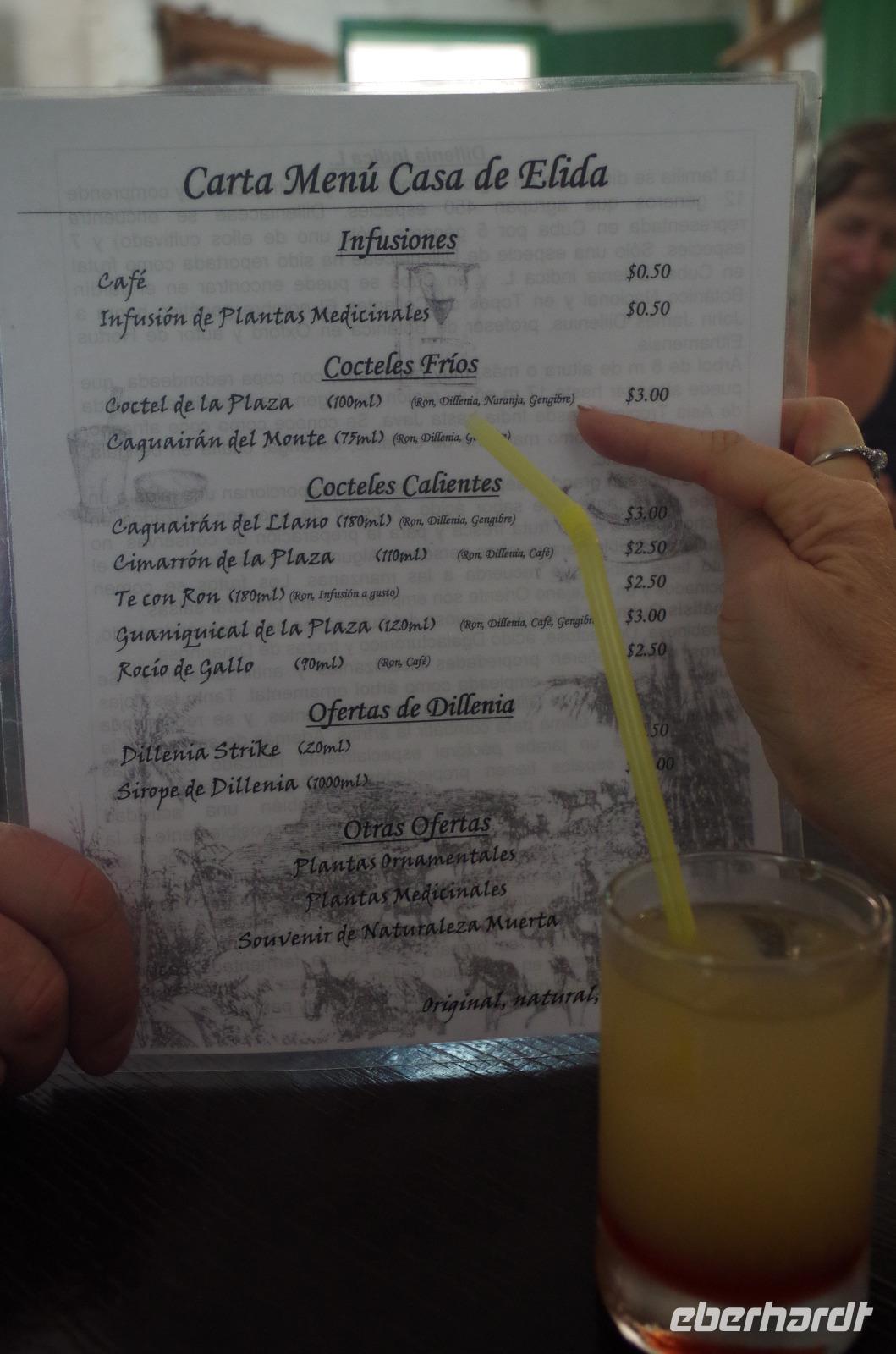 Nach dem Abendessen versammelten wir uns alle und planten die nächsten Tage. Die Kellnerin unterdessen schrieb uns die komplette Getränke Karte auf, sodass wie nun mehr trinken konnten als Cuba Libre und Mojito.