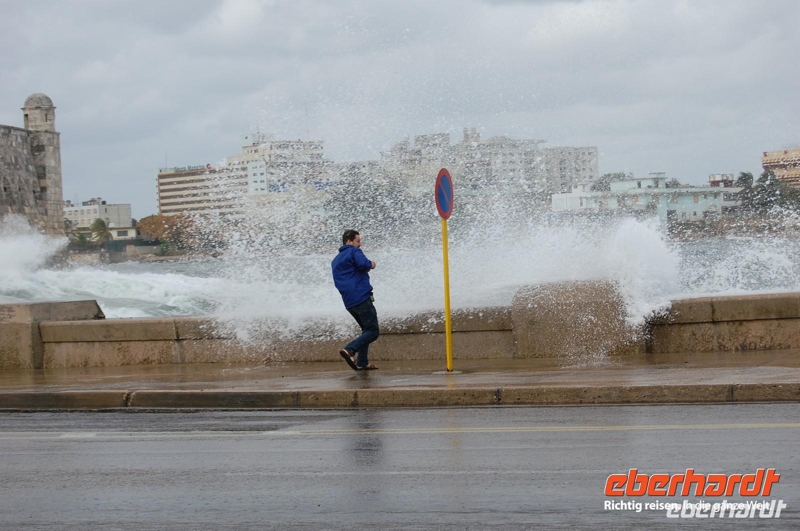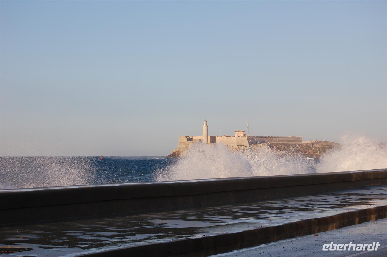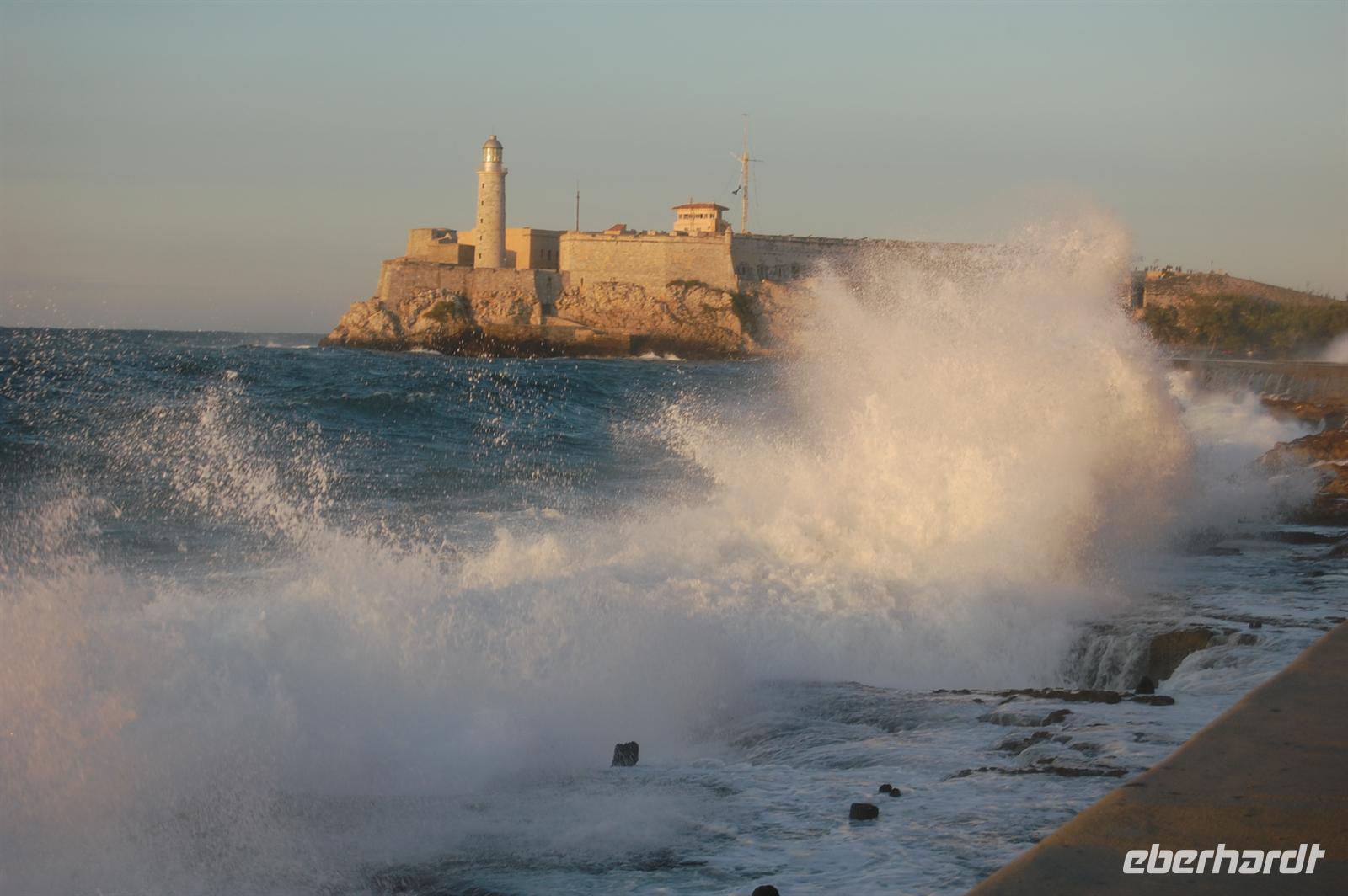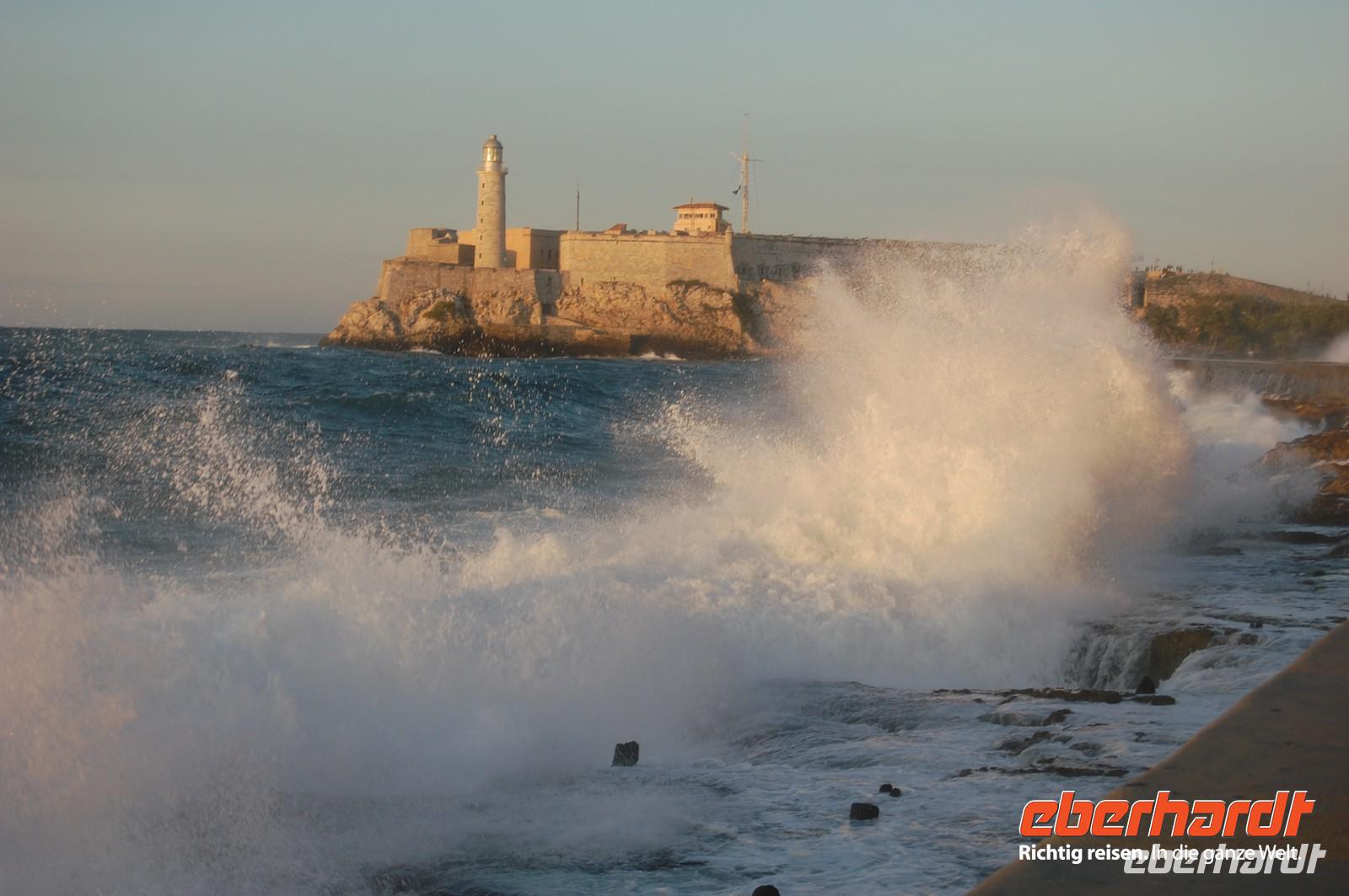 Mit dem klimatisierten Reisebus starten wir zu unserer Stadtrundfahrt. Mit Miguels Erläuterungen fahren wir durch die Straßen zu Havannas größten Friedhof, wo wir mit einer Führung Näheres über den Reichtum vergangener Zeiten erfahren. Über den legendären Malecón können wir leider nicht fahren, denn die stürmische See bringt meterhohe Wellen an die Küste, die sich in haushoher Gischt an der Ufermauer brechen. Dennoch machen wir einen imposanten Fotostopp. Auch am legendären Platz der Revolution halten wir an und finden viele Fotomotive.